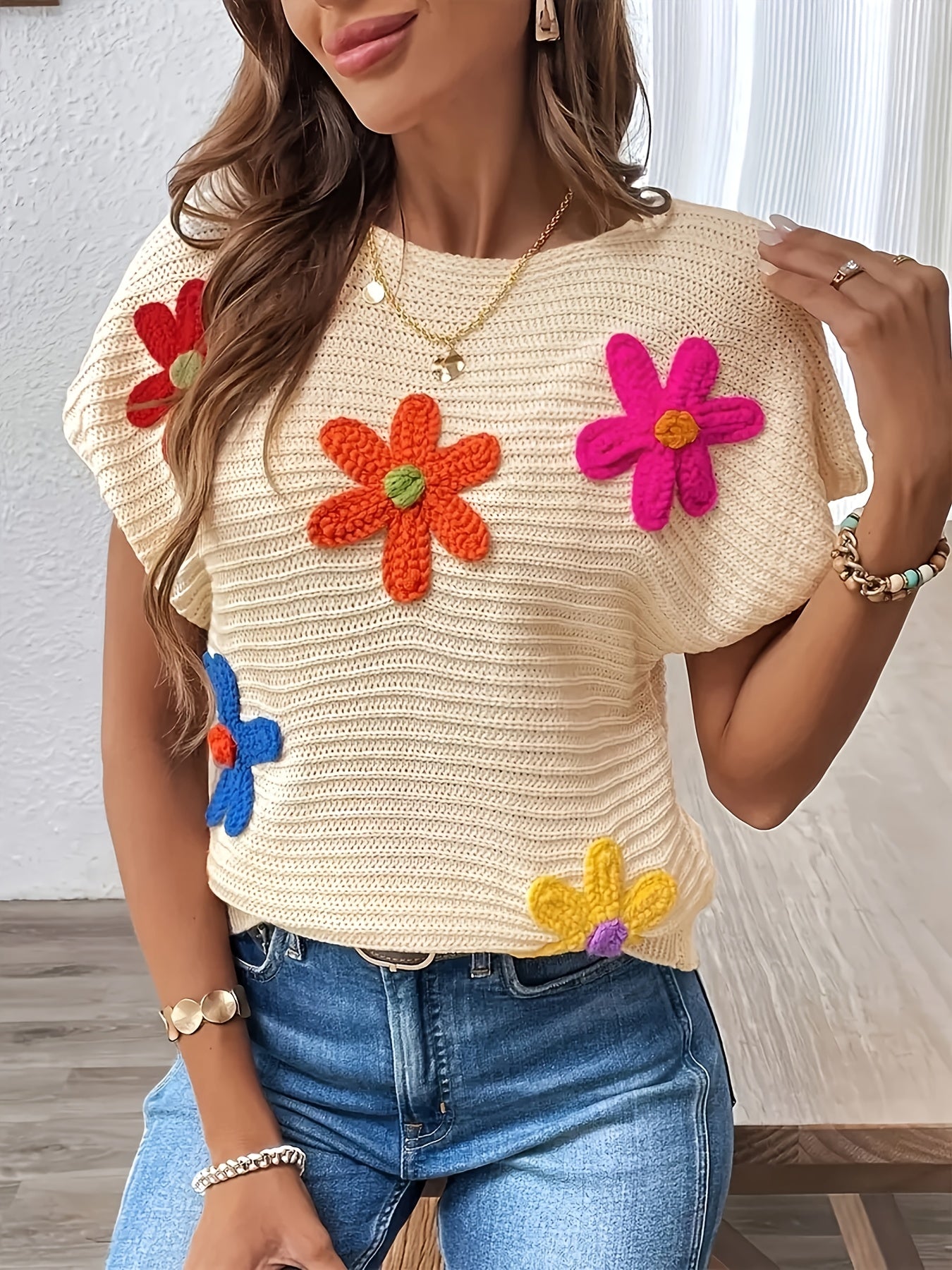 Блузка женская большого размера с цветочным кружевом и коротким рукавом, универсальная для всех сезонов