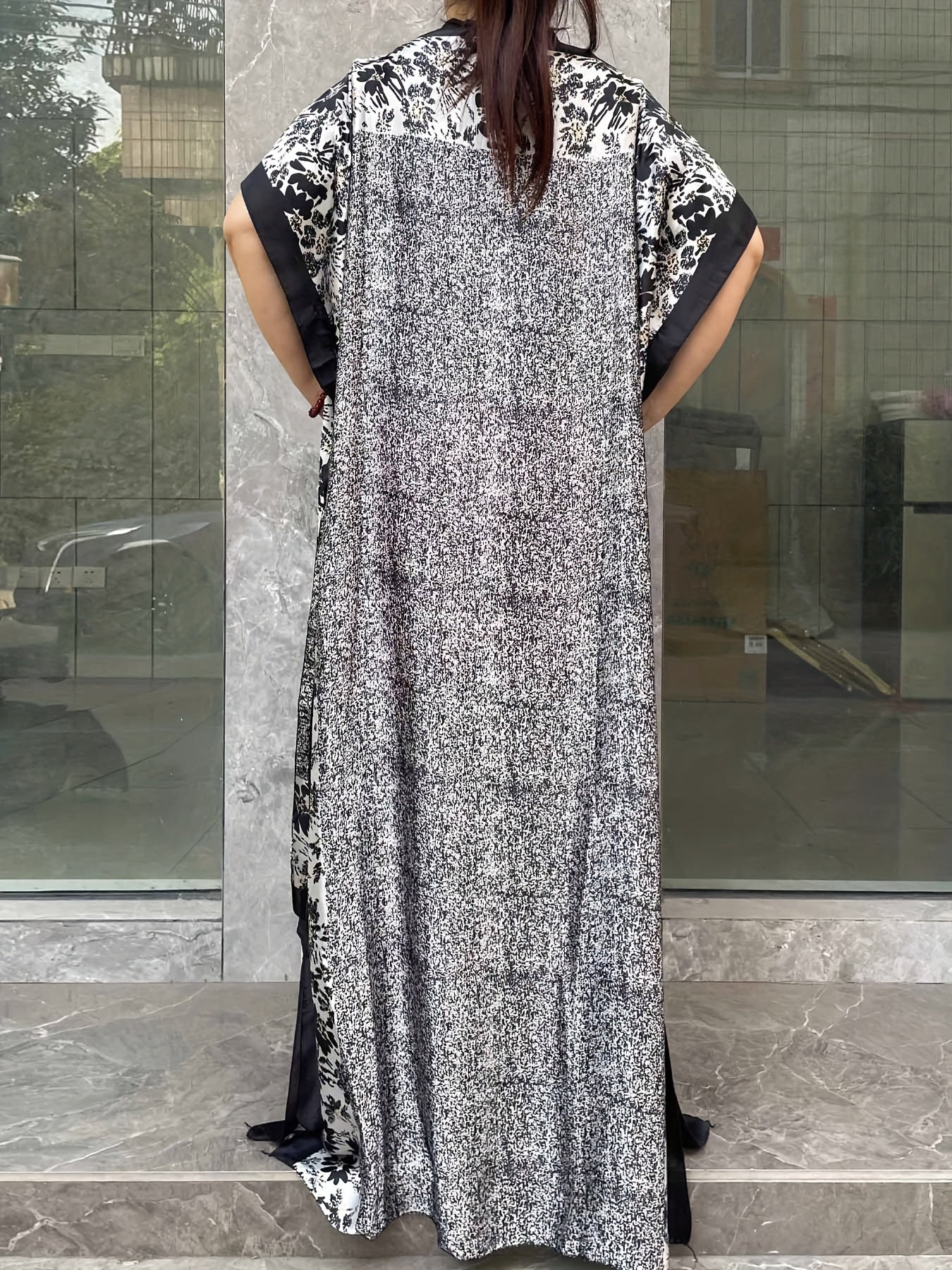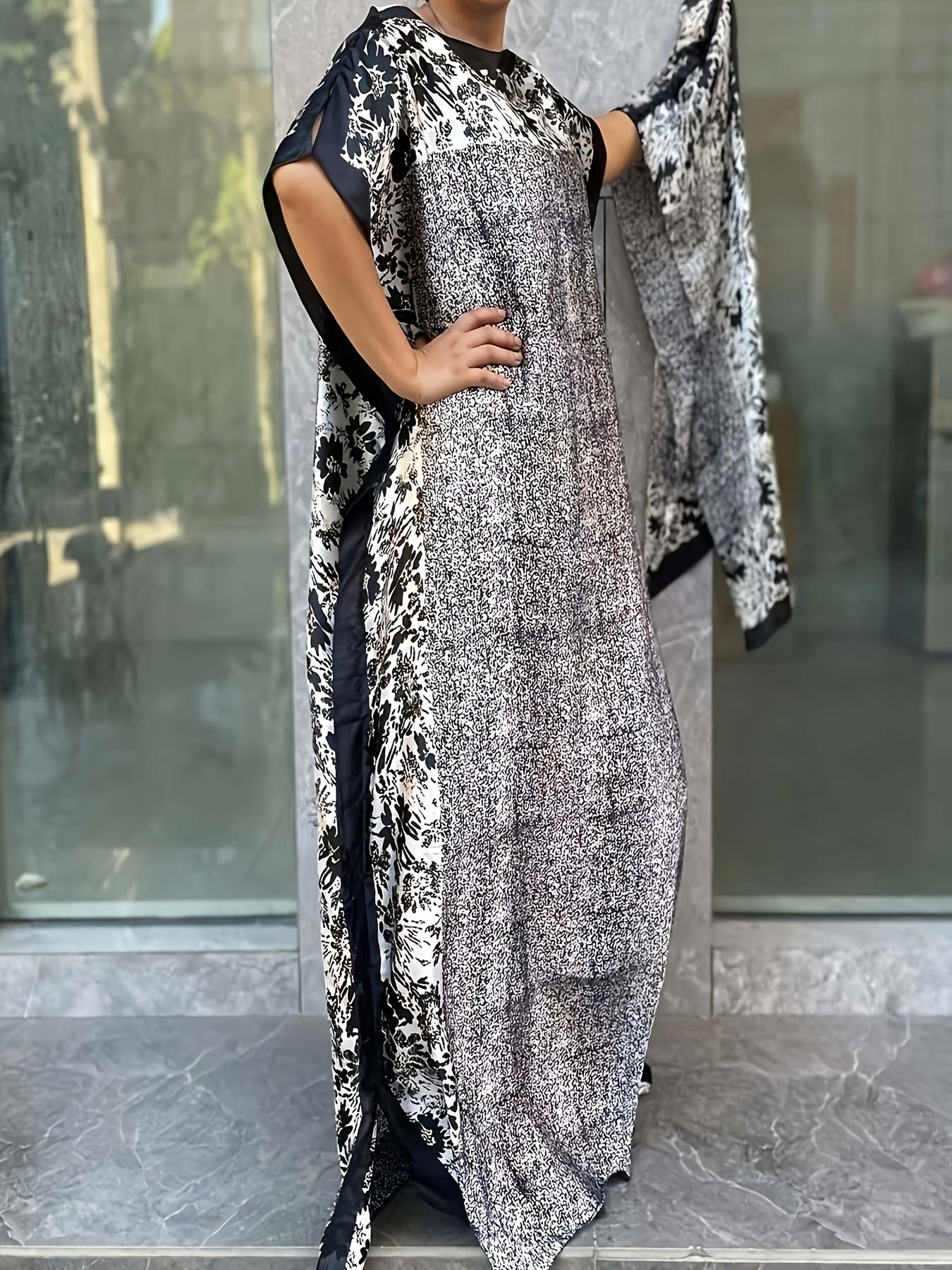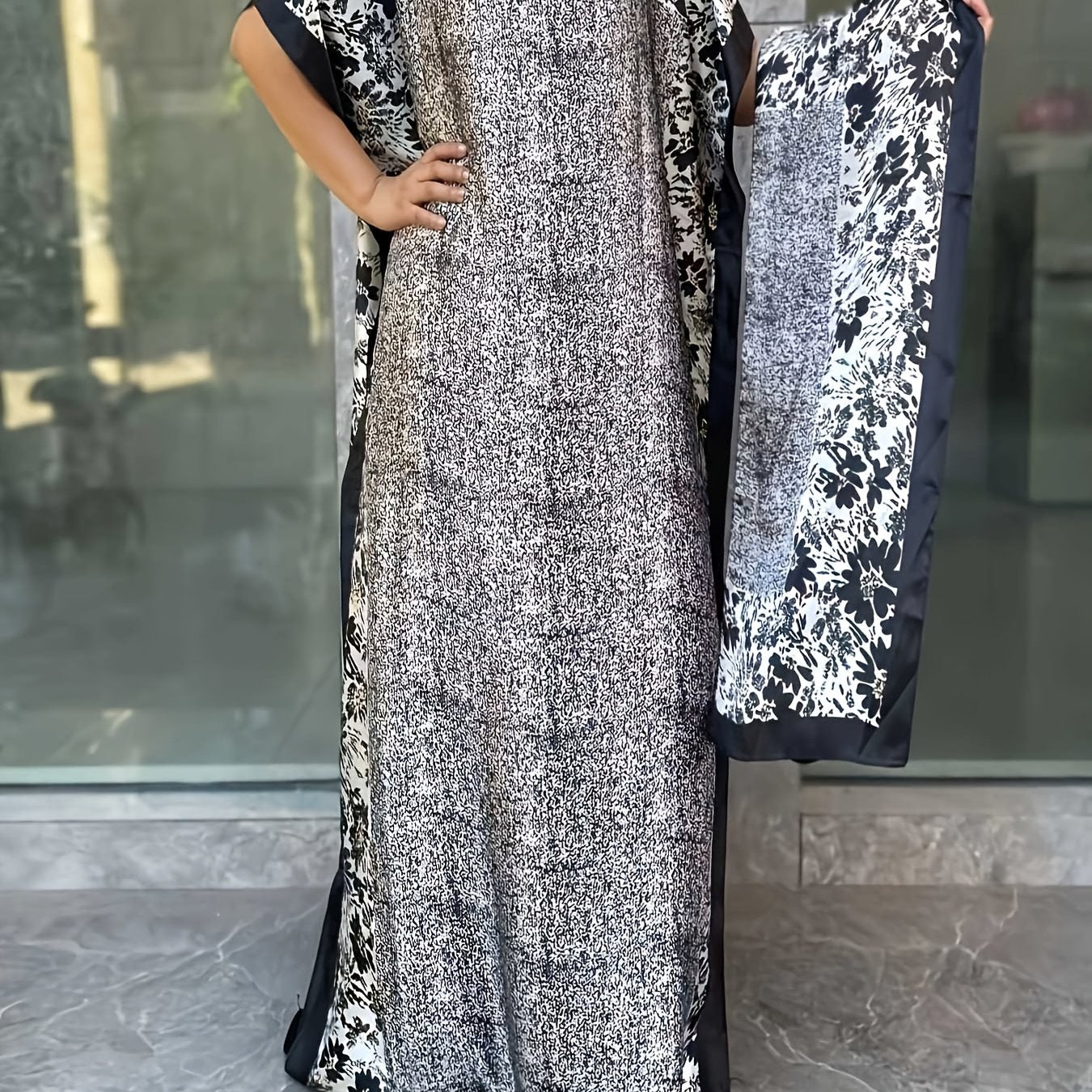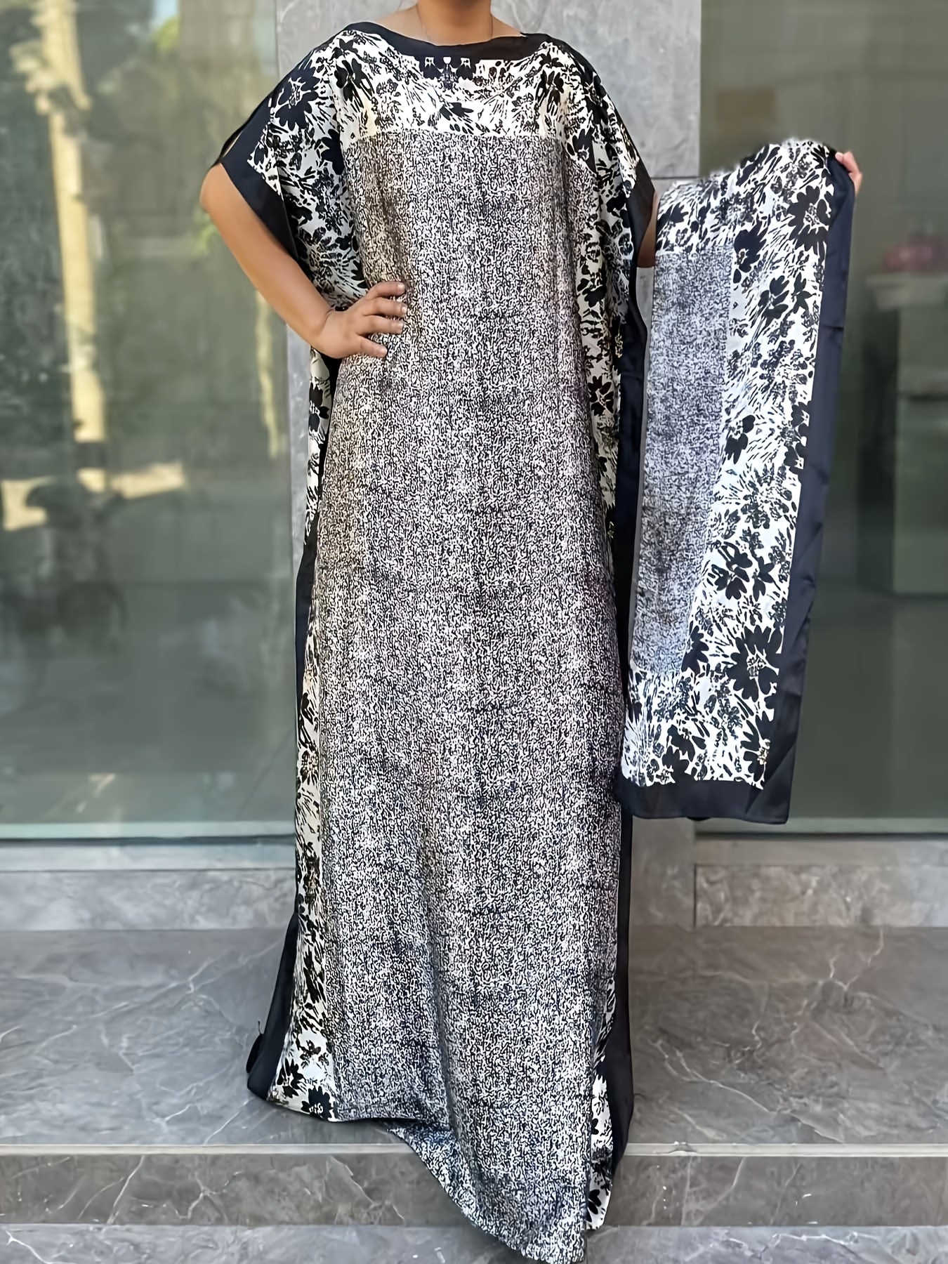 Платье макси для женщин больших размеров с цветочным геометрическим принтом и шарфом, длинные рукава, повседневное для всех сезонов