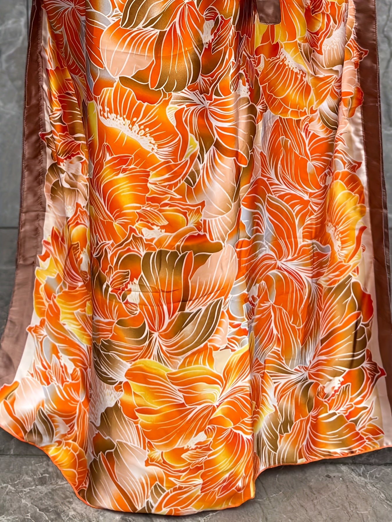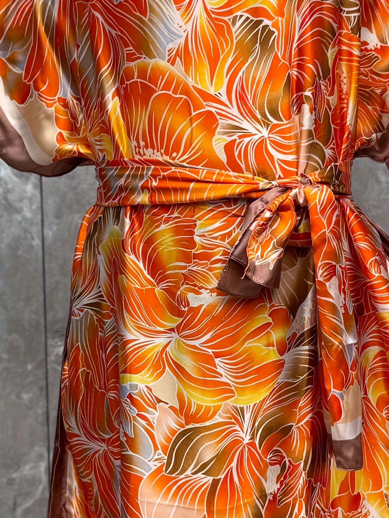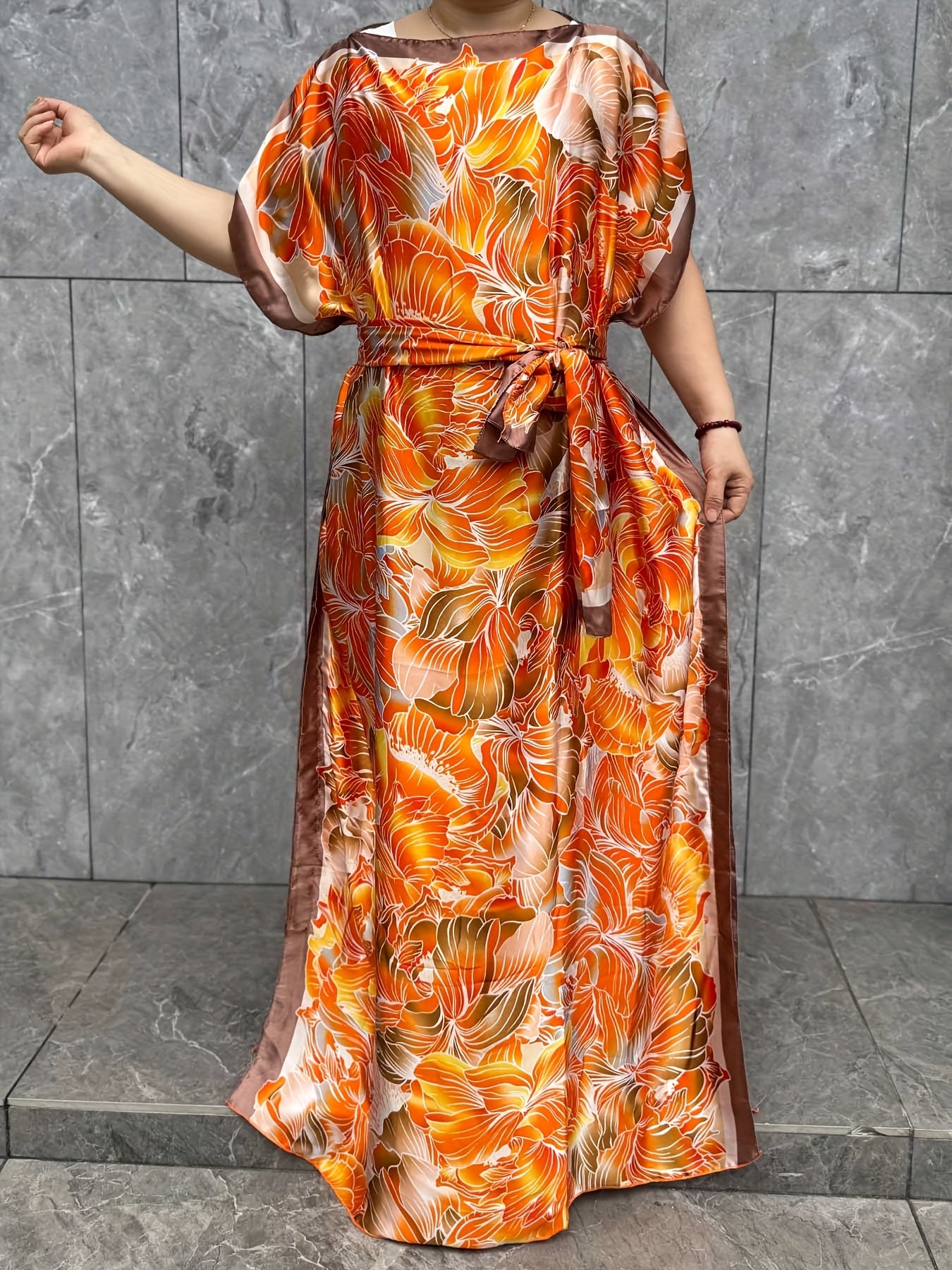 Плюс сайз женское платье-кафтан с цветочным принтом, короткий рукав, круглый вырез, свободный крой, длинная длина, тропический принт, лето, вечеринка, повседневный стиль