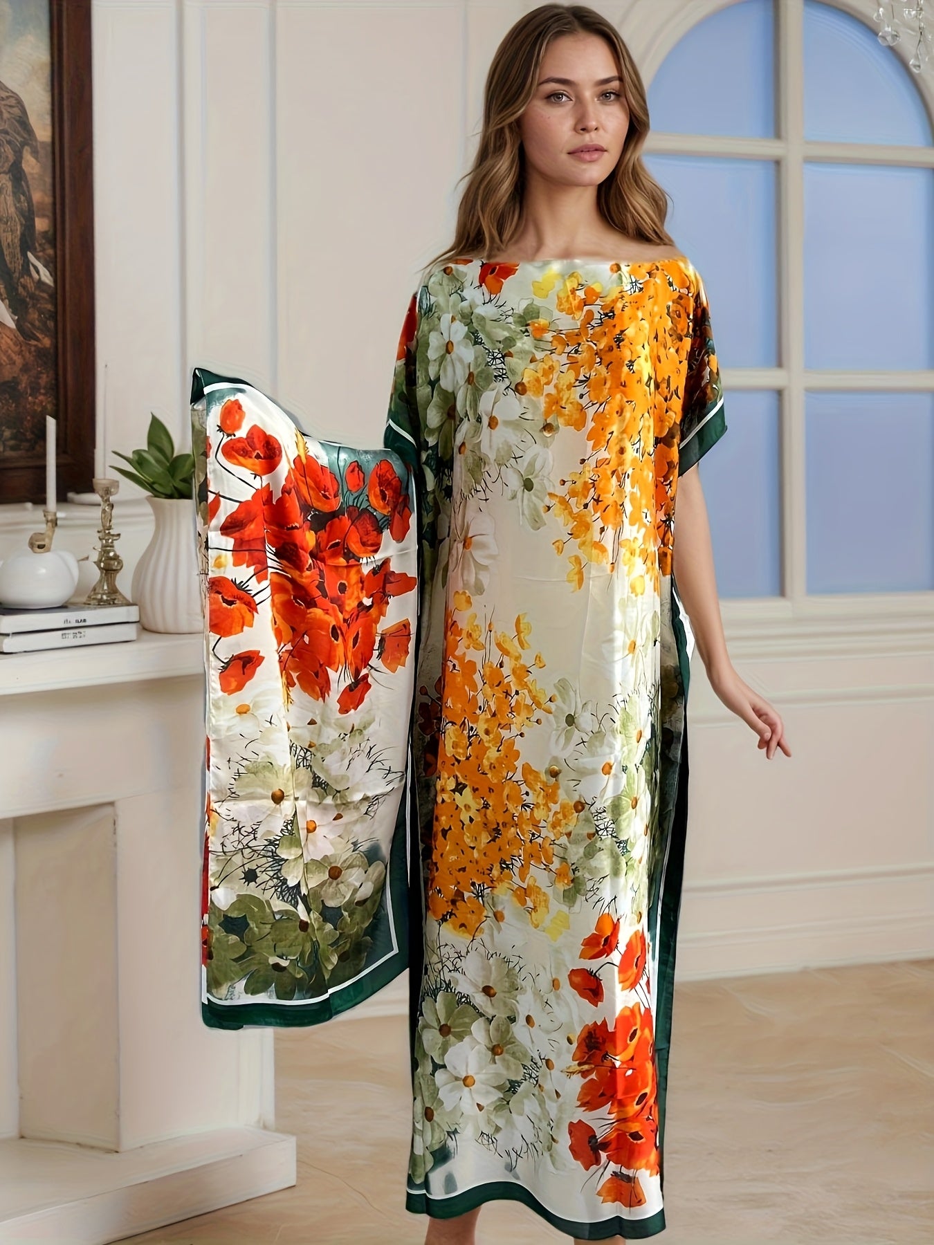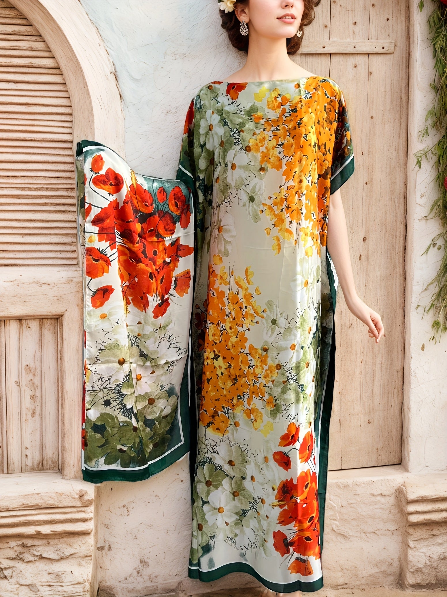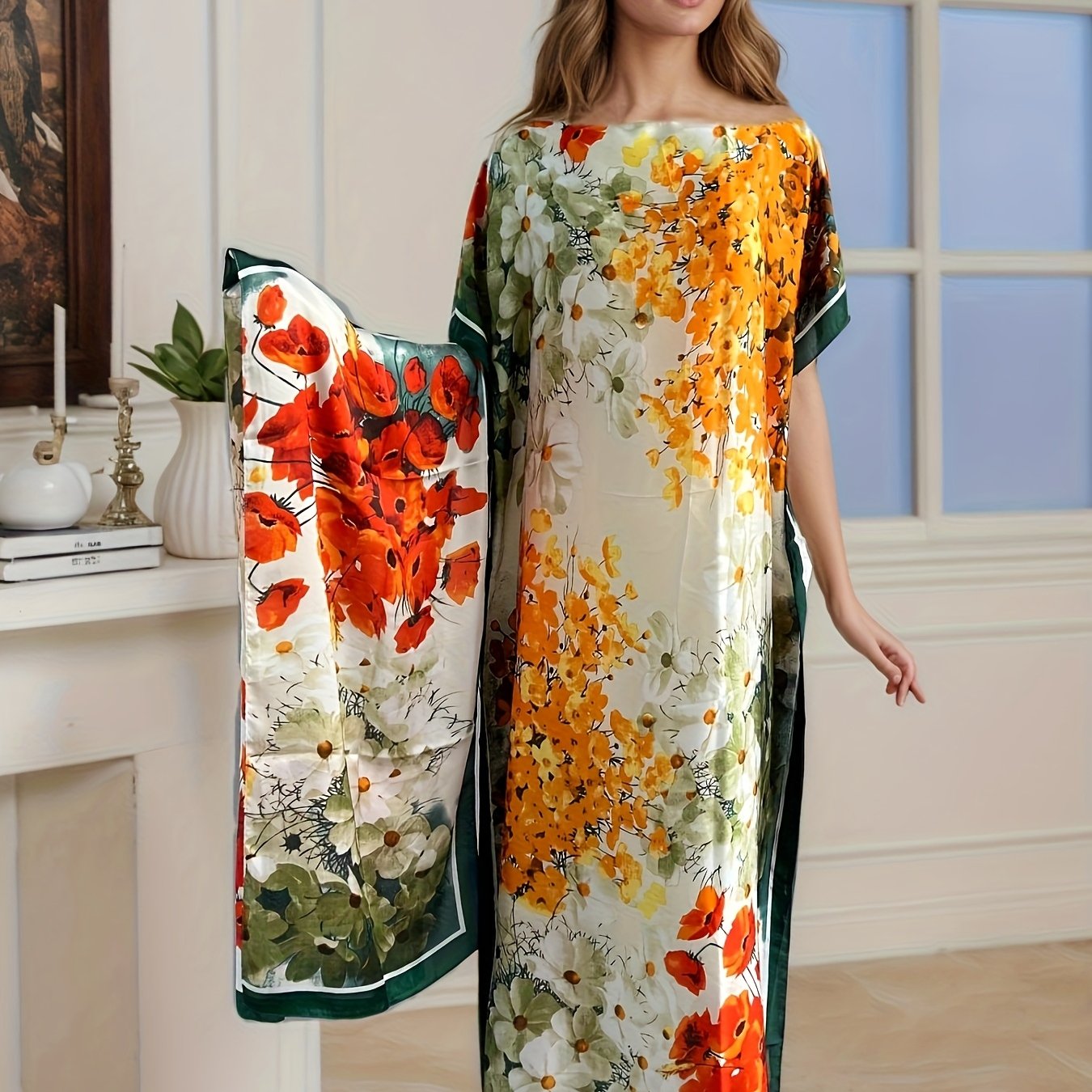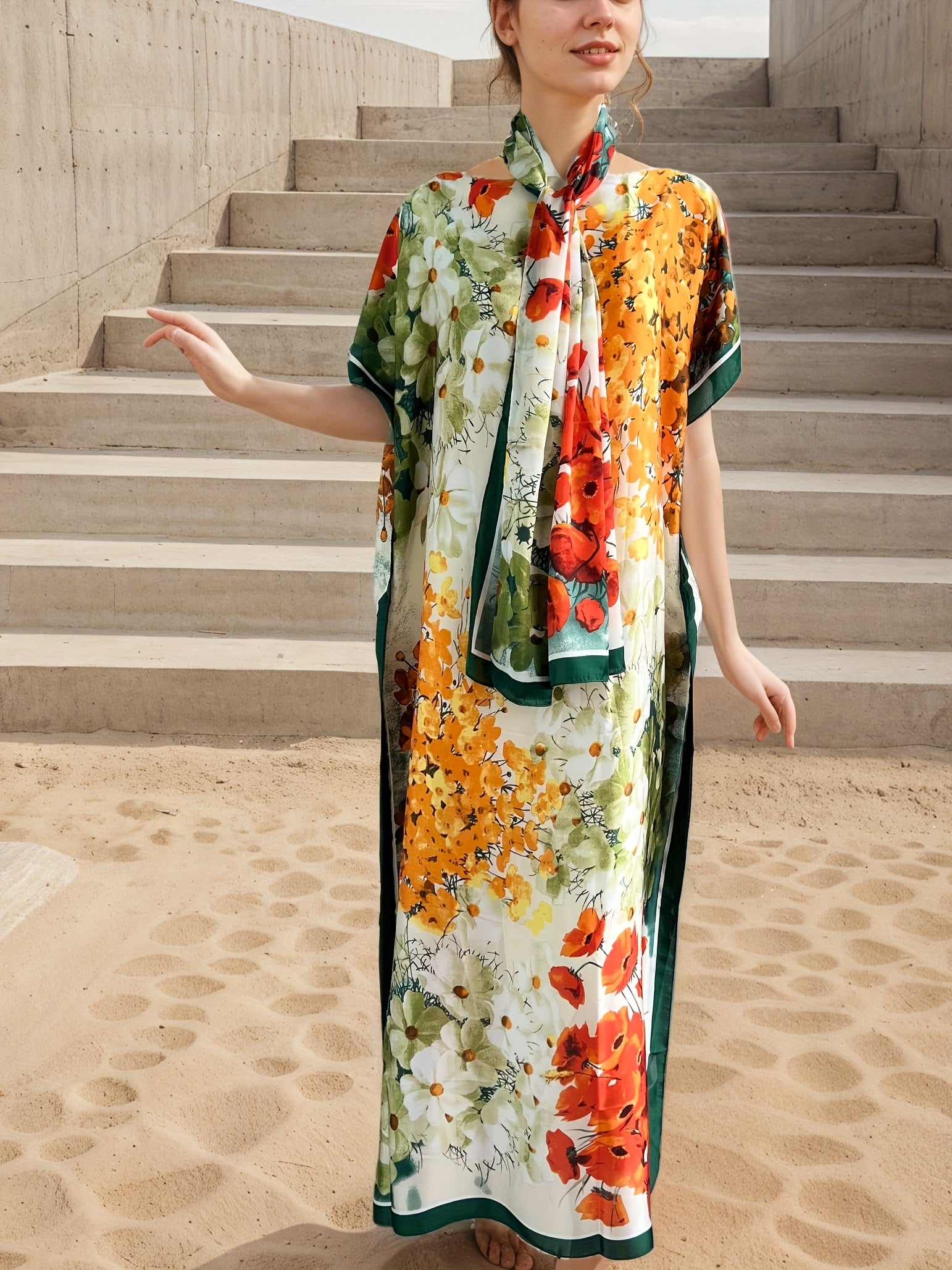 Плюс сайз женское платье-кимоно с цветочным принтом из полиэстера и шарфом, рукава баттерфляй