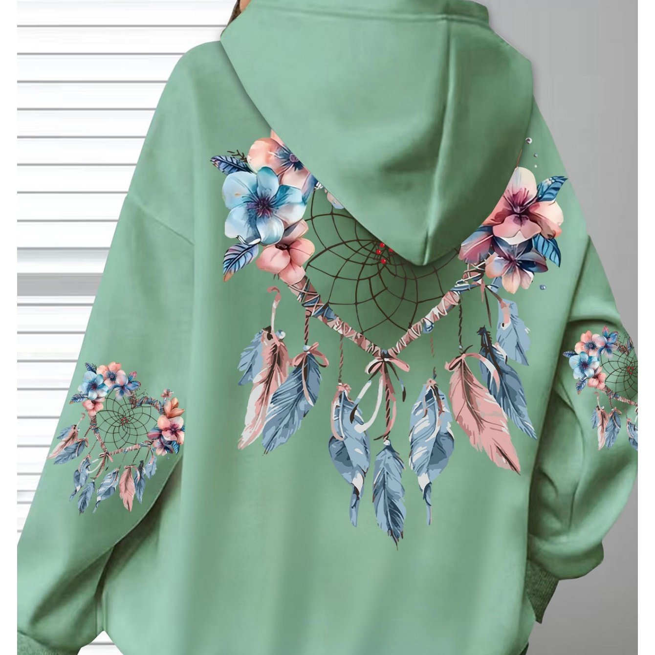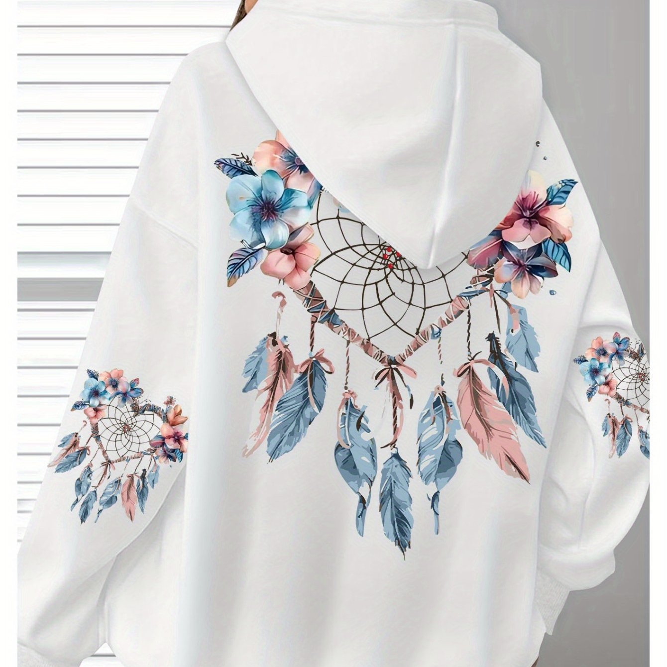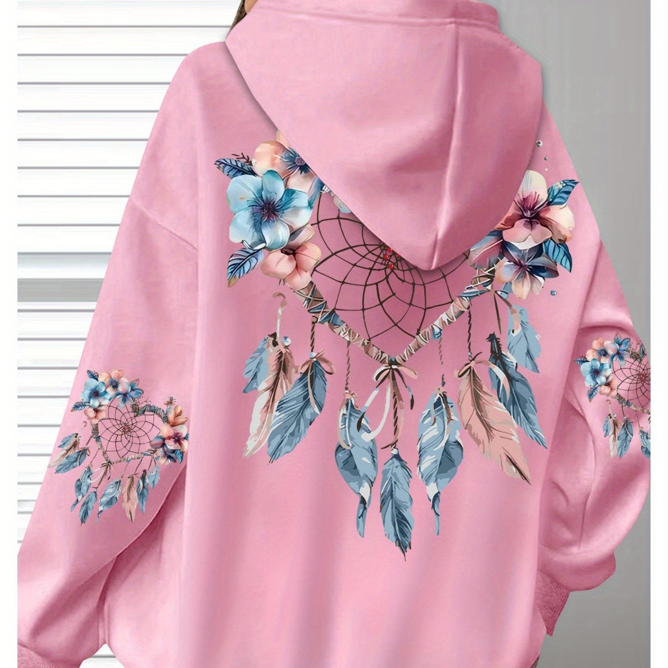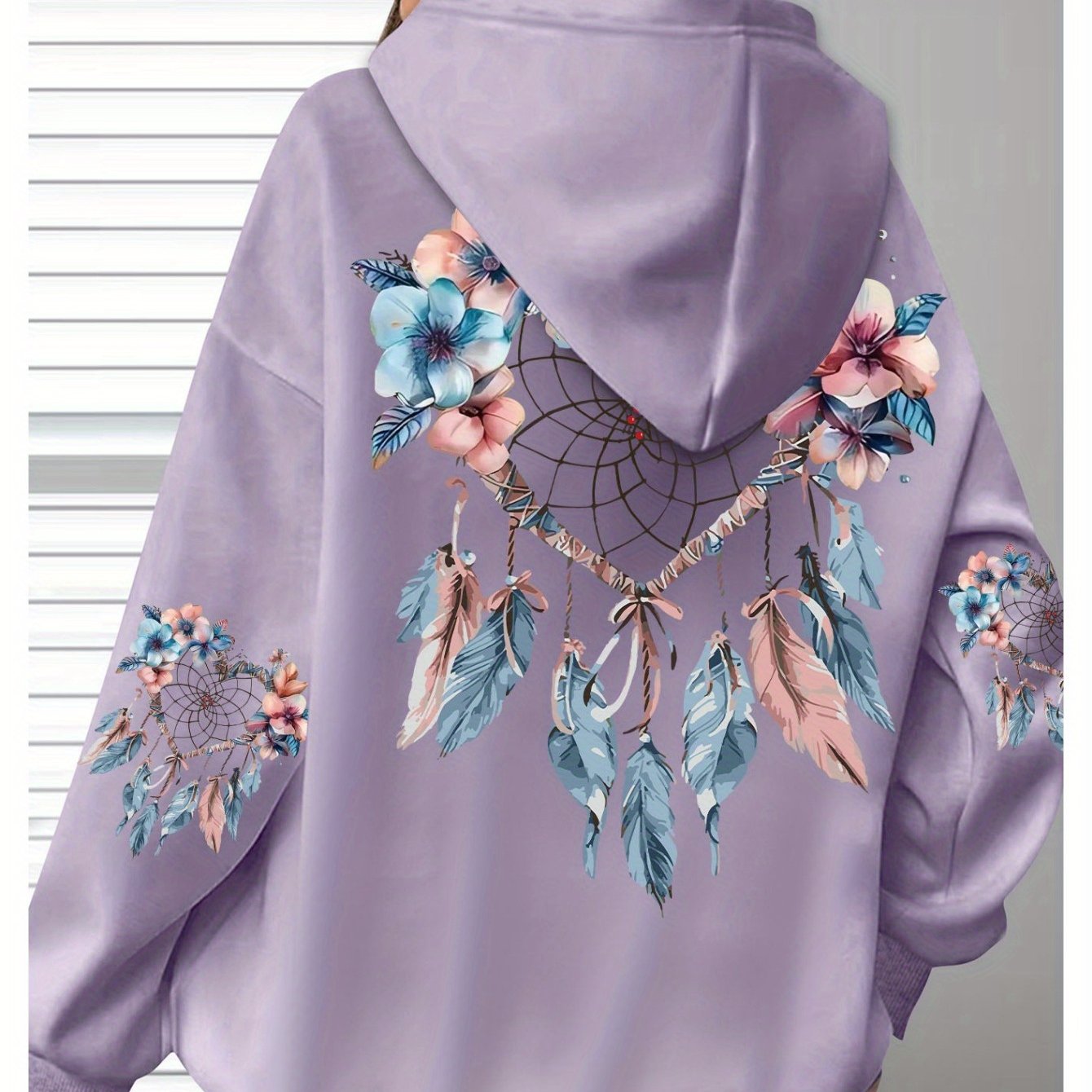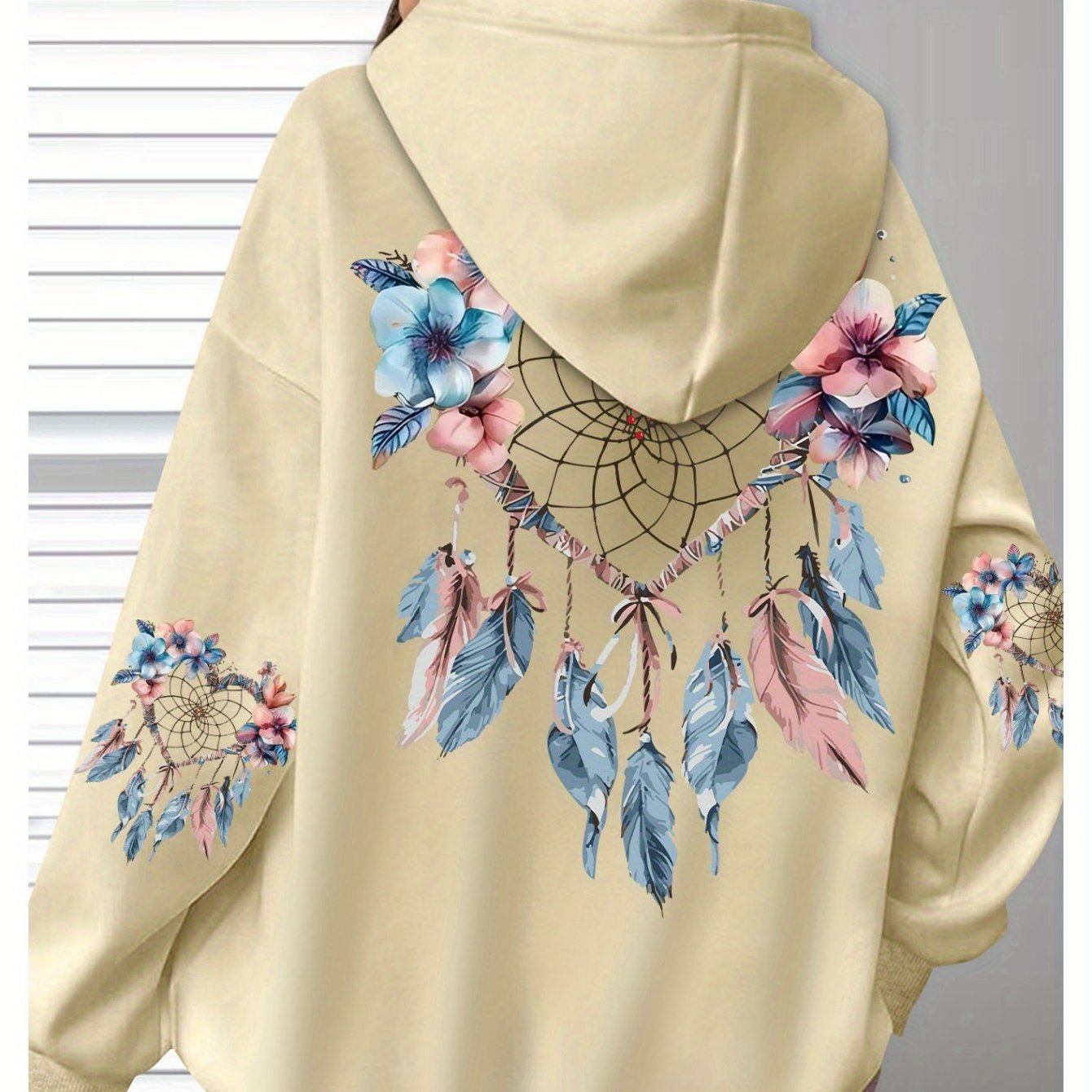 Толстовка женская с цветочным принтом, длинные рукава, черная с карманами, размер плюс