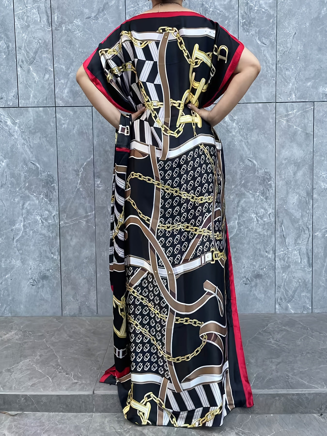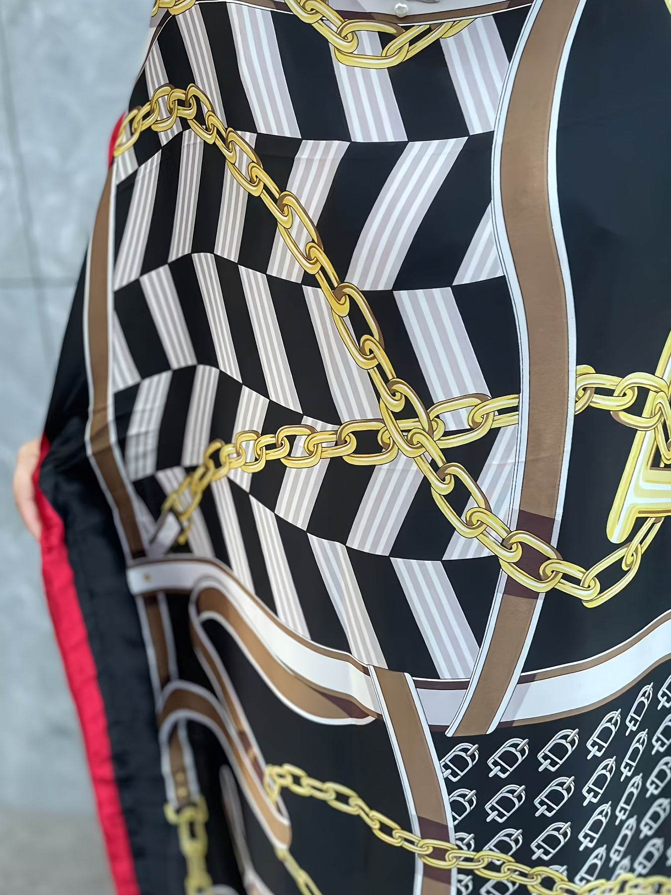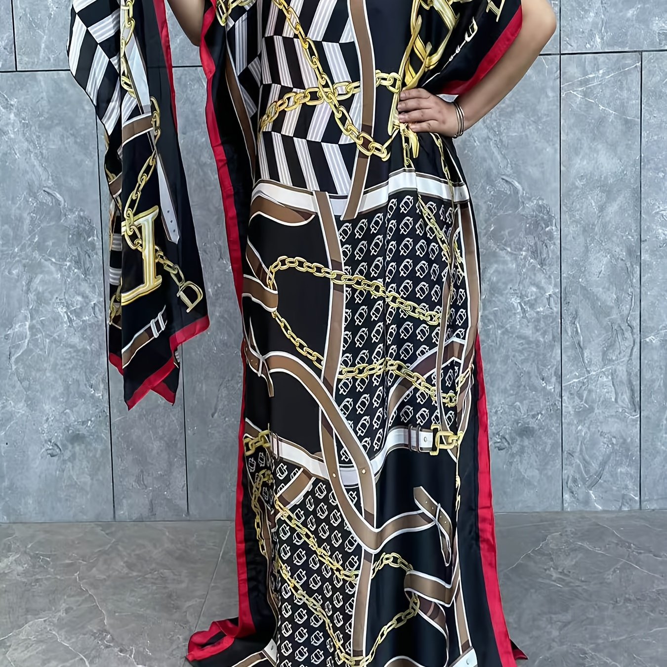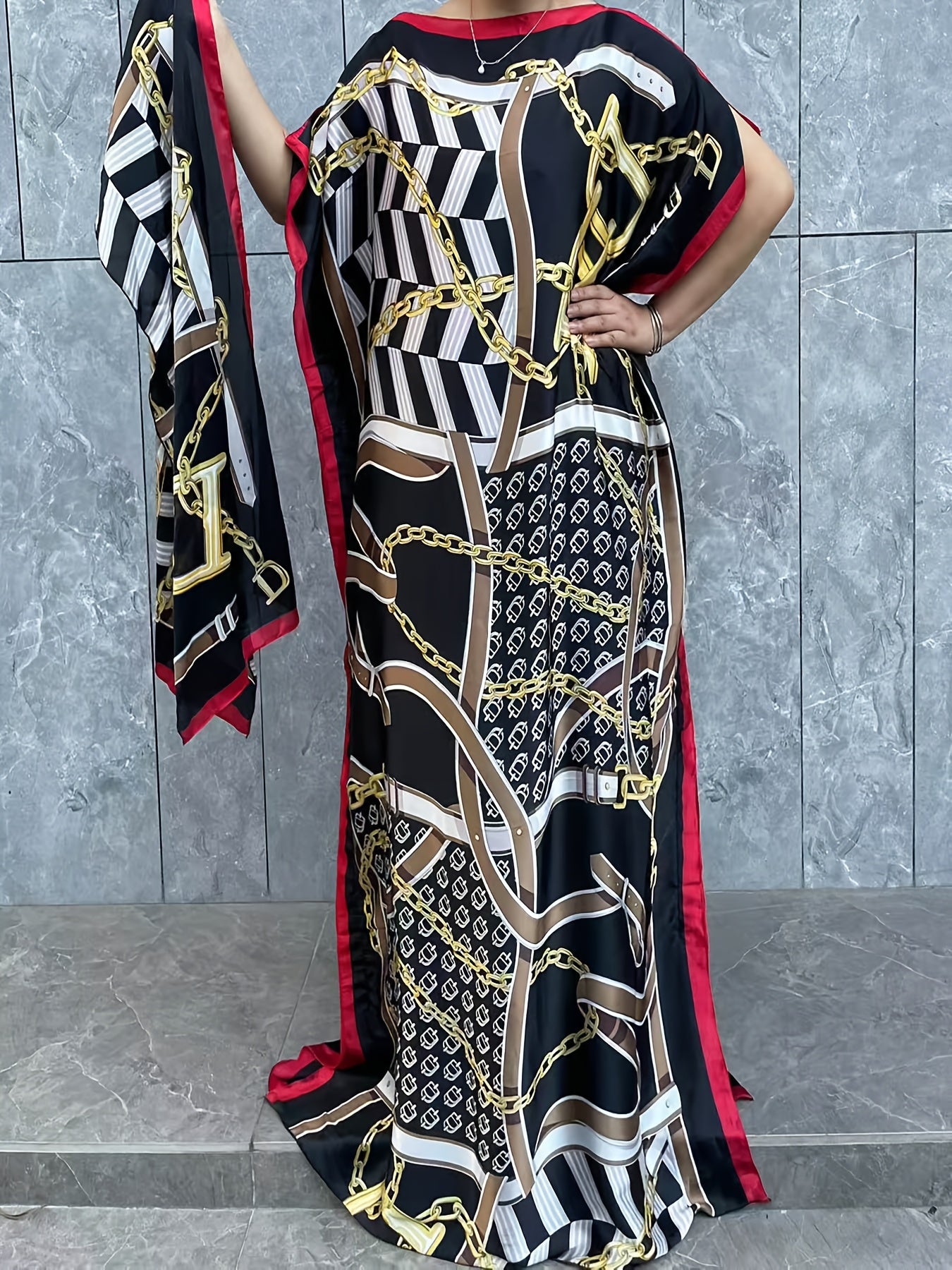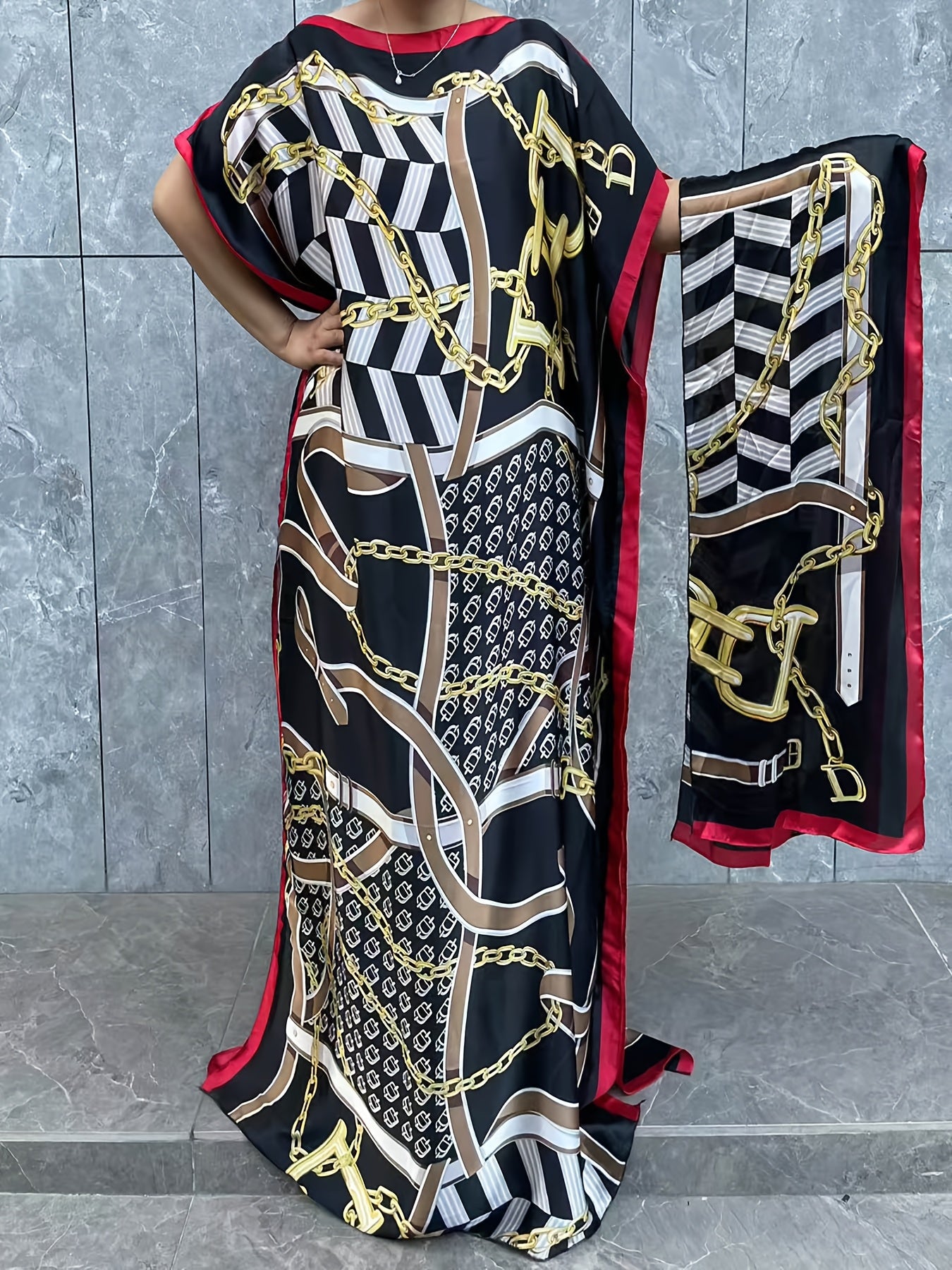 Платье большого размера для женщин с цветочным принтом и длинным кроем с шарфом, черное и белое, летняя вечеринка