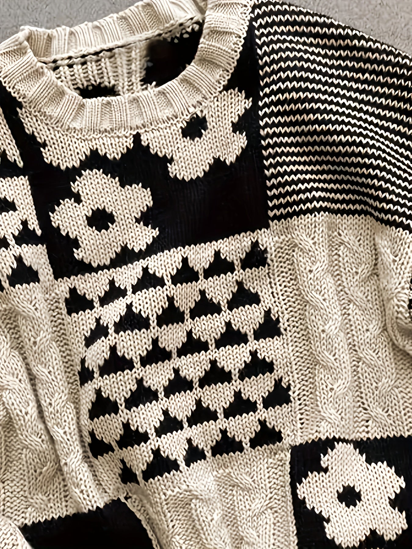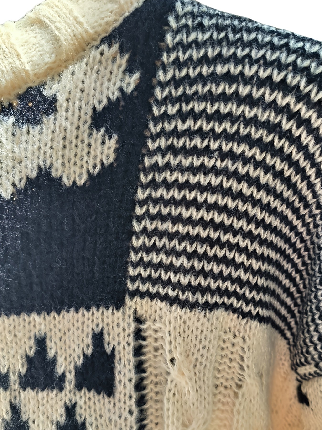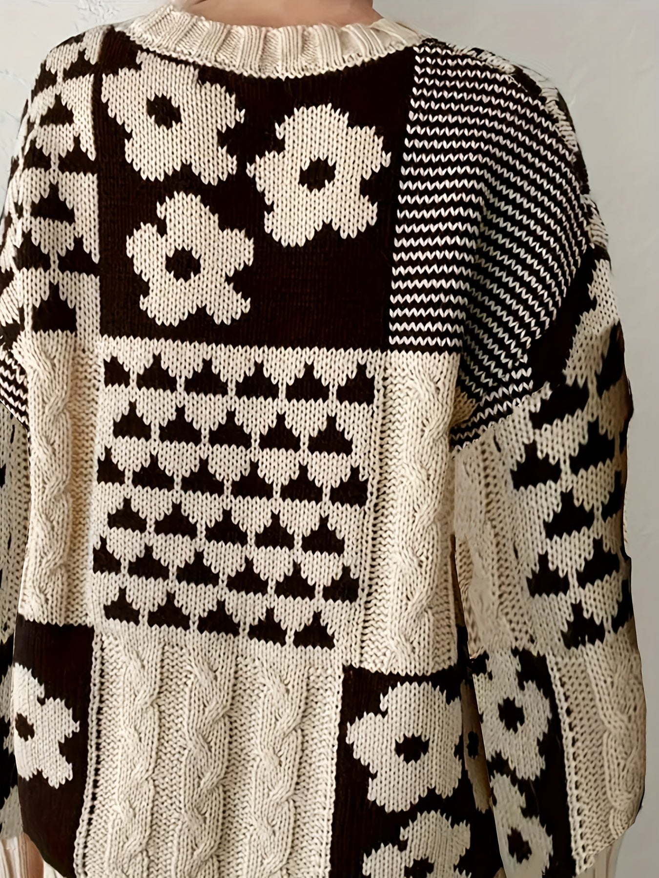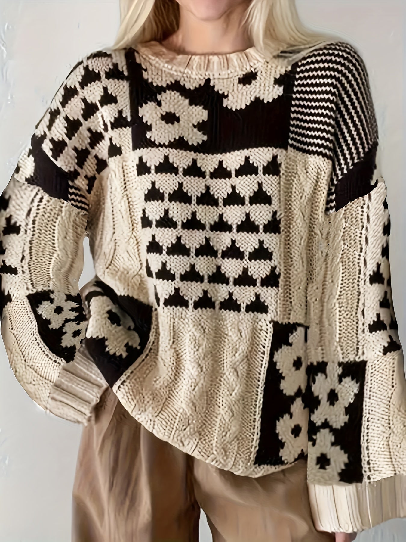 Женский свитер больших размеров с геометрическим узором, длинные рукава, круглый вырез, осень, повседневный