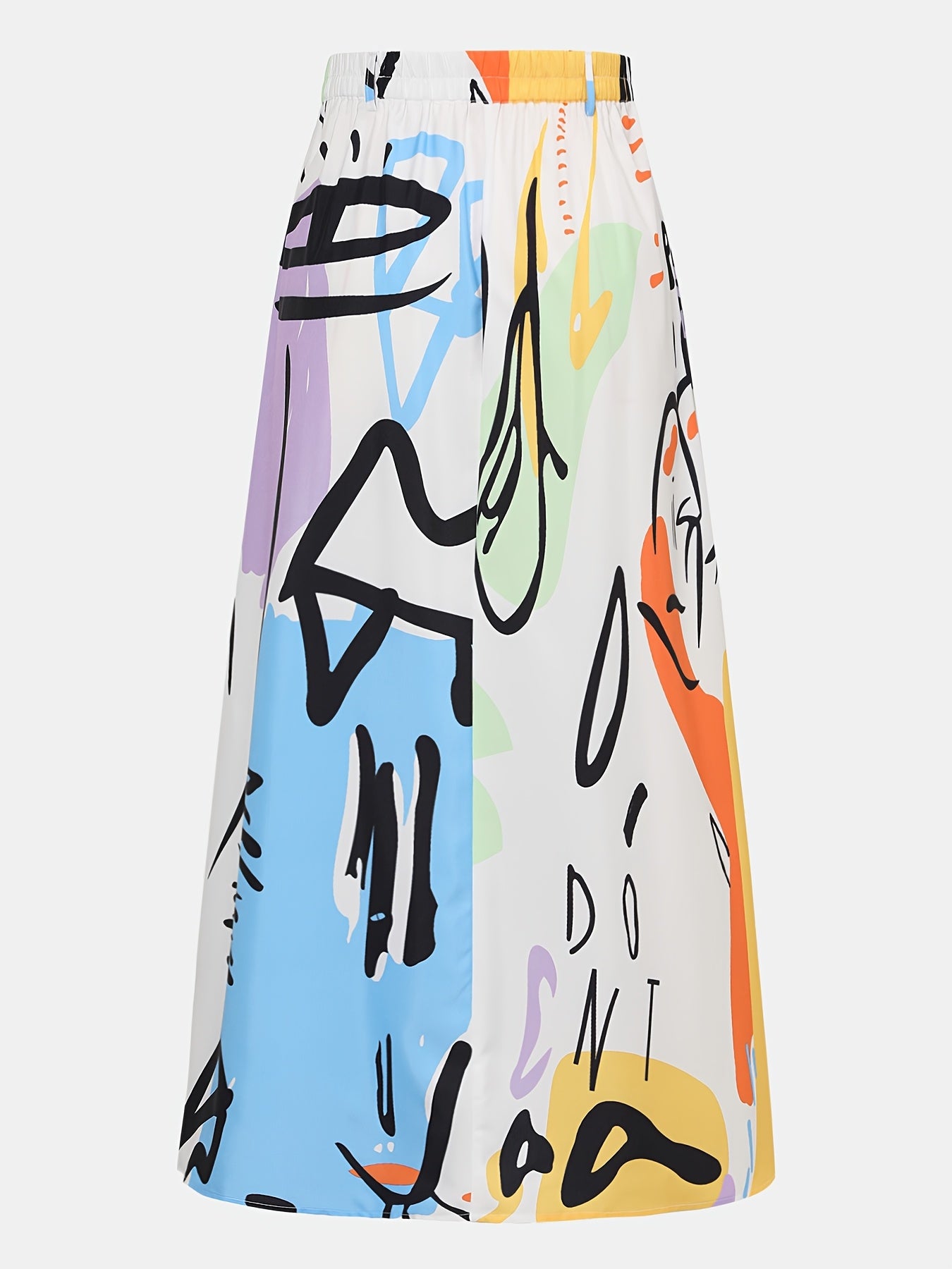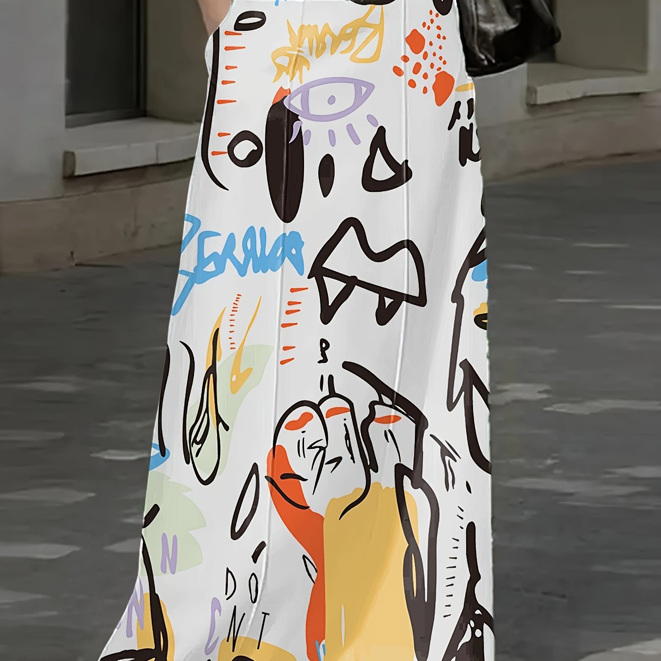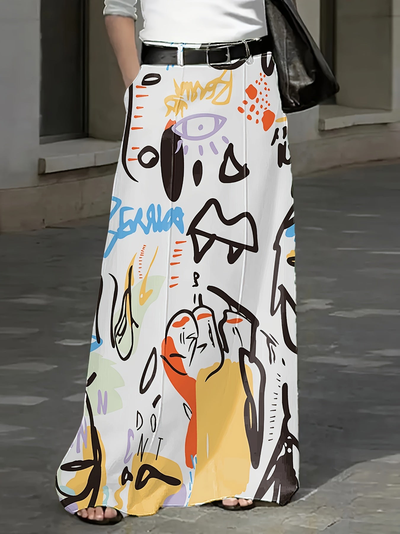Plus Size Women's Geometric Print High Waist Skirt with Pockets