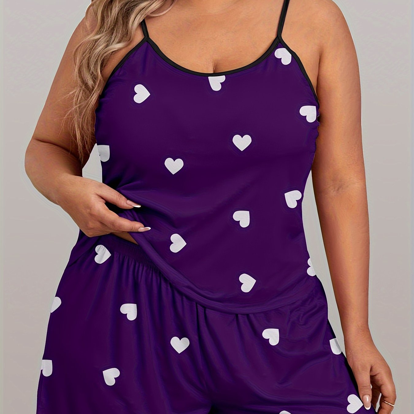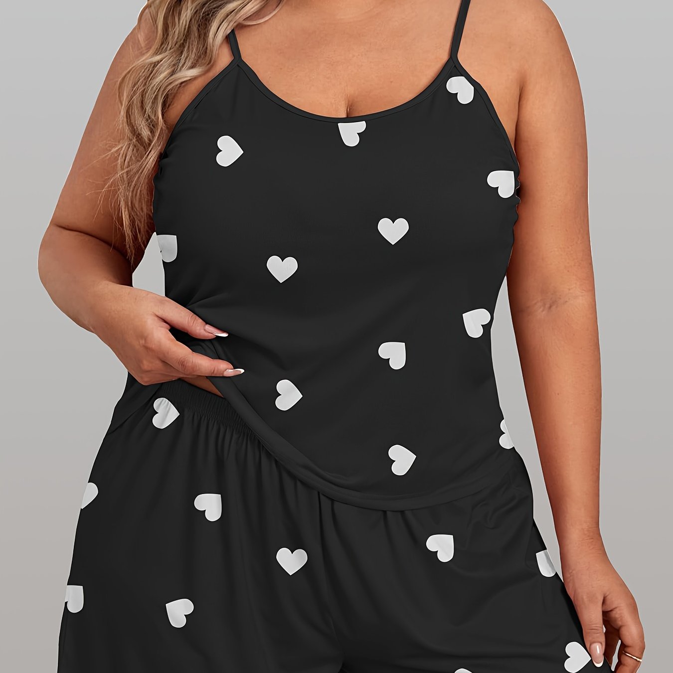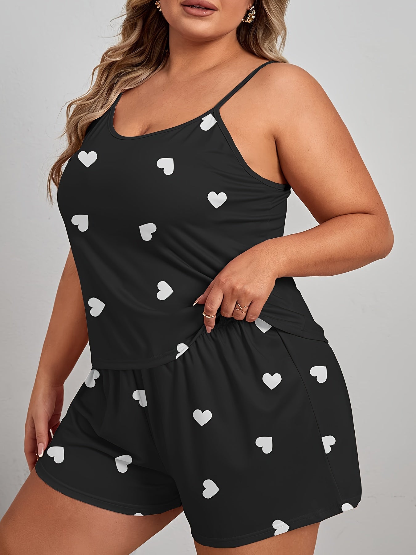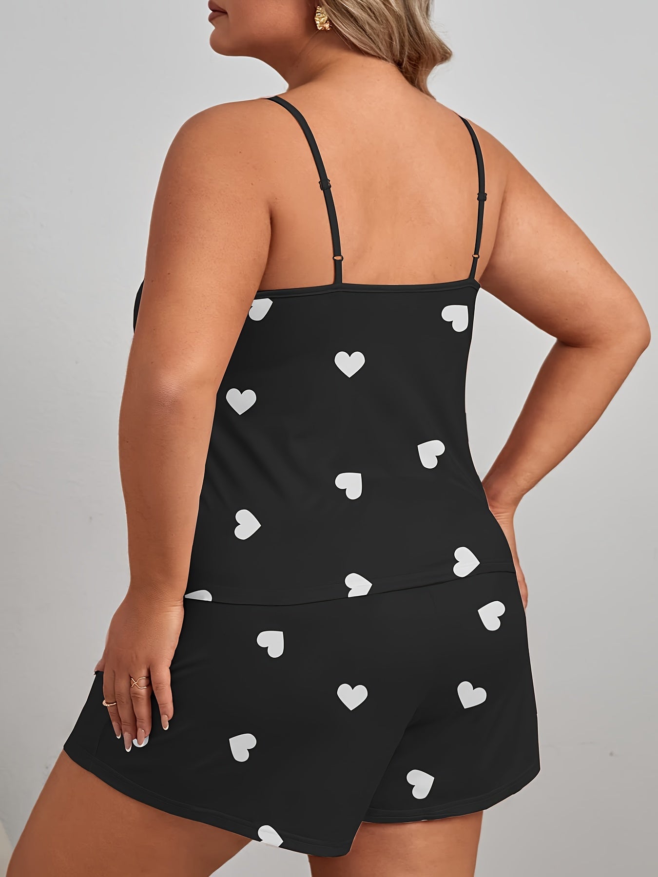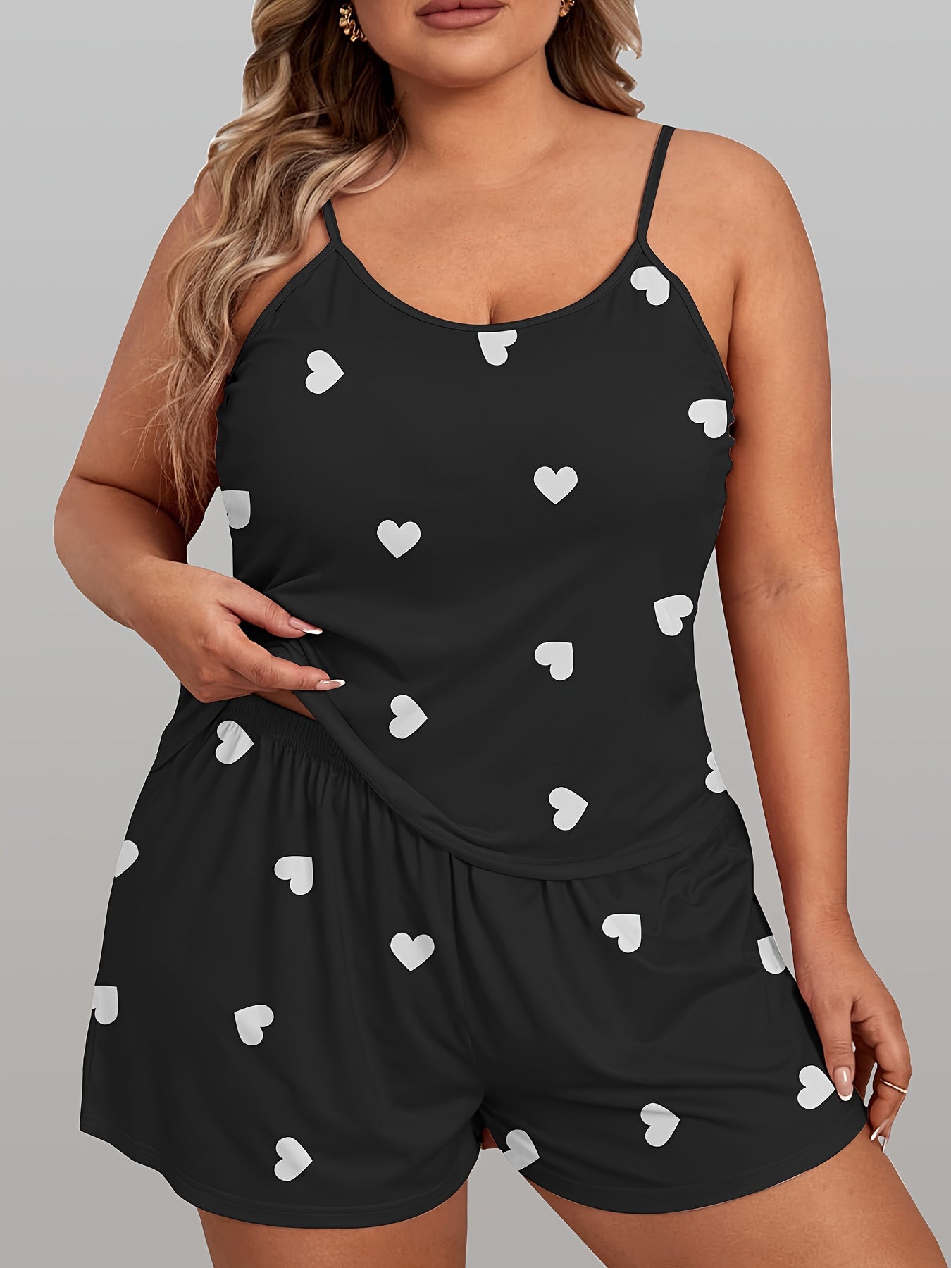 Пижама для женщин больших размеров с принтом сердечек, топом-ками и шортами
