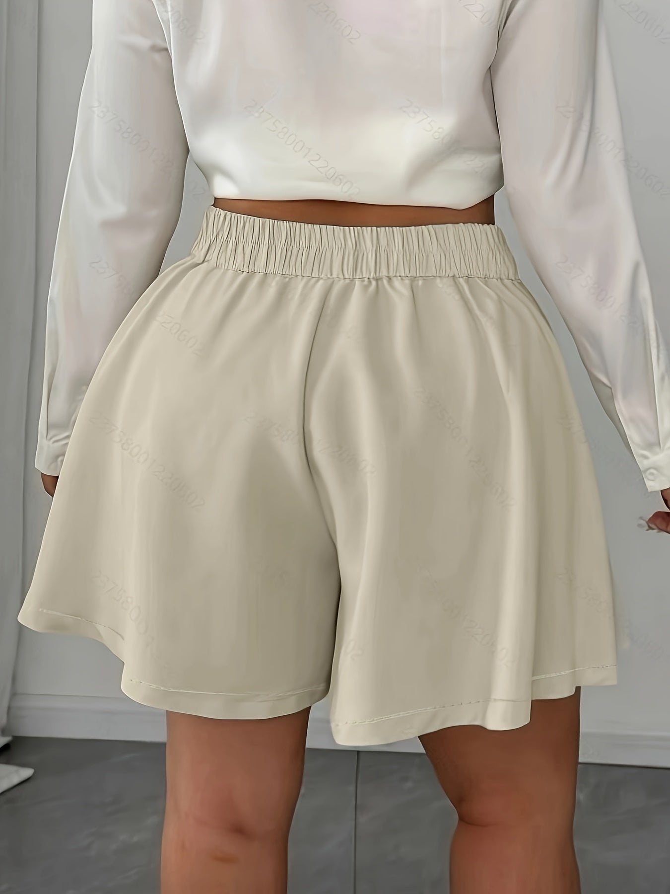 Шорты для женщин больших размеров с высокой талией, неэластичные, бежевые, офисные, повседневные