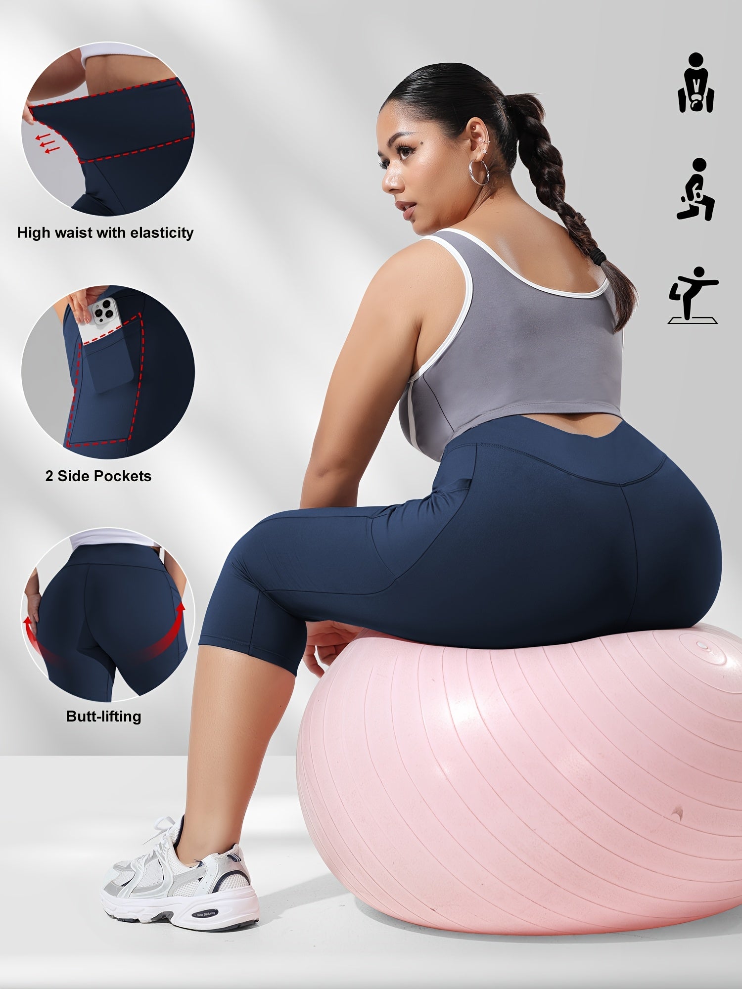 Plus Size Women's High-Waisted Side Stripe Bermuda Shorts Breathable Quick-Dry
