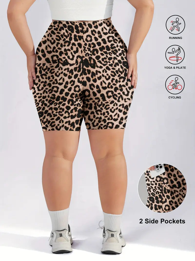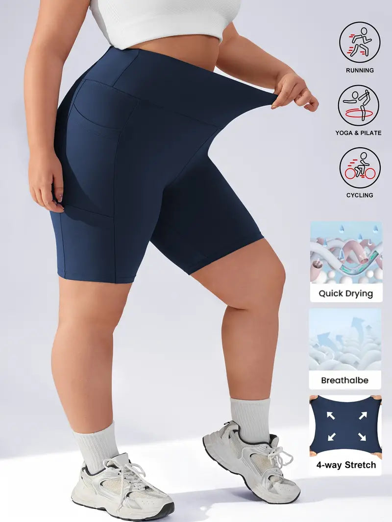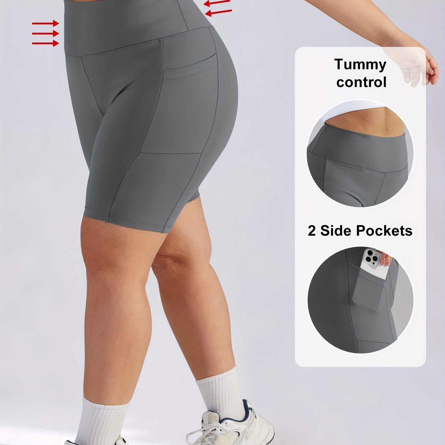 Plus Size Women's High-Waisted Tummy Control Workout Shorts with Pockets