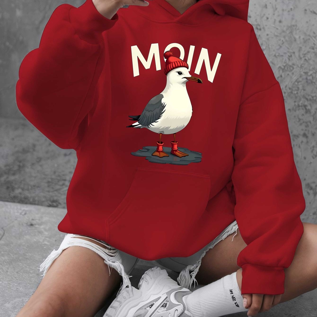 Толстовка для женщин больших размеров с длинными рукавами, красная, с карманами, повседневная, осень-зима