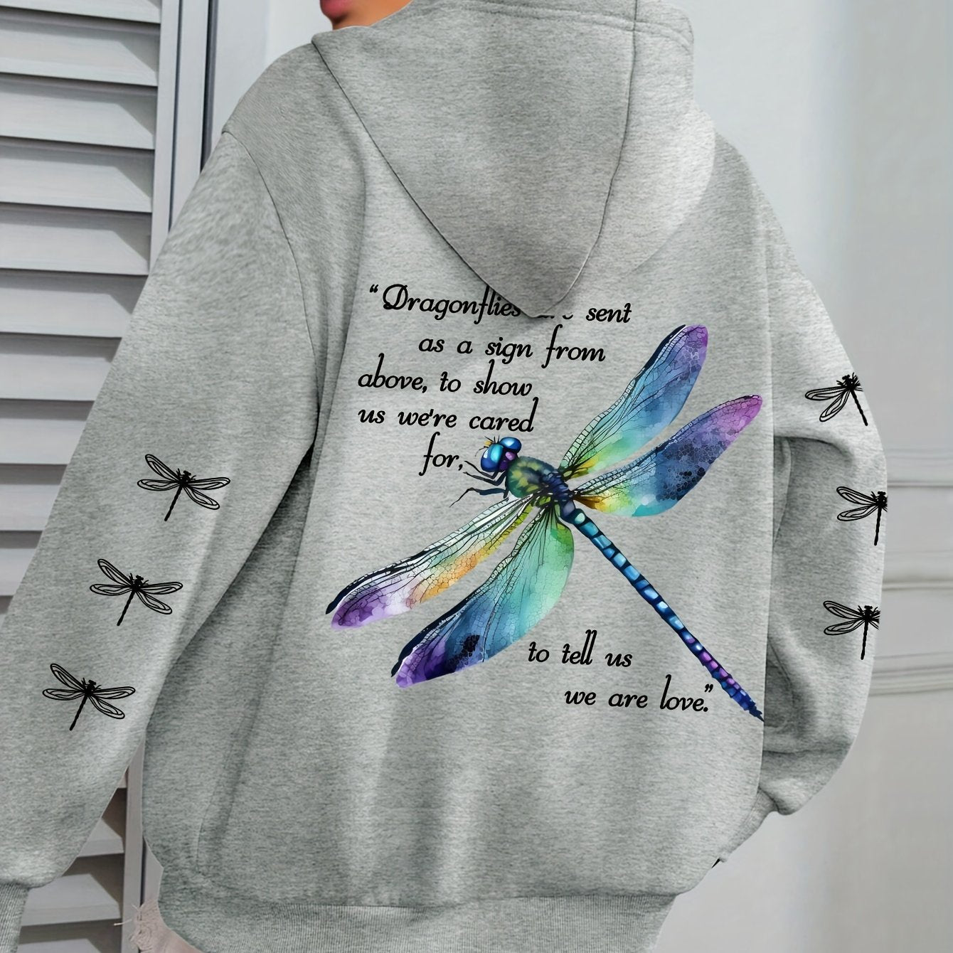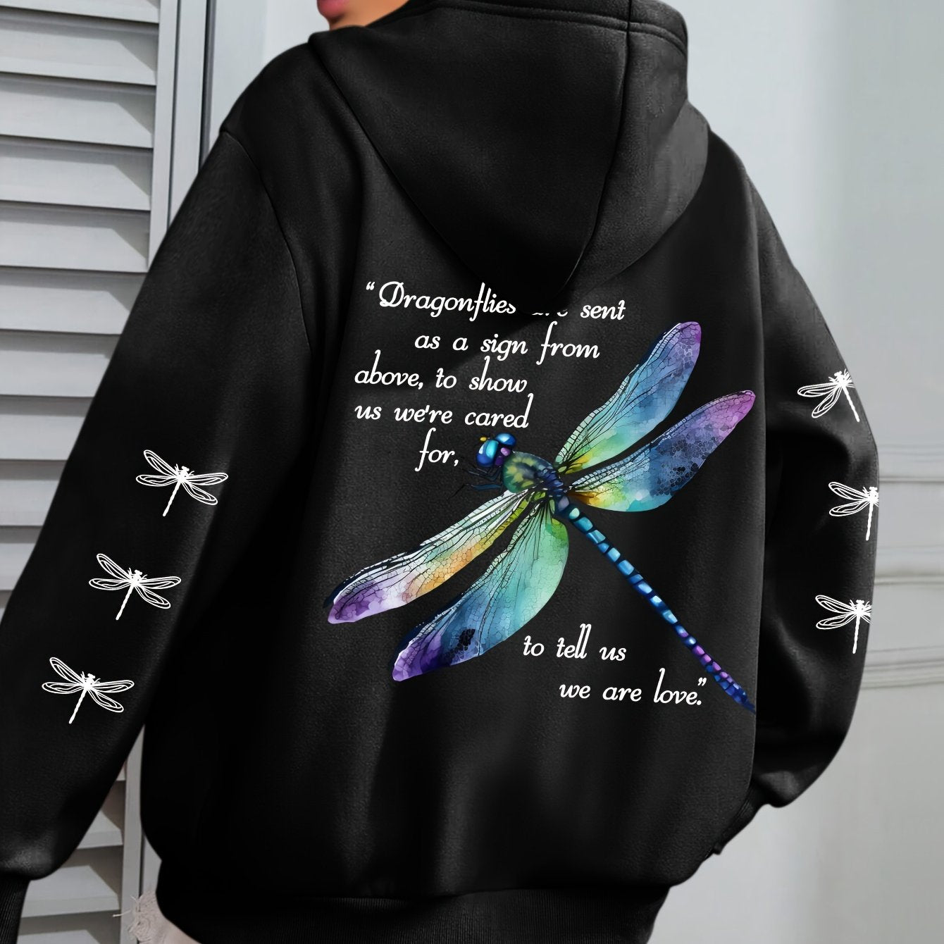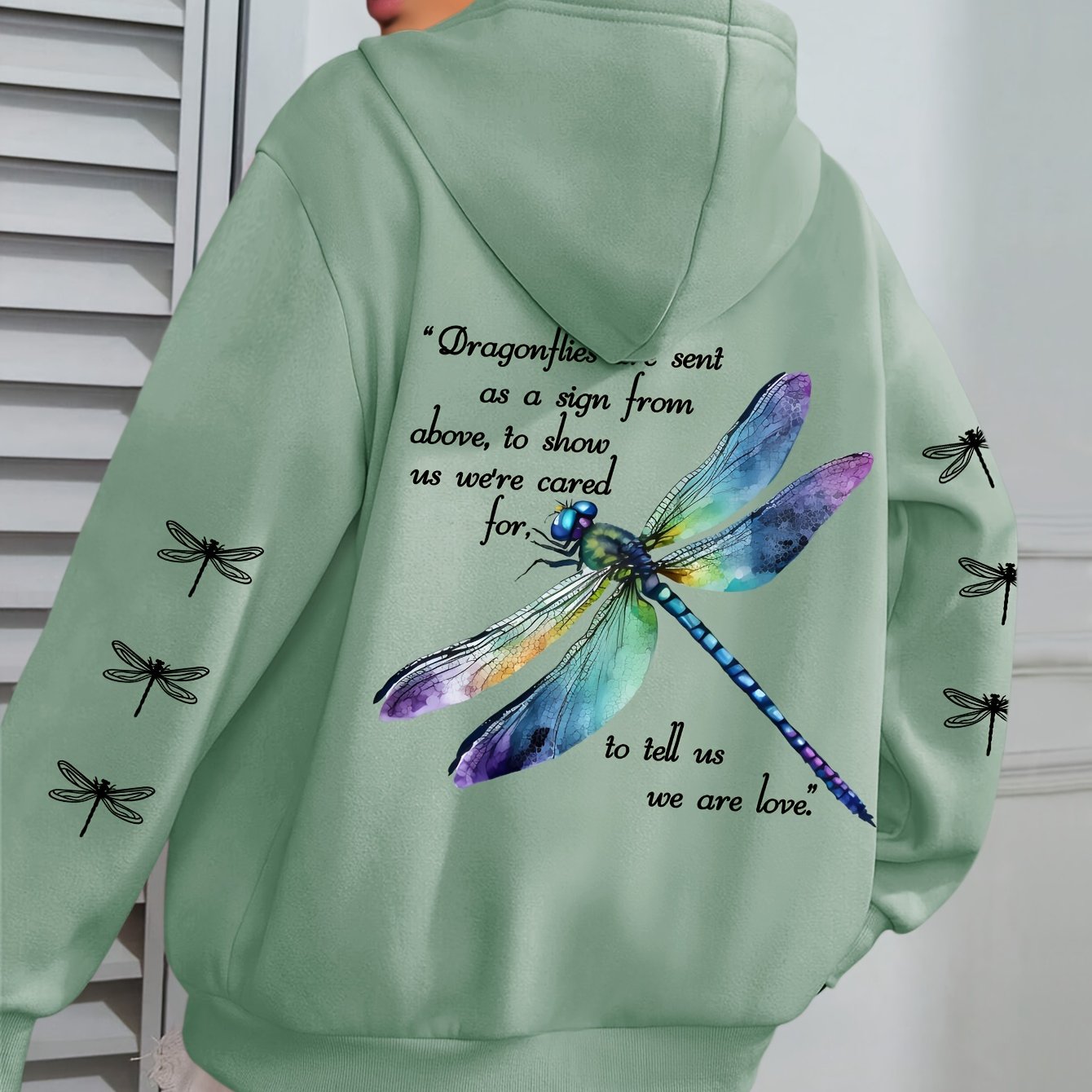Толстовка с длинными рукавами для женщин больших размеров с принтом стрекозы, зелёная