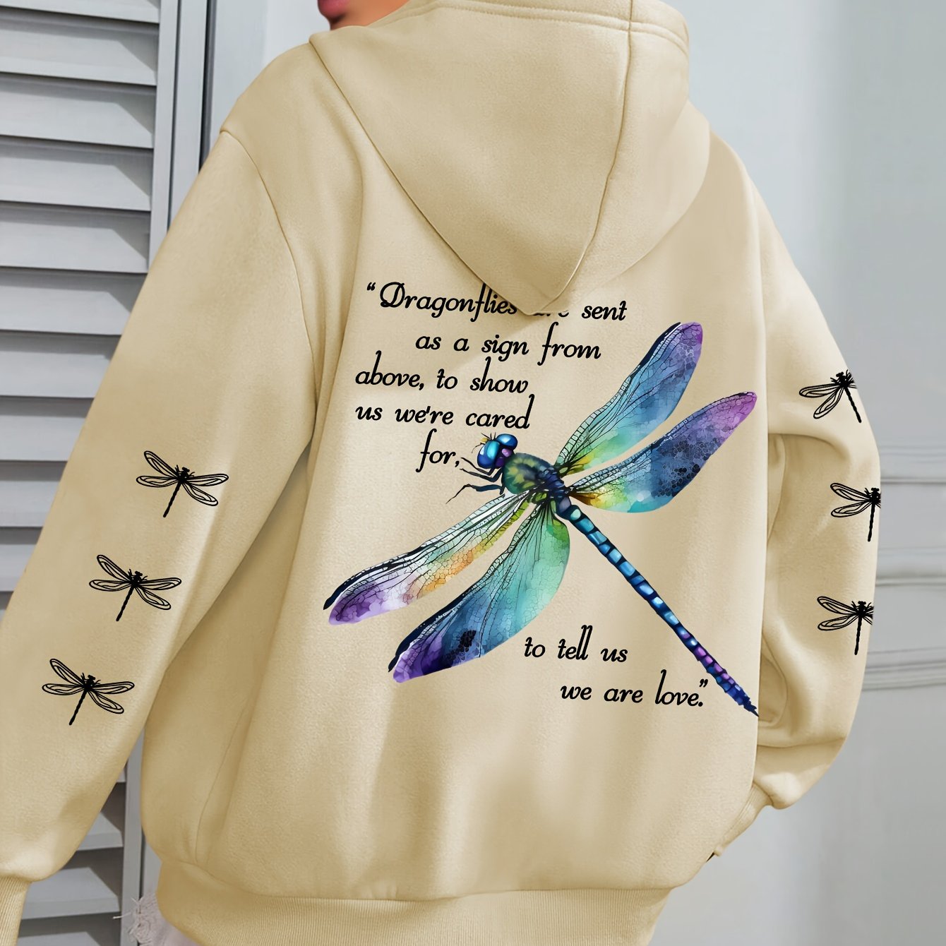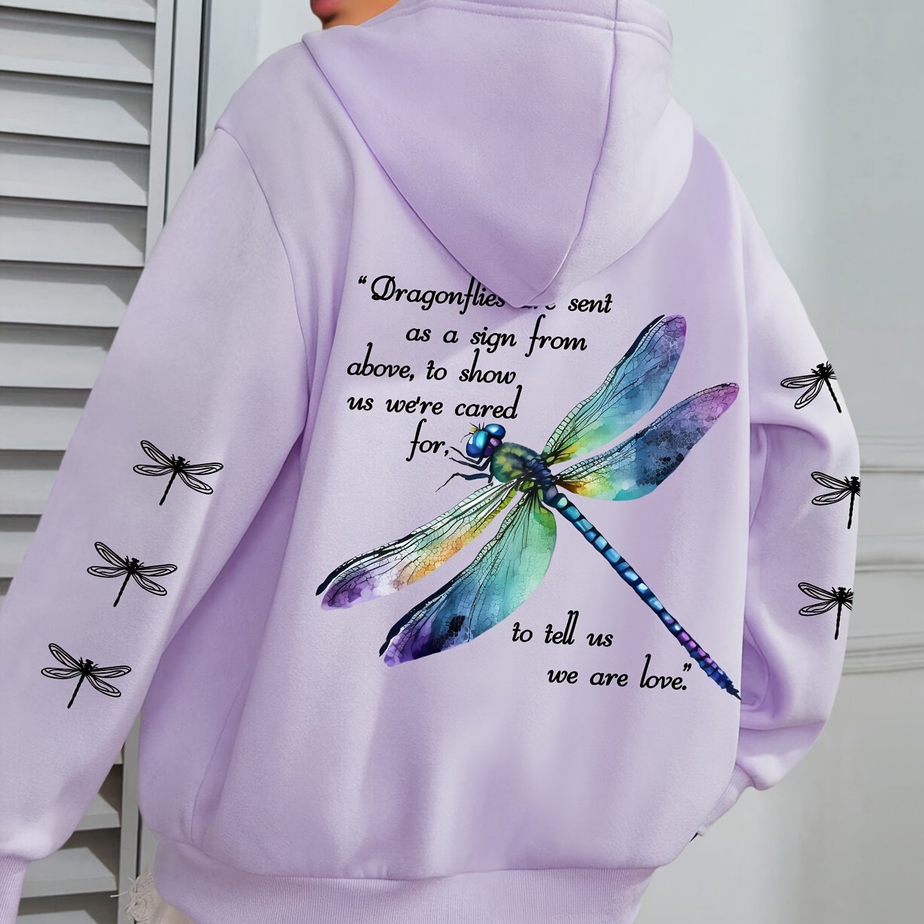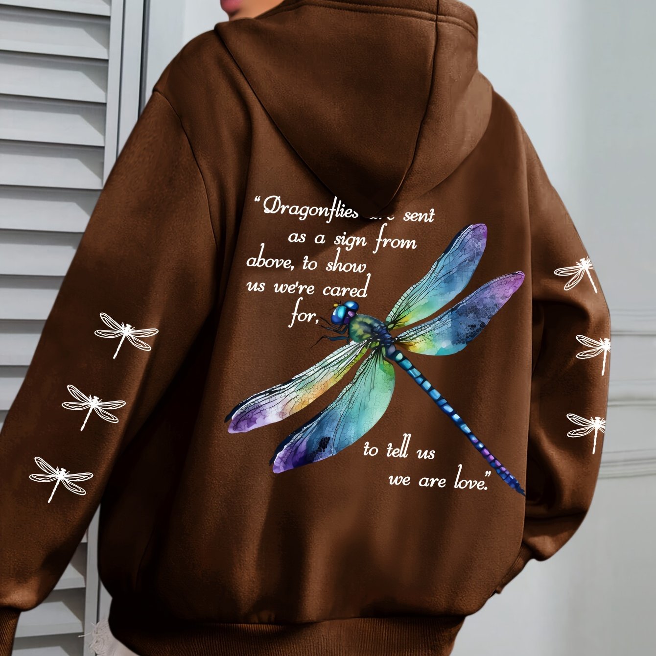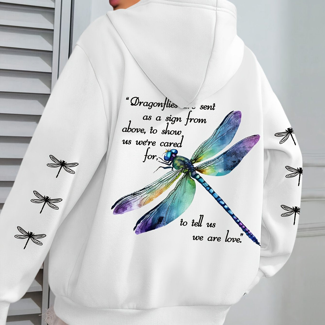 Толстовка с длинными рукавами для женщин больших размеров с принтом стрекозы, зелёная