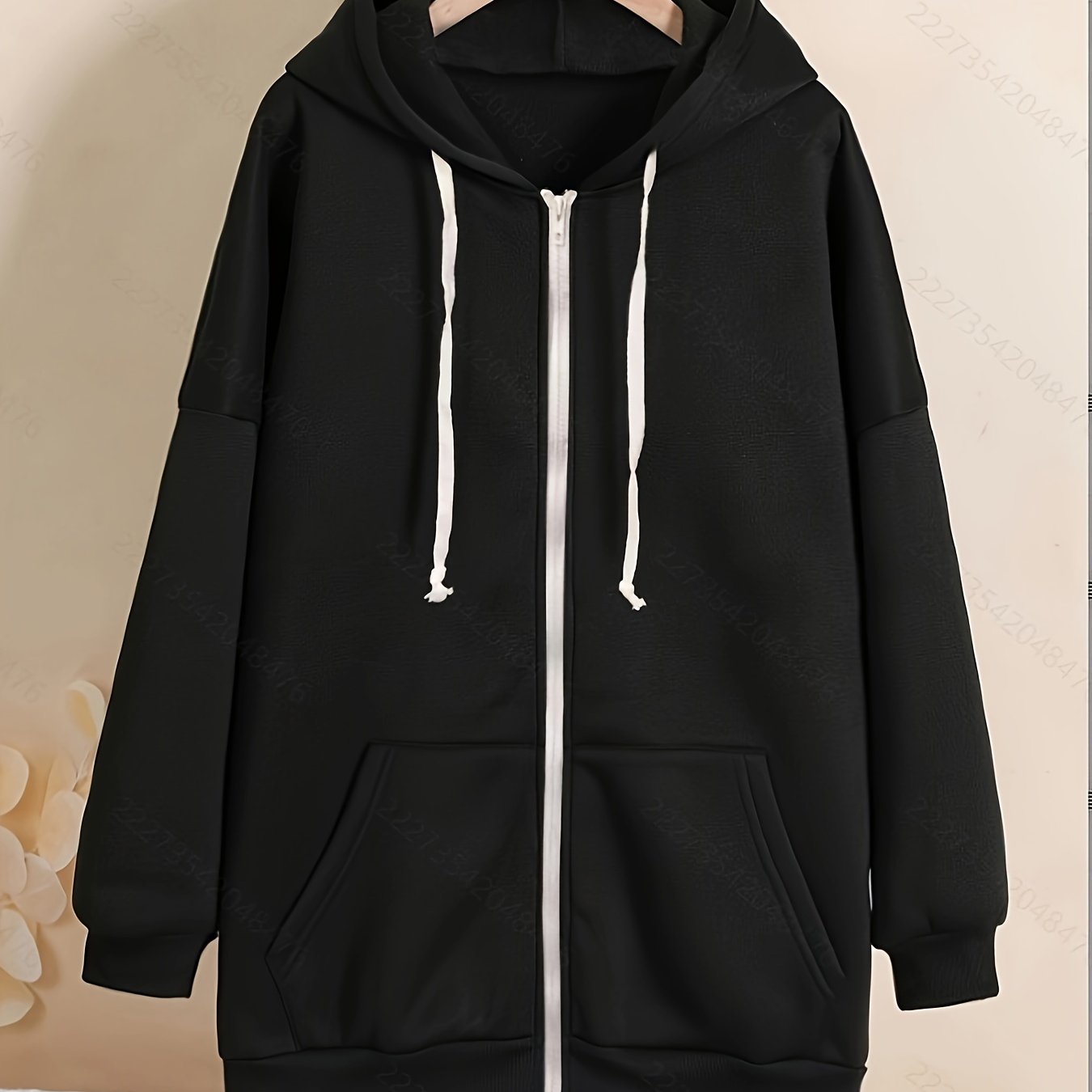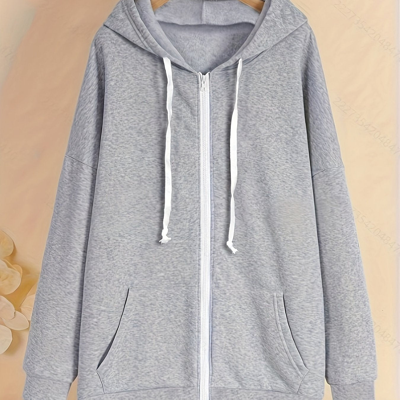 Толстовка женская с молнией и шнурком большого размера, длинные рукава, осень-зима, повседневная