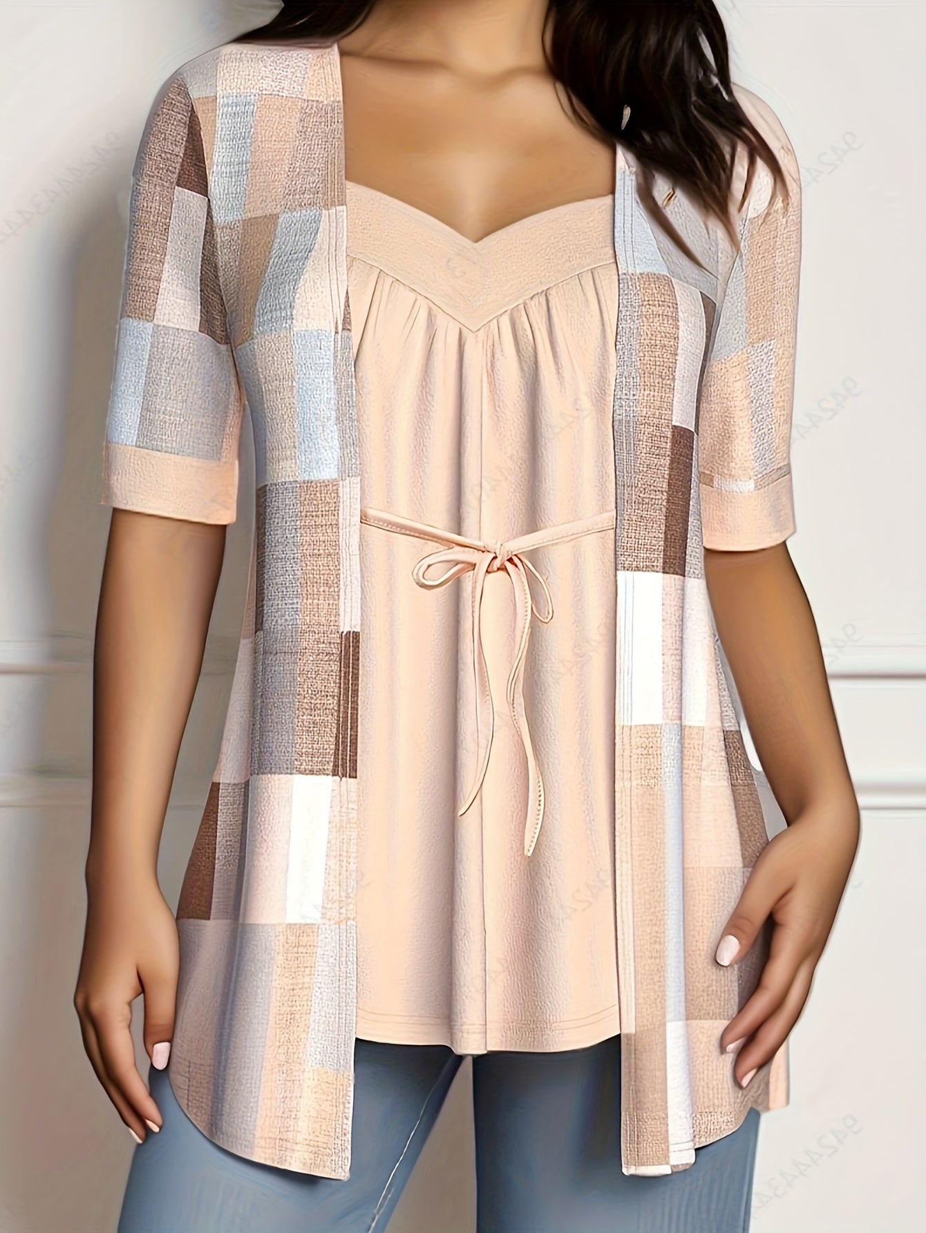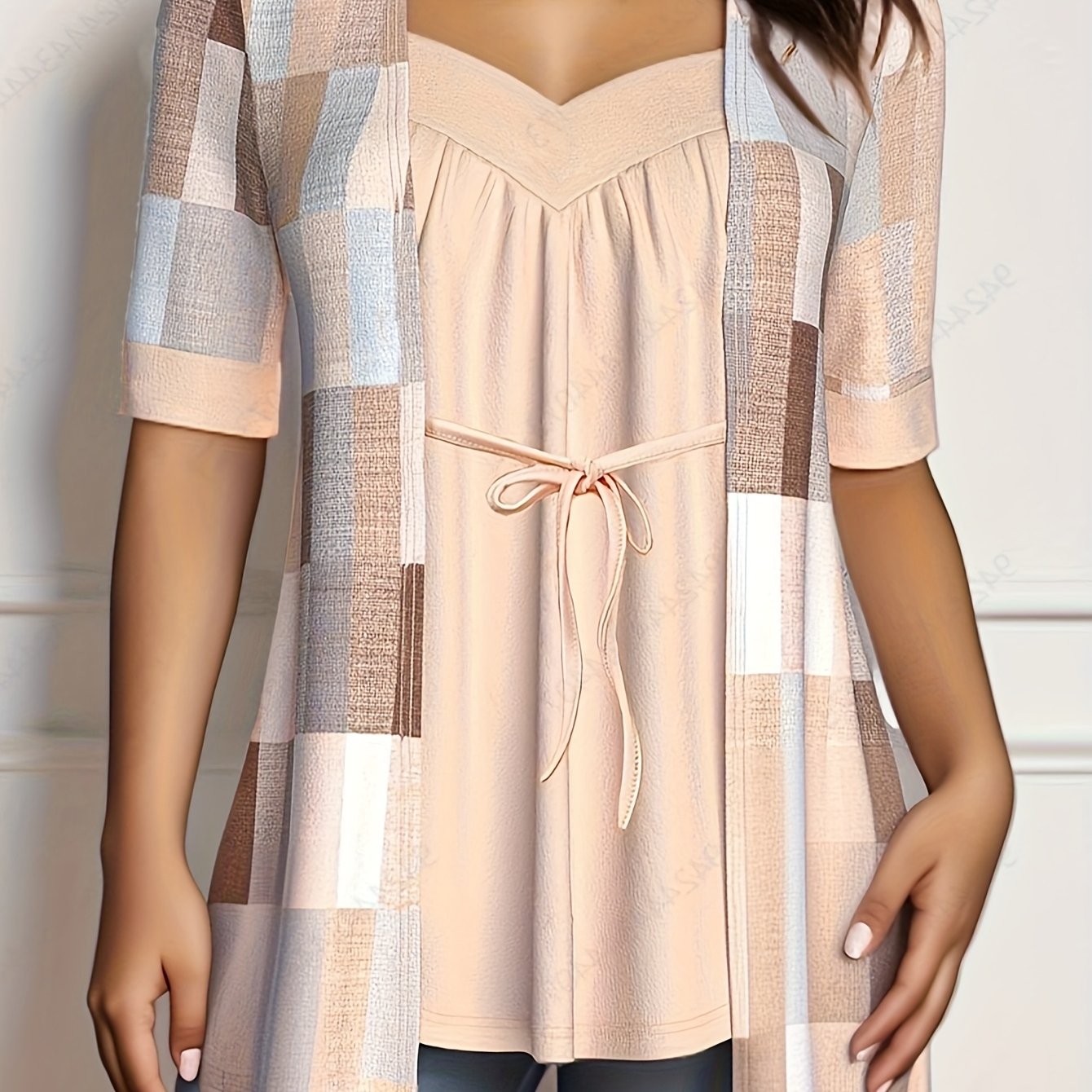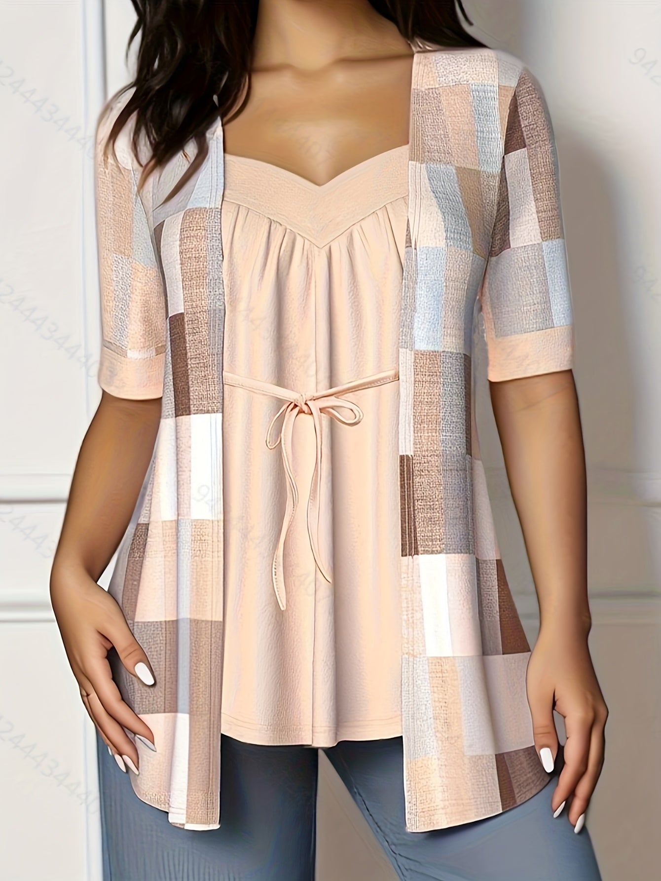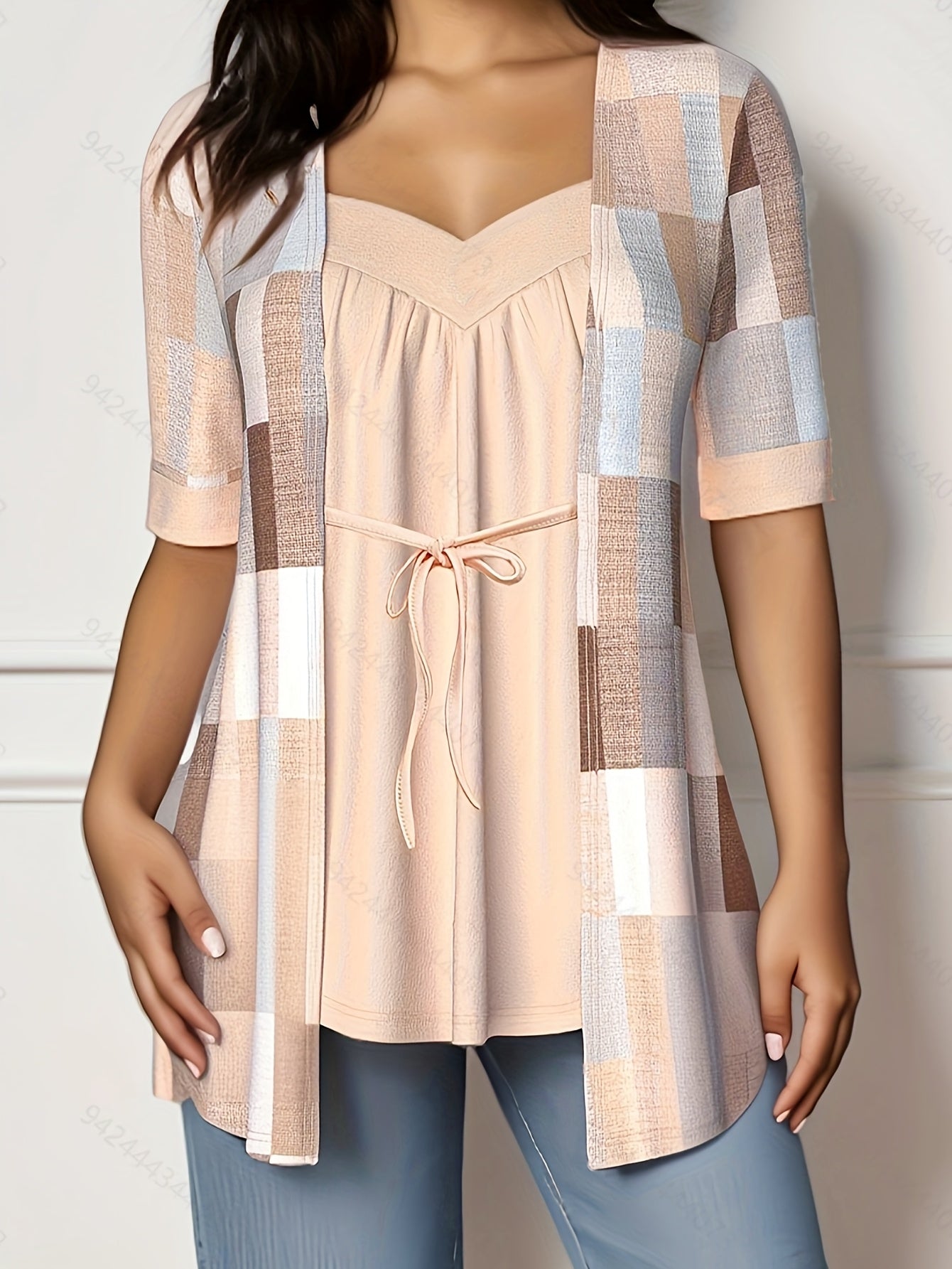 Кардиган женский в крупном размере из трикотажа с шнуровкой, геометрический принт, V-образный вырез, весна-осень