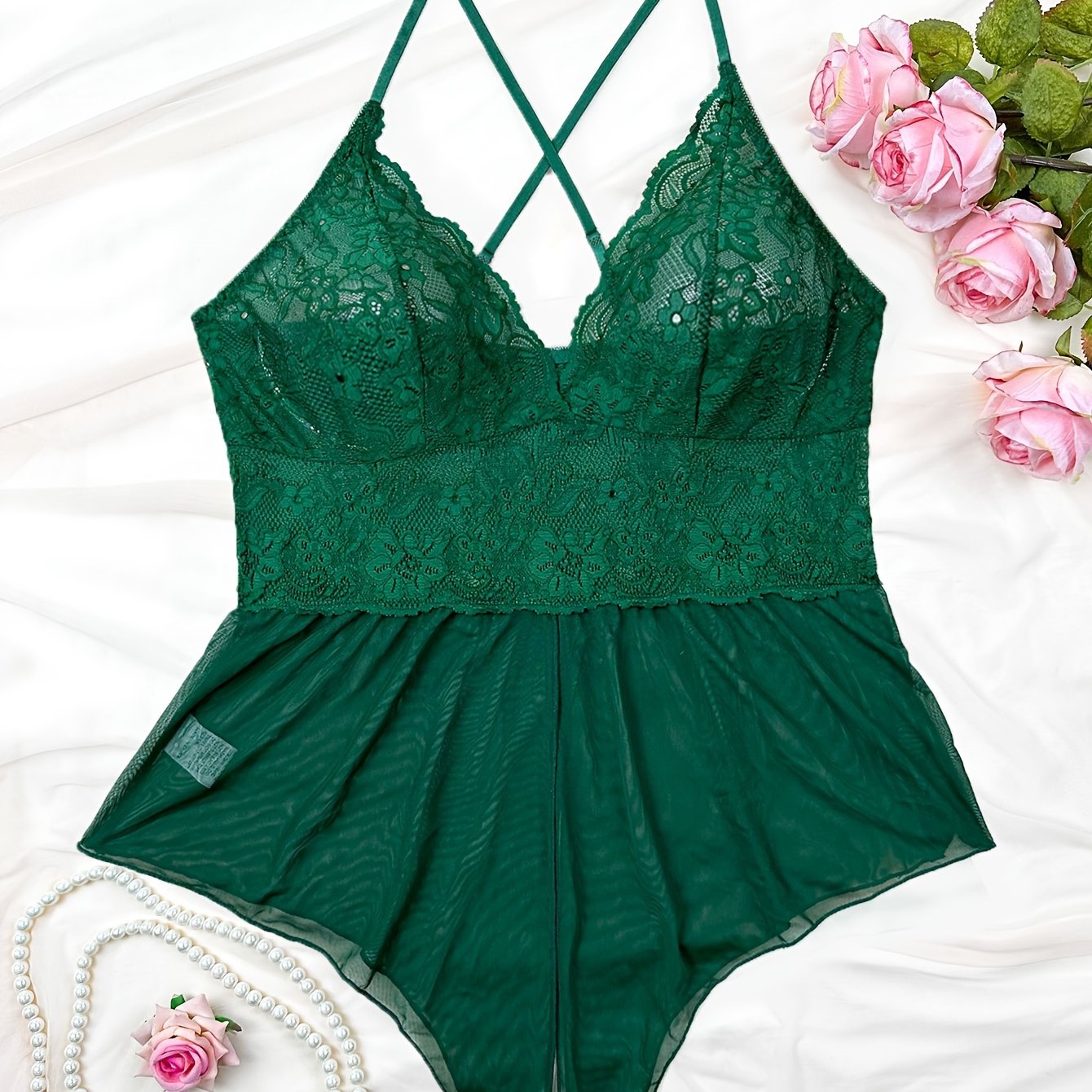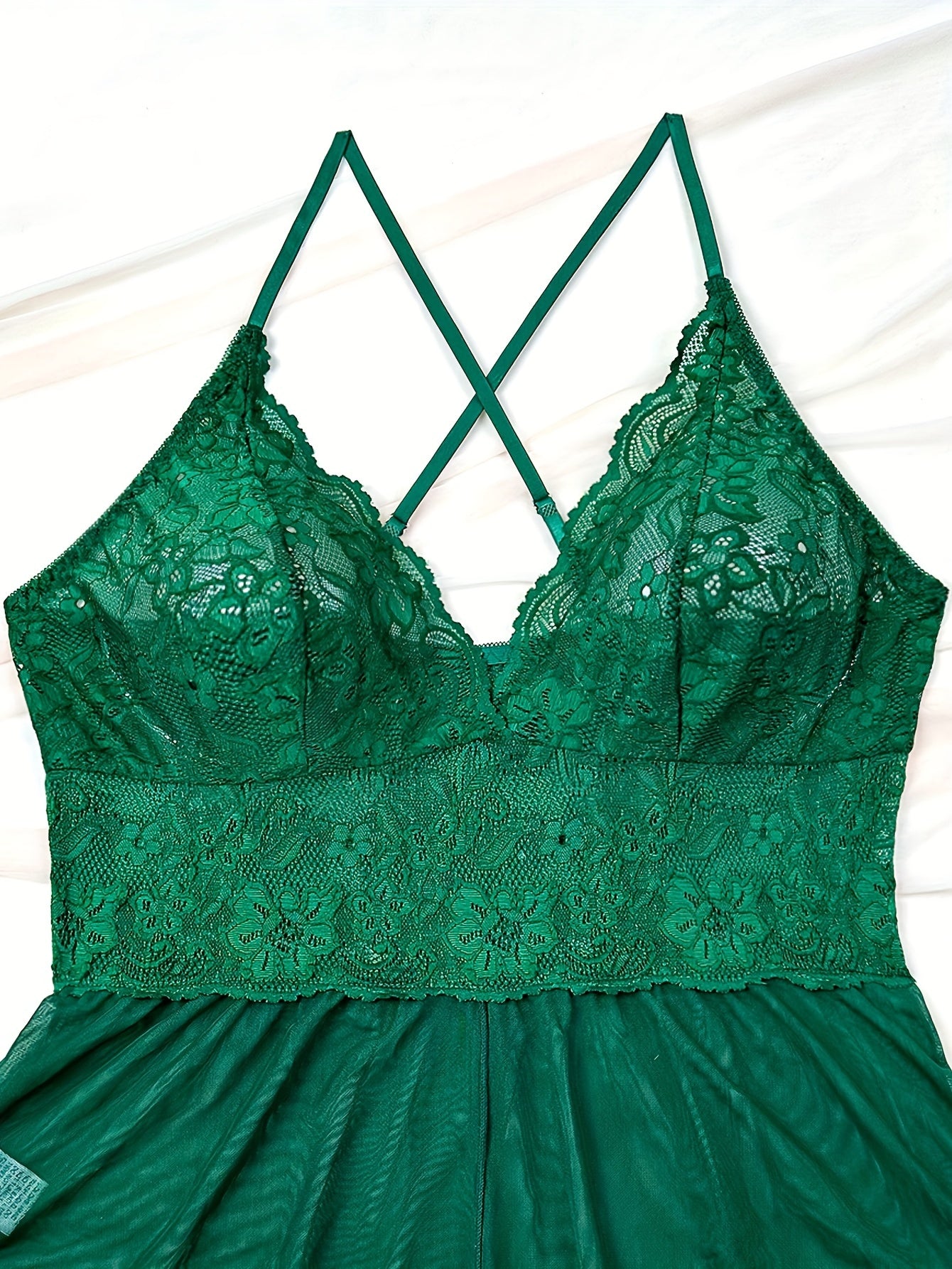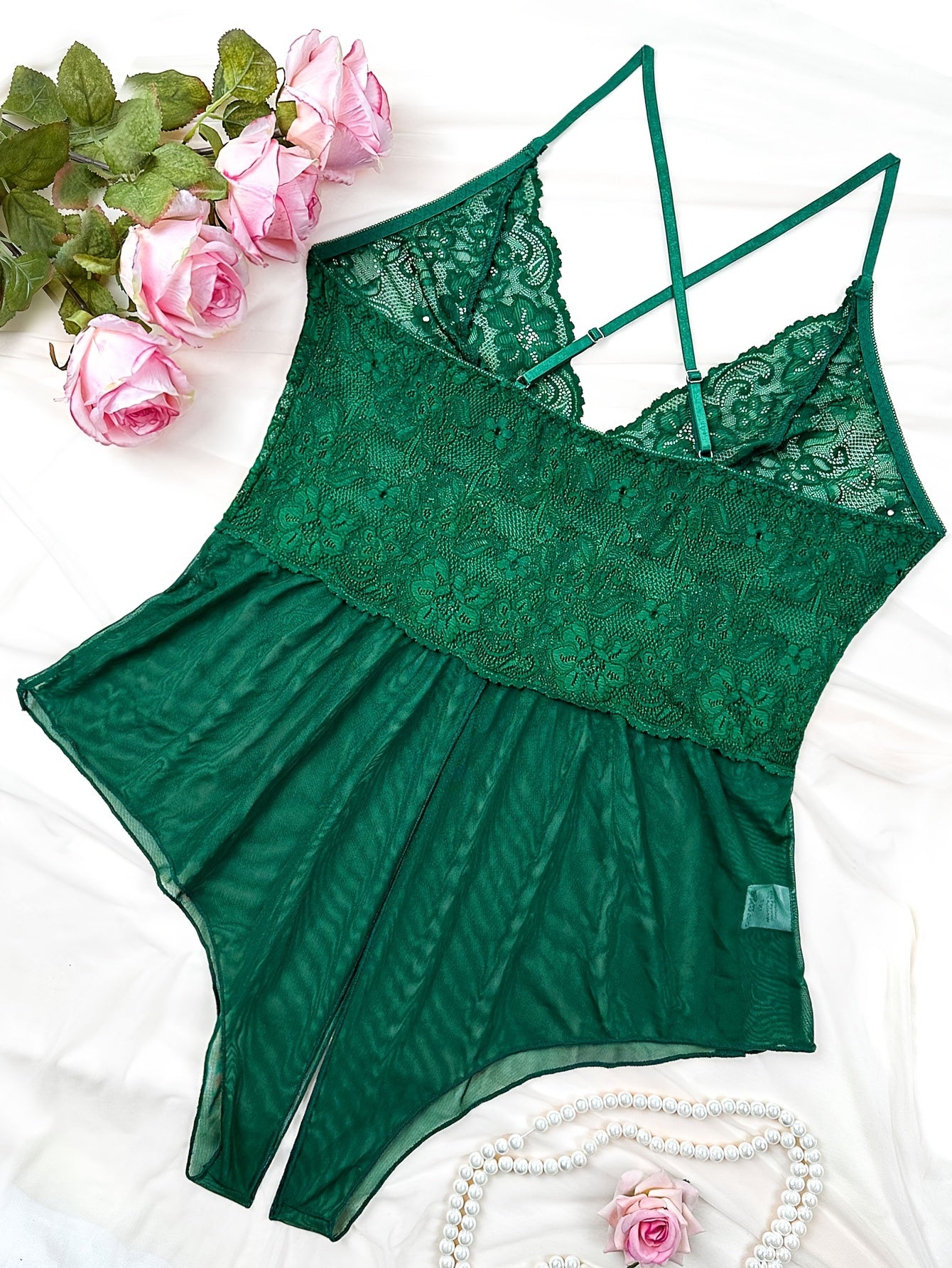 Купальник для женщин больших размеров из кружева и сетки, однотонный, изумрудно-зеленый, полупрозрачный, с регулируемыми бретелями