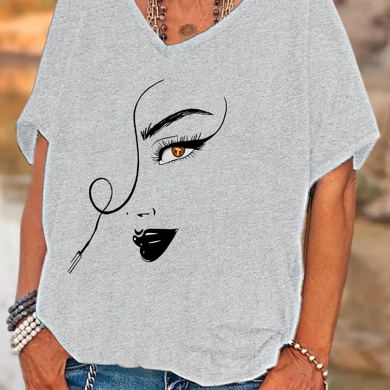 Туника для женщин больших размеров светло-серого цвета с V-образным вырезом и рукавами баттерфляй, повседневный стильный топ