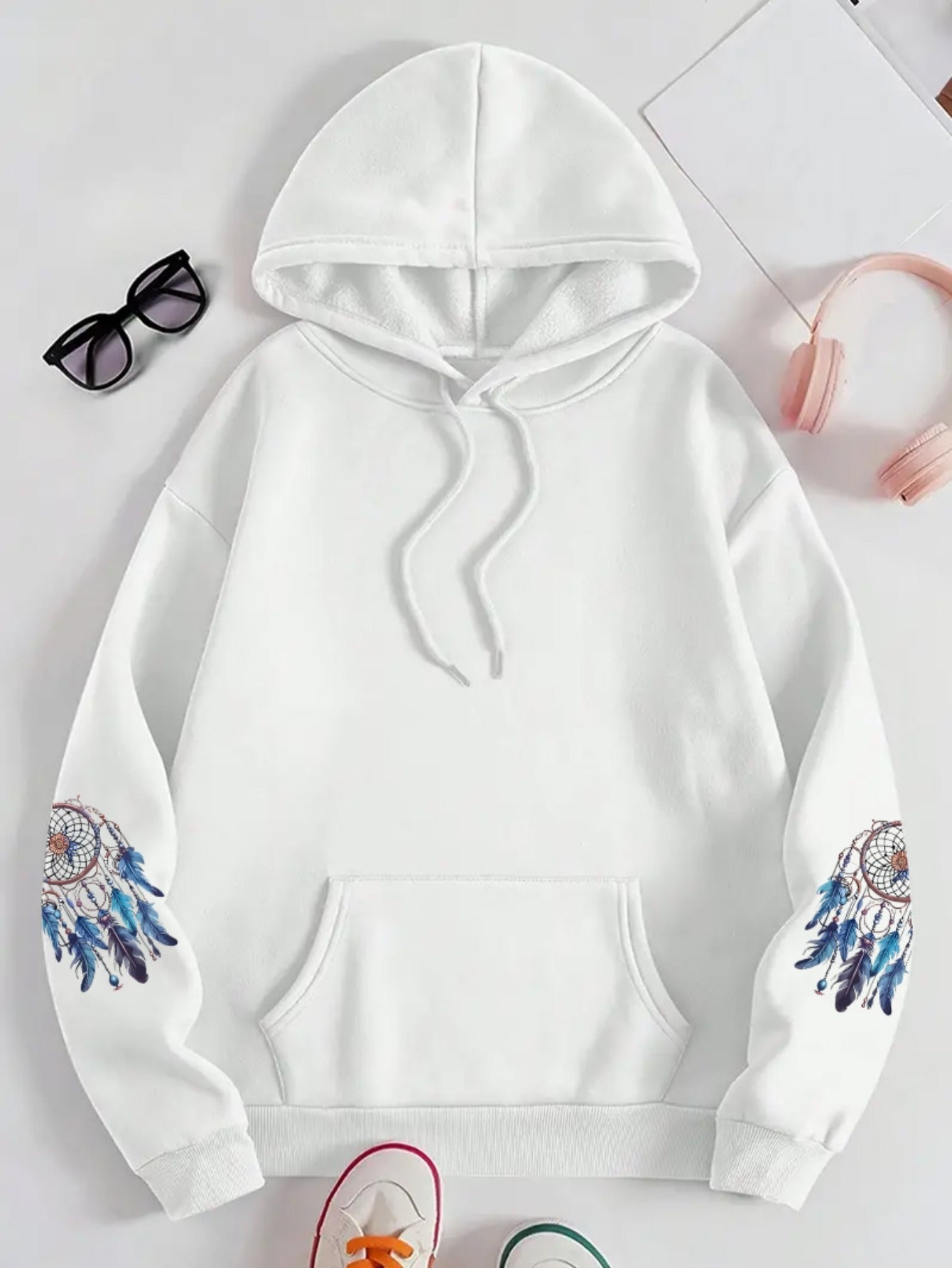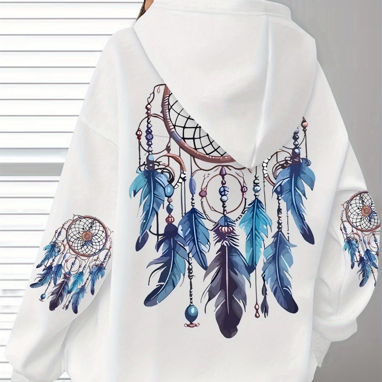 Толстовка с длинным рукавом для женщин больших размеров с принтом ловца снов и карманом кенгуру