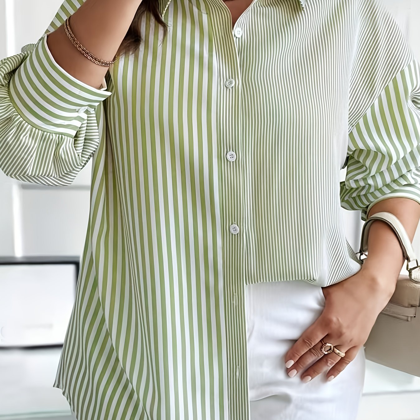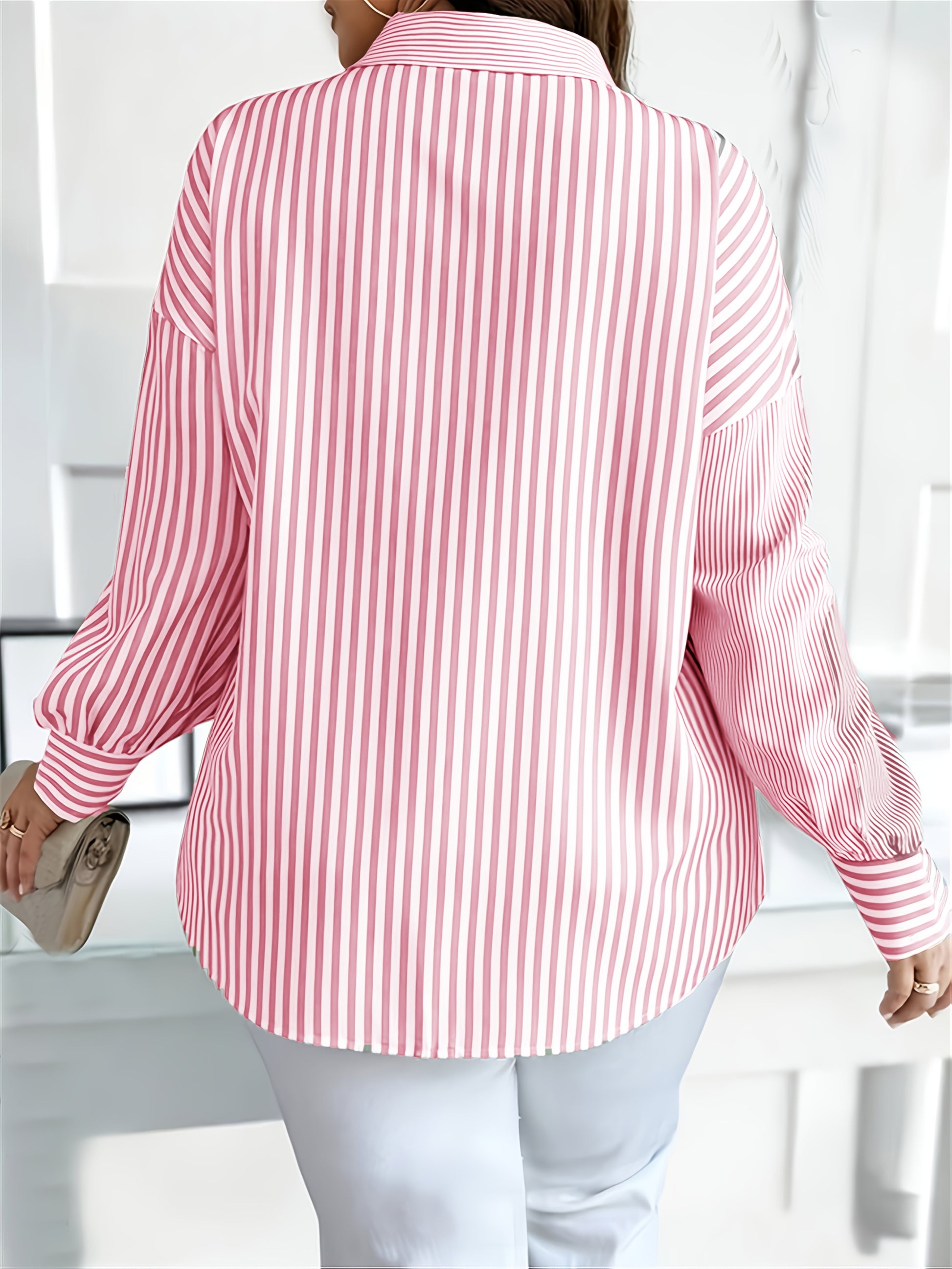 Блузка женская в крупном размере с длинными рукавами и полосками, повседневная офисная рабочая рубашка