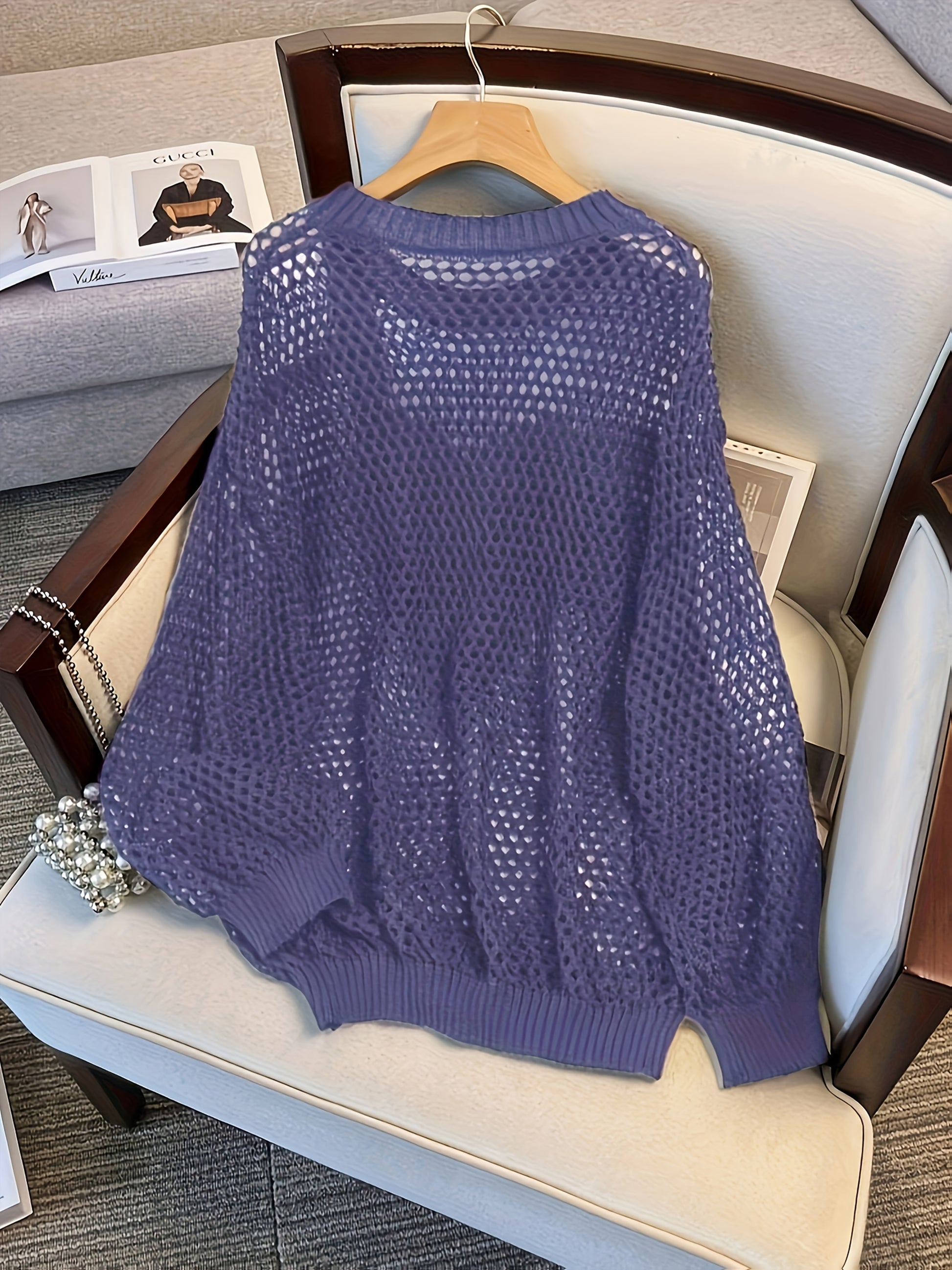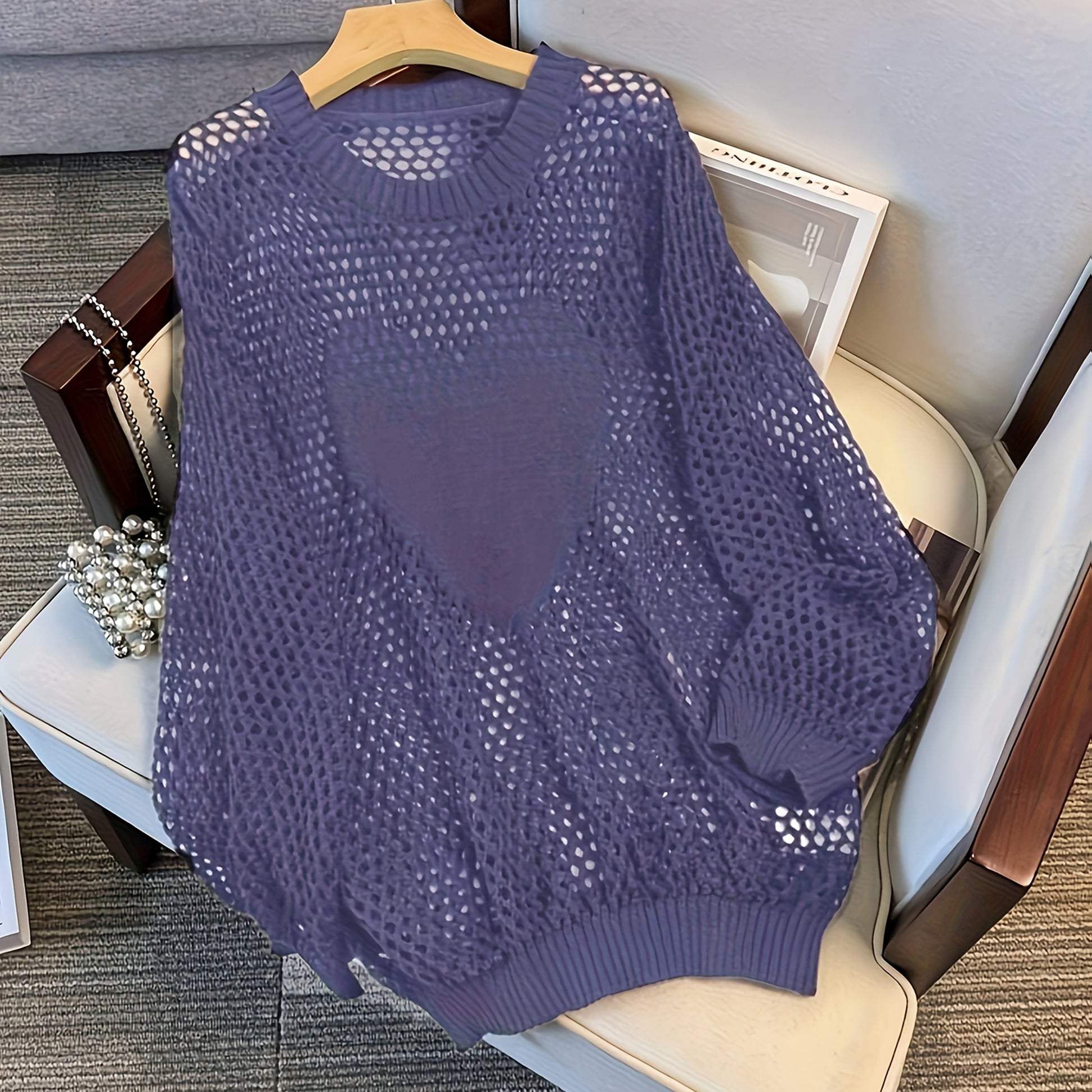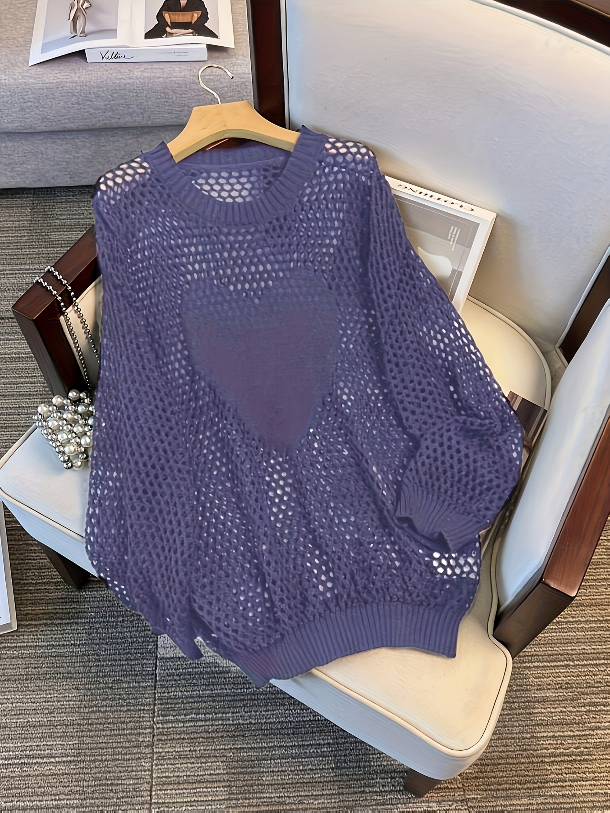 Женский свитер большого размера с длинными рукавами и вырезами в виде сердечек, дышащий повседневный топ