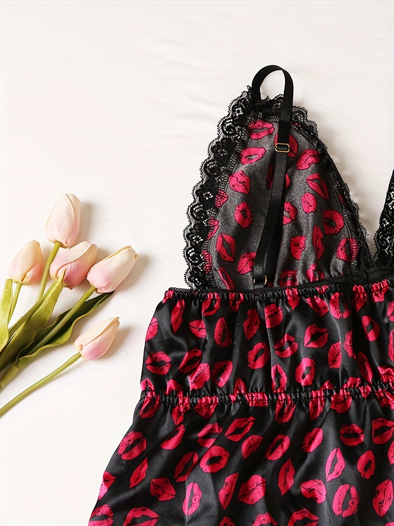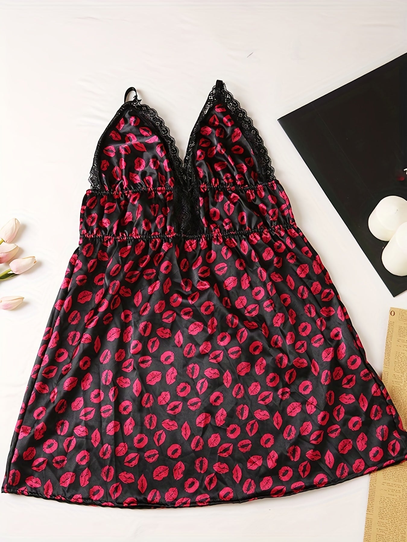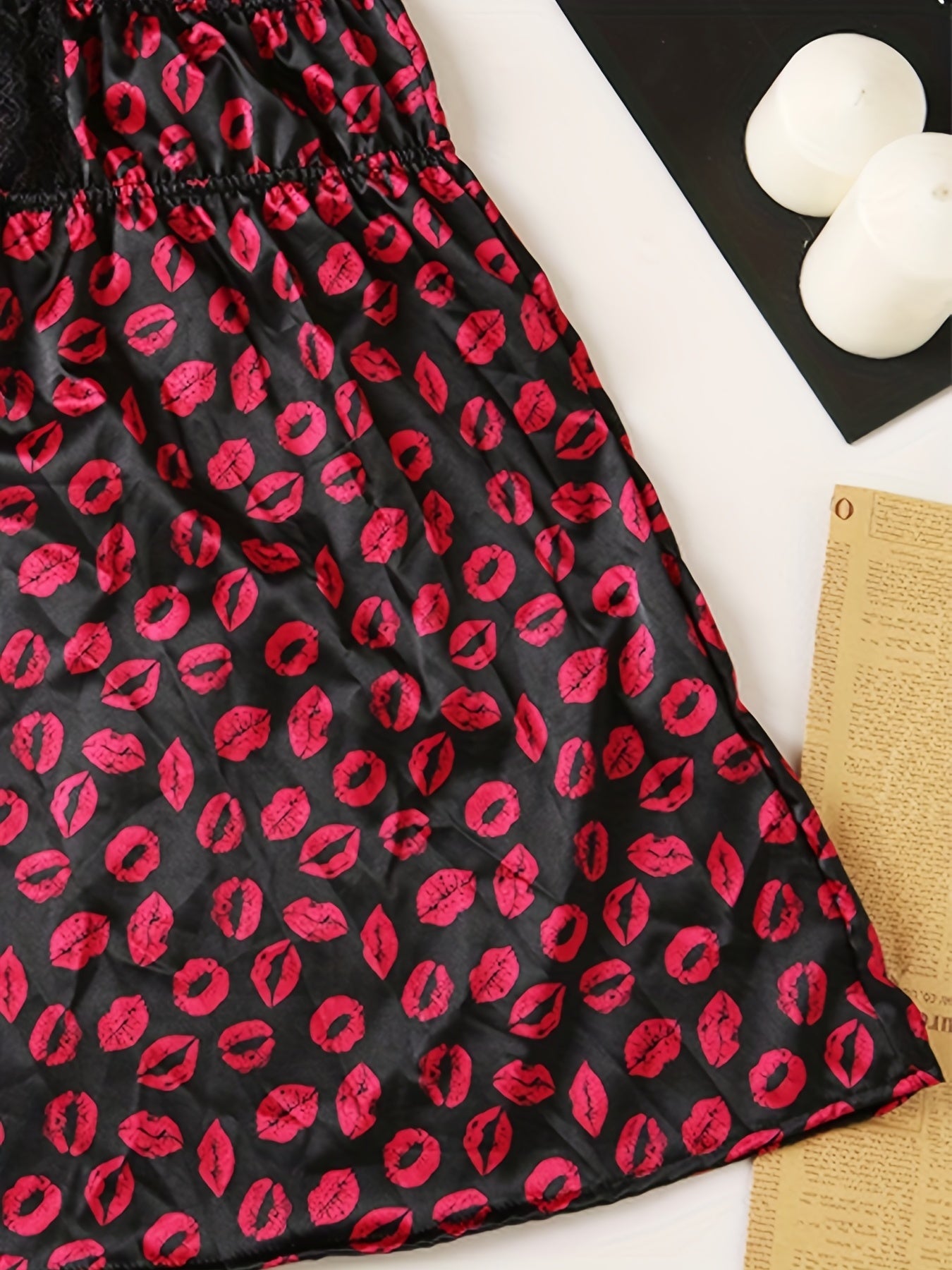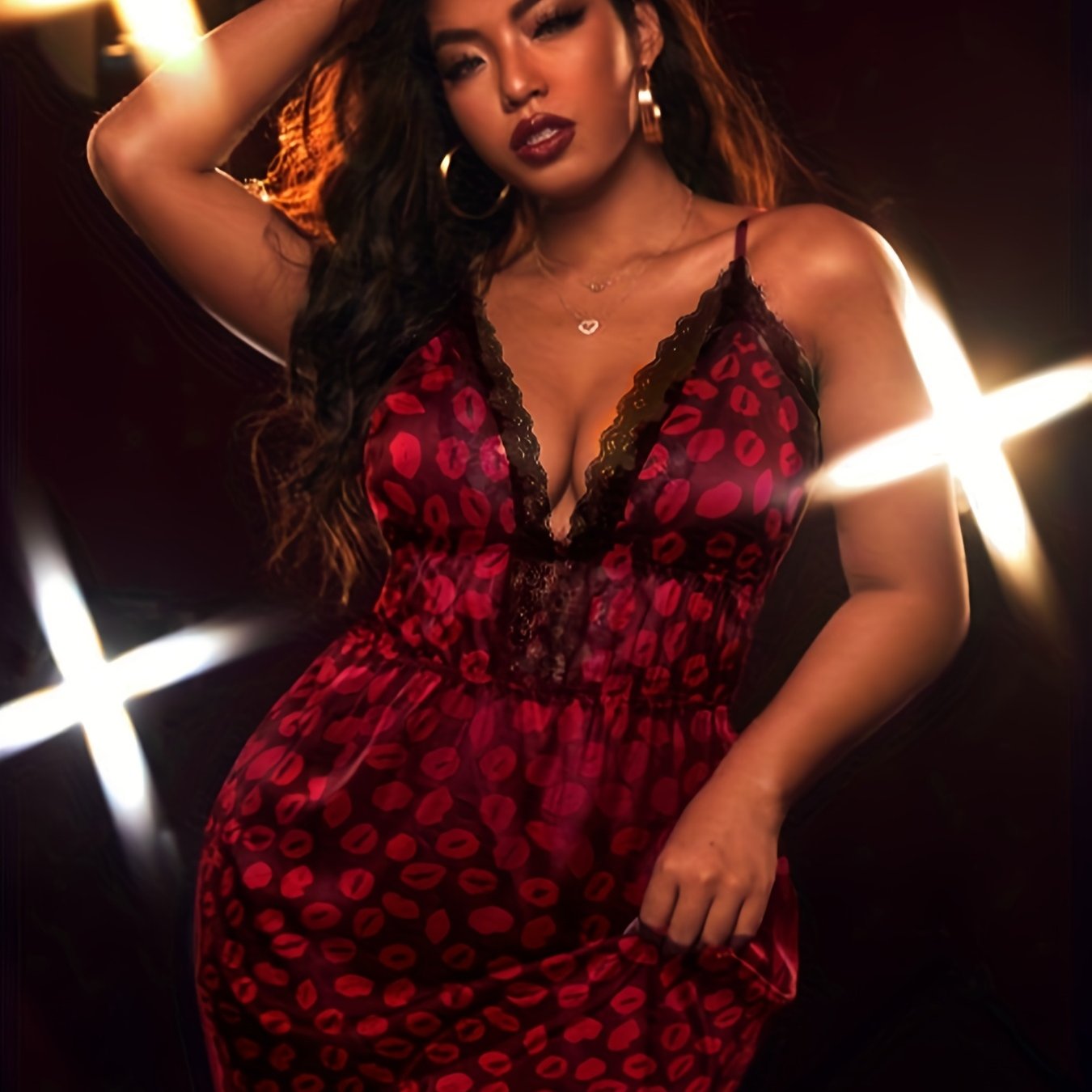Платье-комбинация для женщин больших размеров из сетки с принтом губ и асимметричным декором