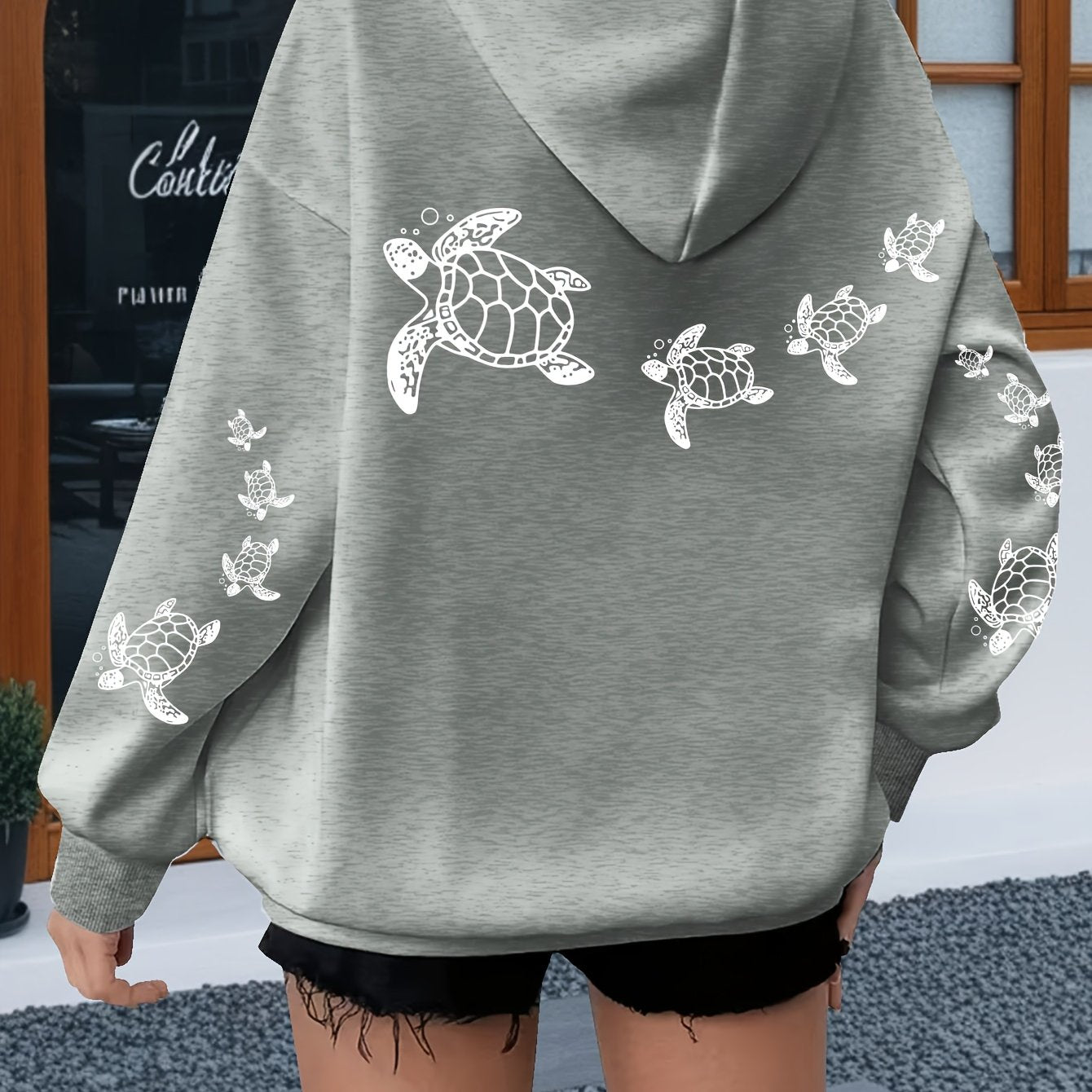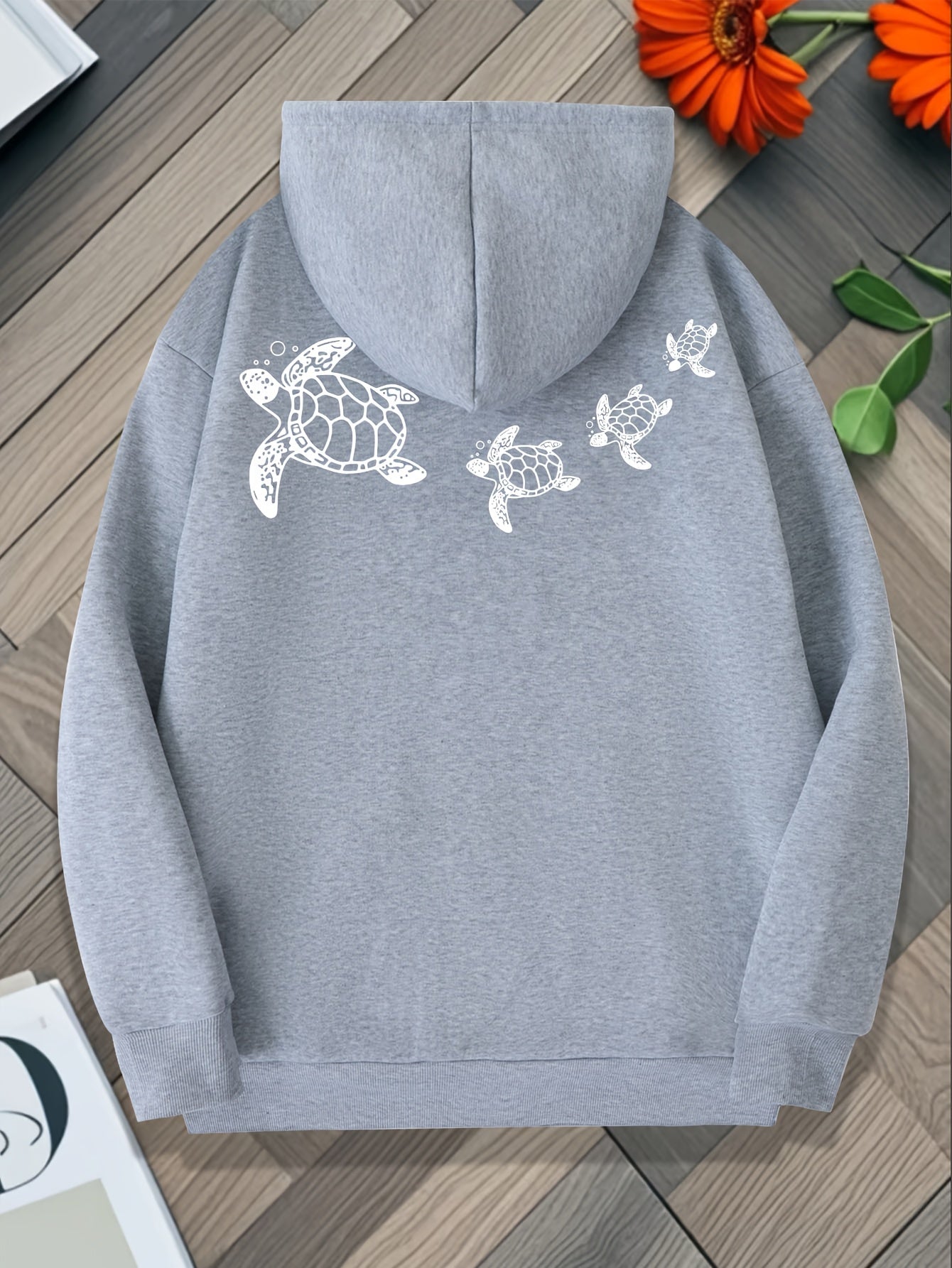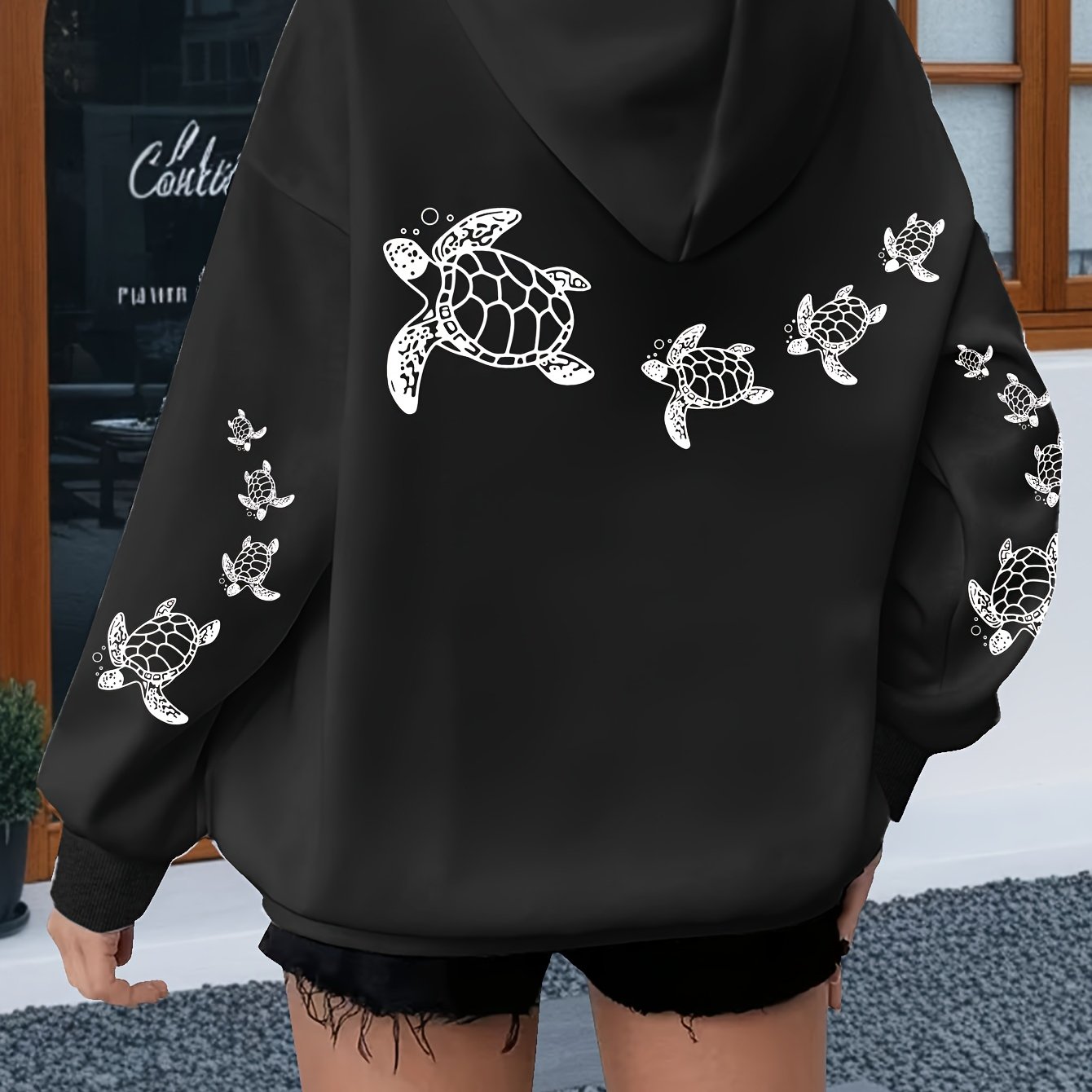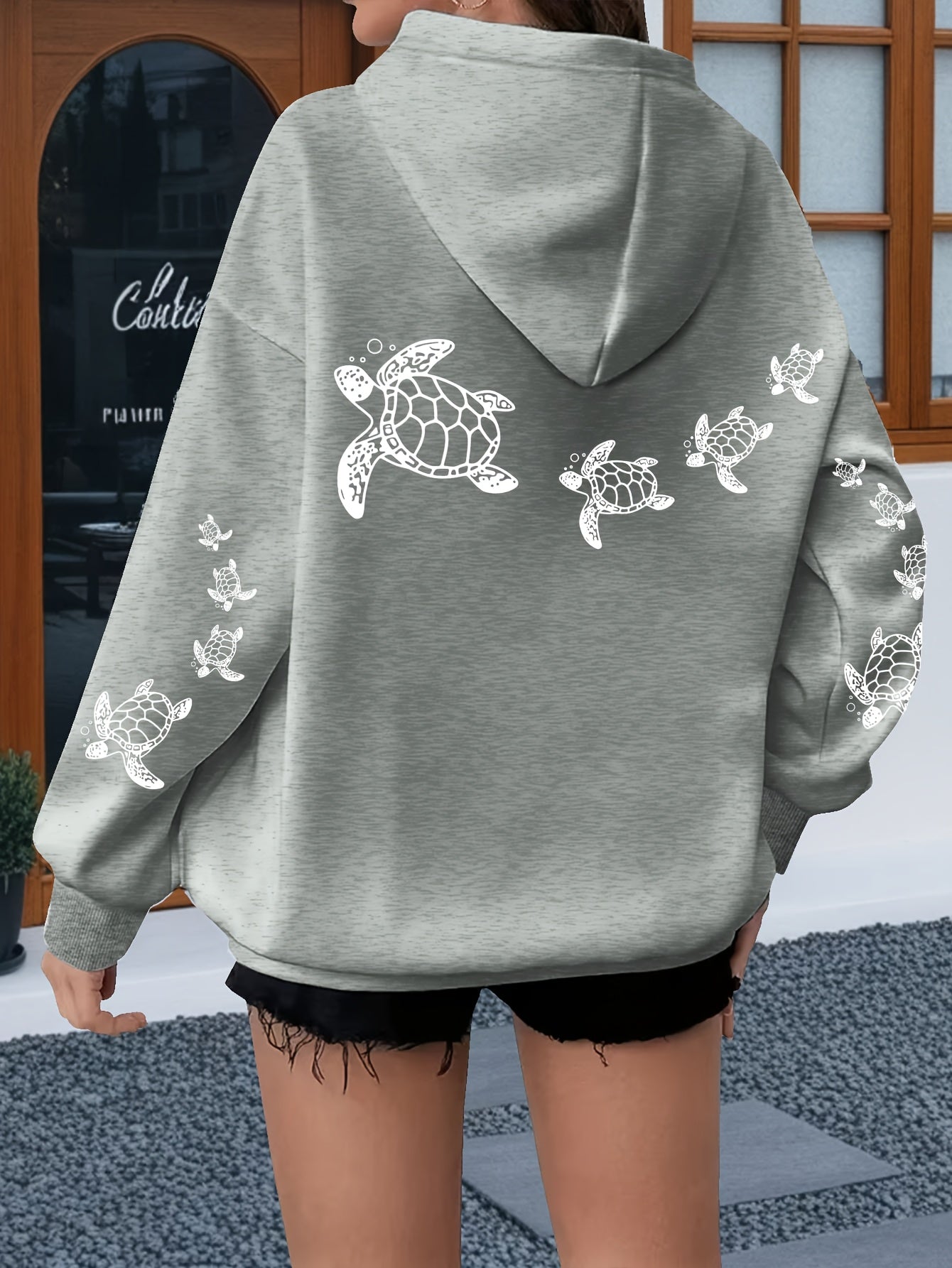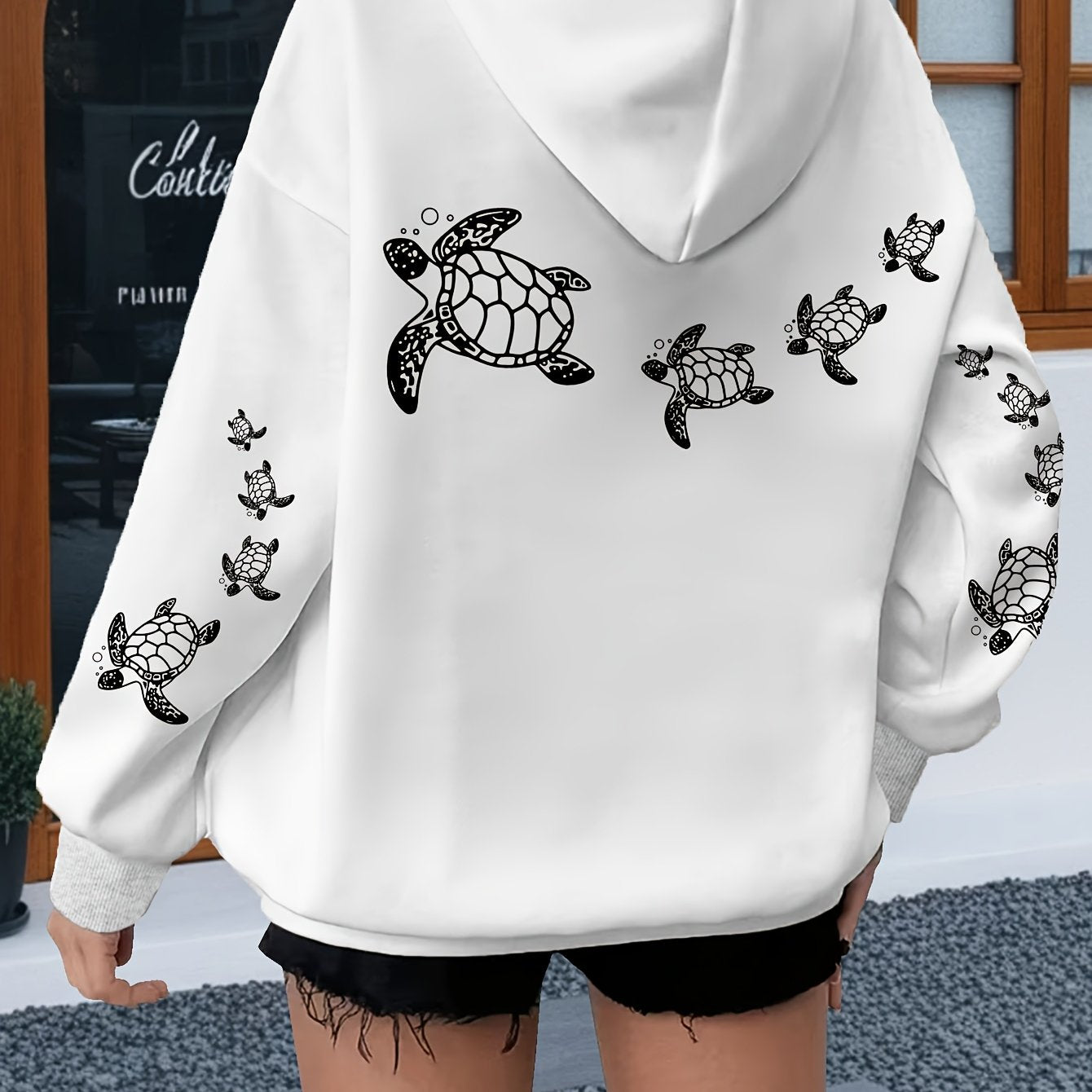 Толстовка оверсайз для женщин больших размеров с принтом морской черепахи, розовая и белая