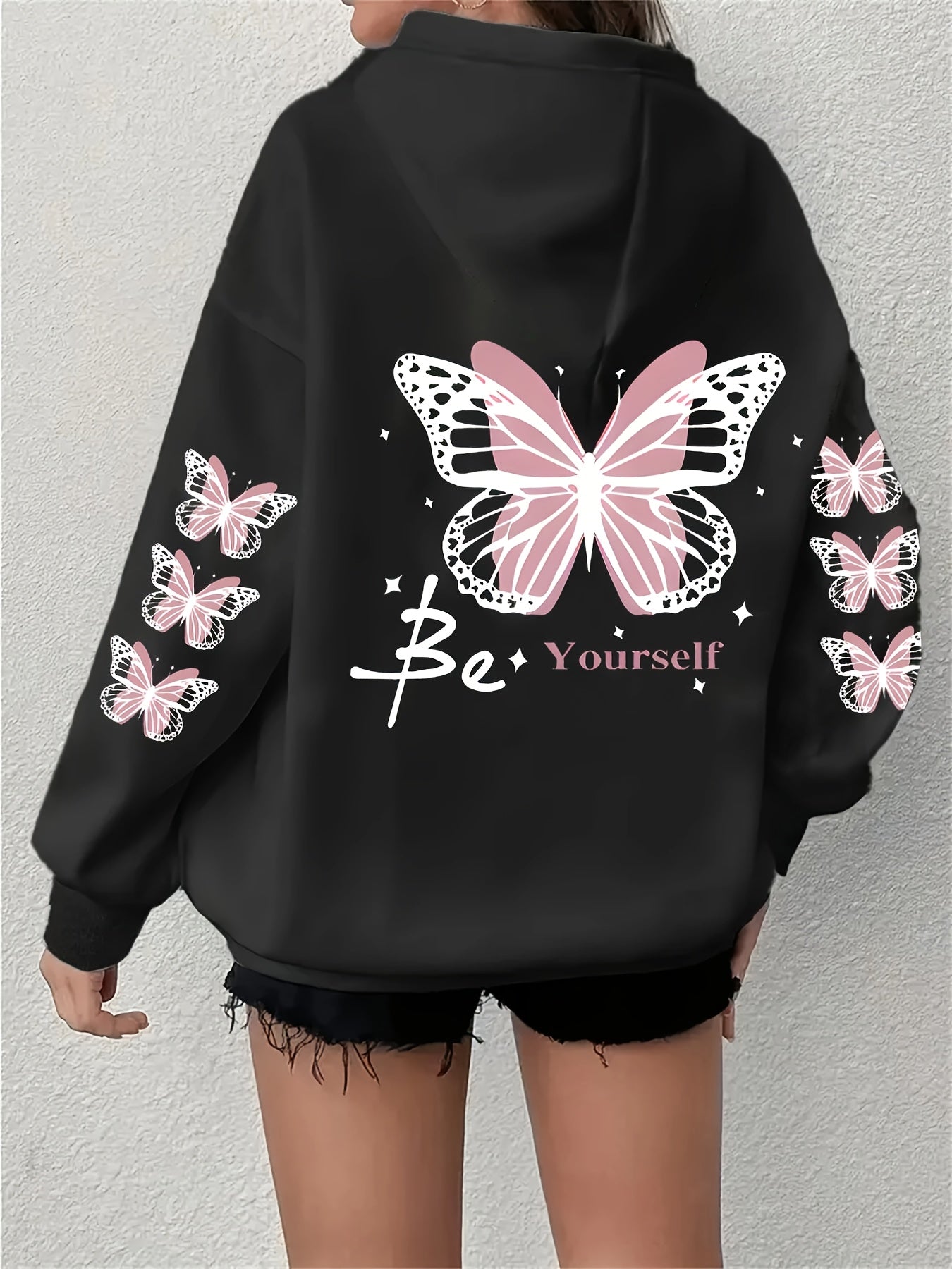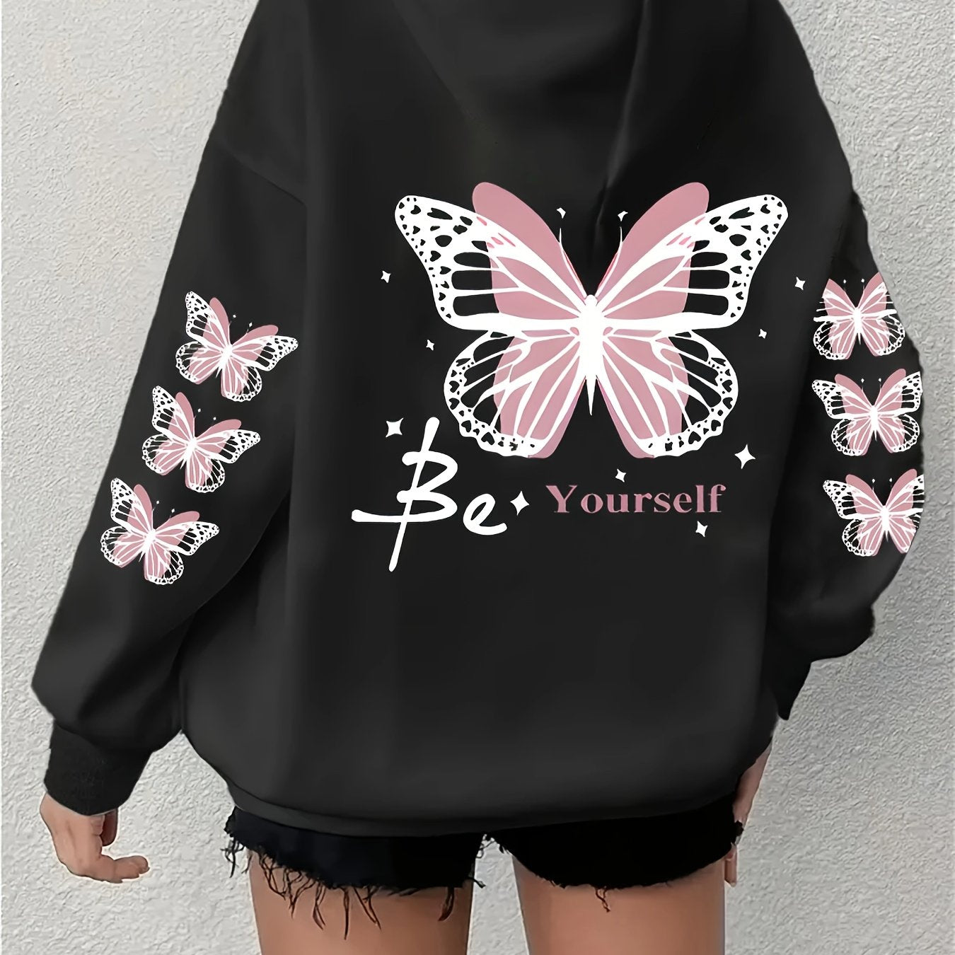 Толстовка оверсайз для женщин больших размеров розовая с графическим принтом и кенгуру-кишенью