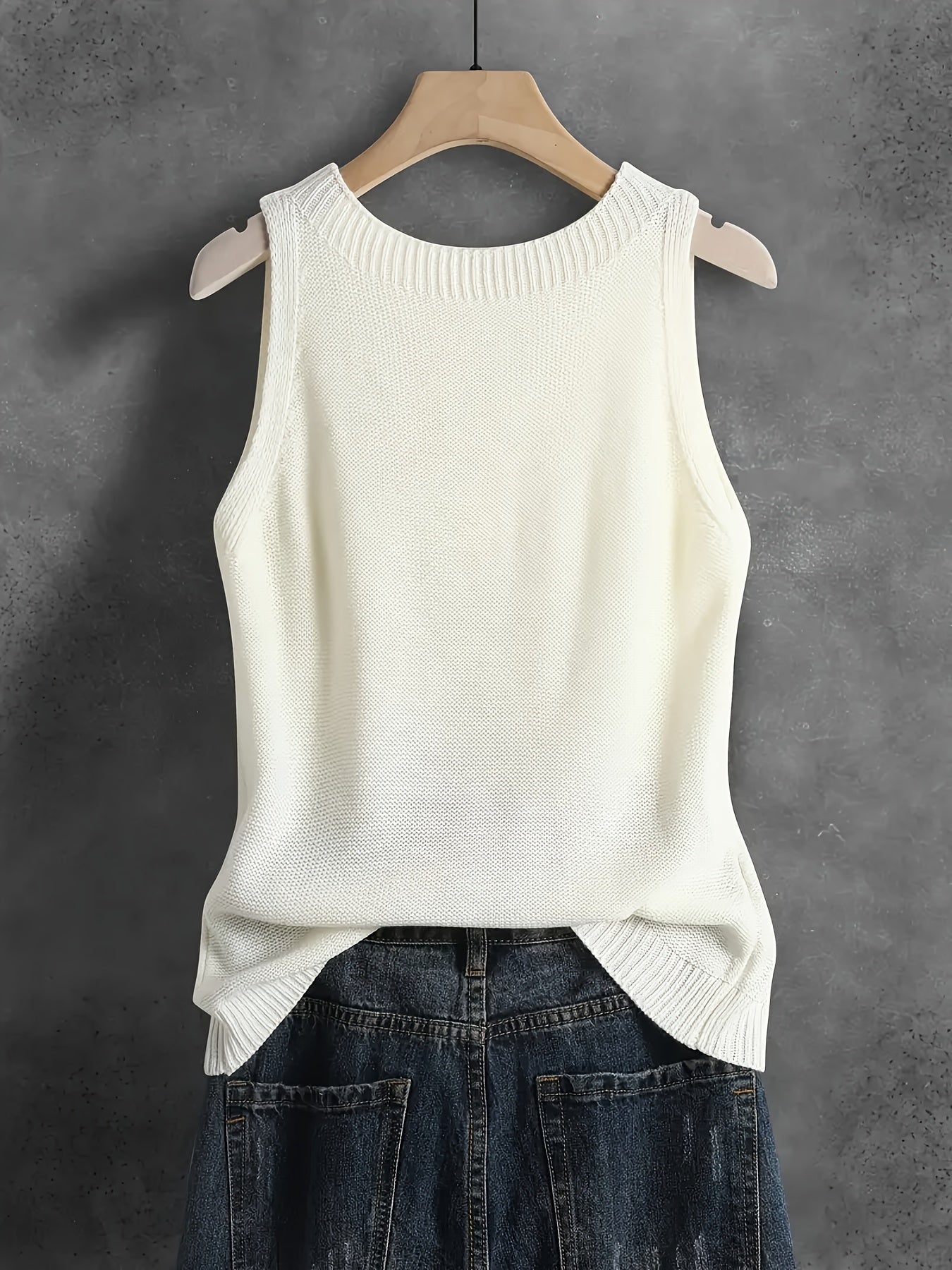Топ без рукавов для женщин больших размеров с ребристой текстурой, универсальная повседневная рубашка однотонного цвета