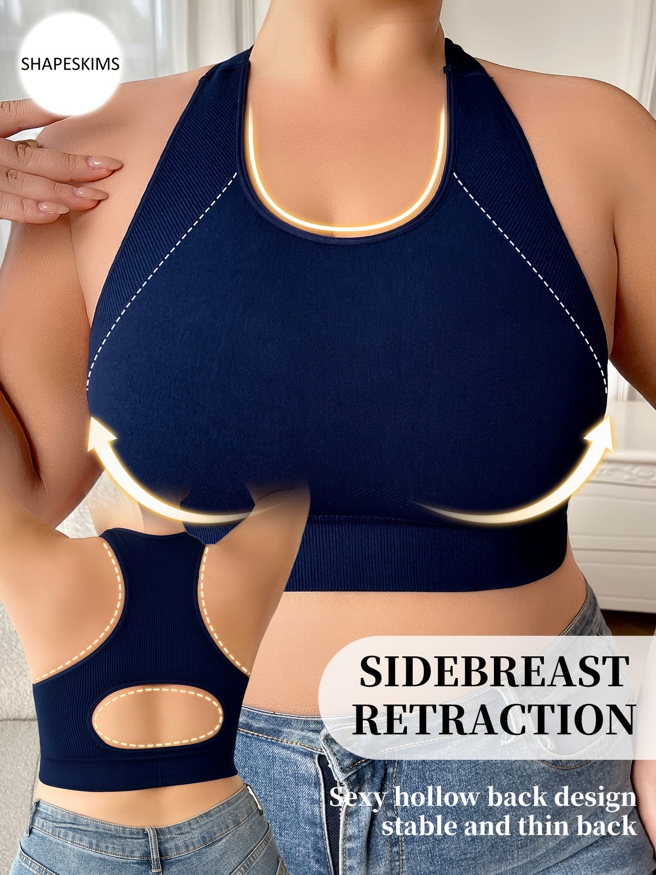 Бюстгальтер спортивный для женщин больших размеров безшовный дышащий с поддержкой осанки Navy Blue
