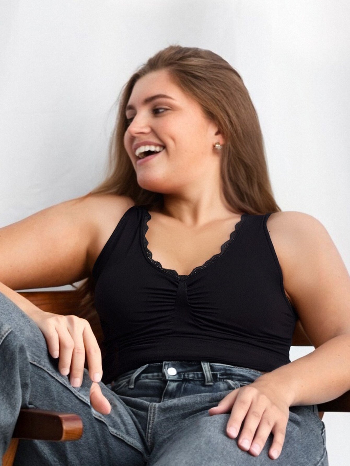 Бюстгальтер для женщин больших размеров бесшовный с высокой эластичностью для спорта, йоги и контроля живота, черный