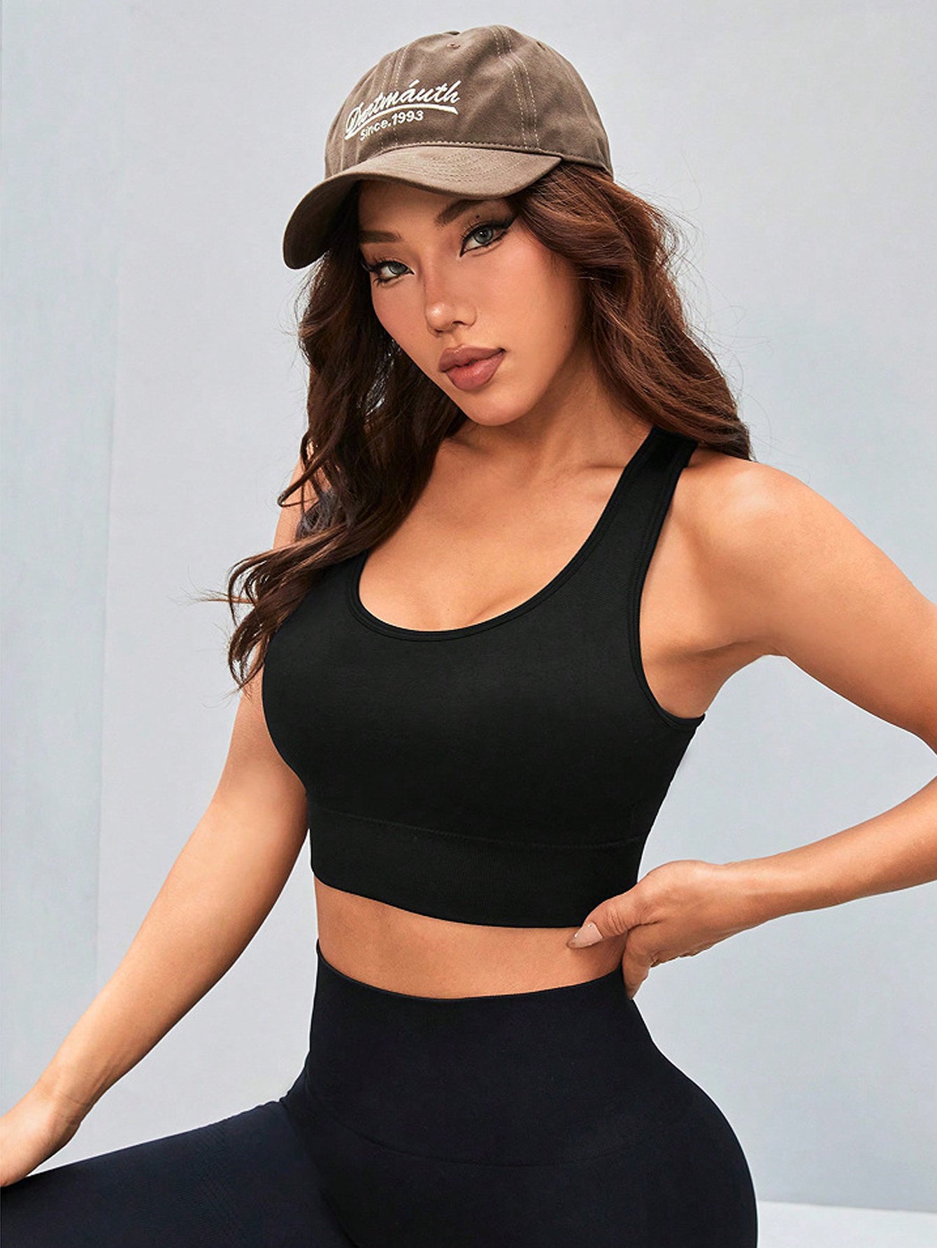 Бюстгальтер для женщин больших размеров без швов, черный, с реглан-спинкой, поддерживающий, для тренировок, повседневный
