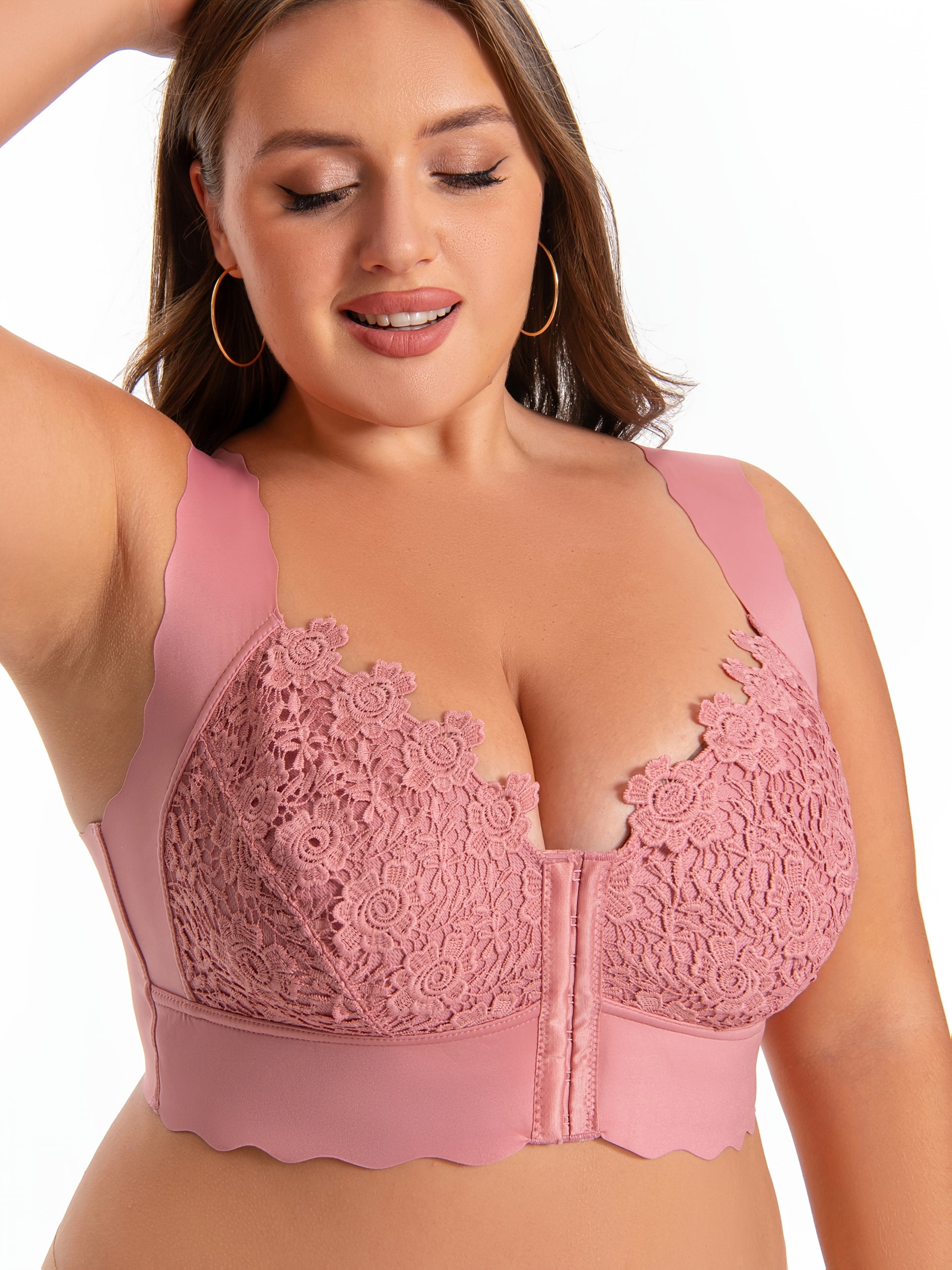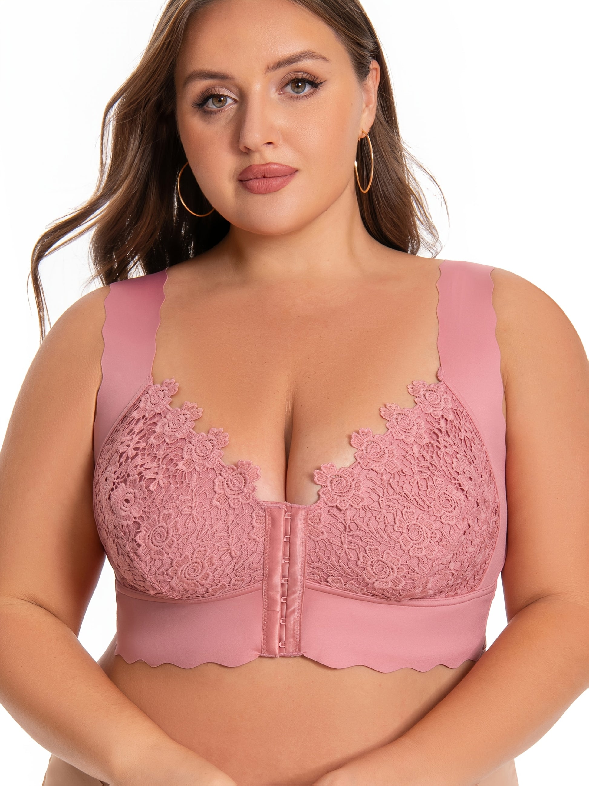 Бюстгальтер без швов для полных женщин с беспроводной поддержкой и эффектом пуш-ап с водорастворимым цветочным принтом