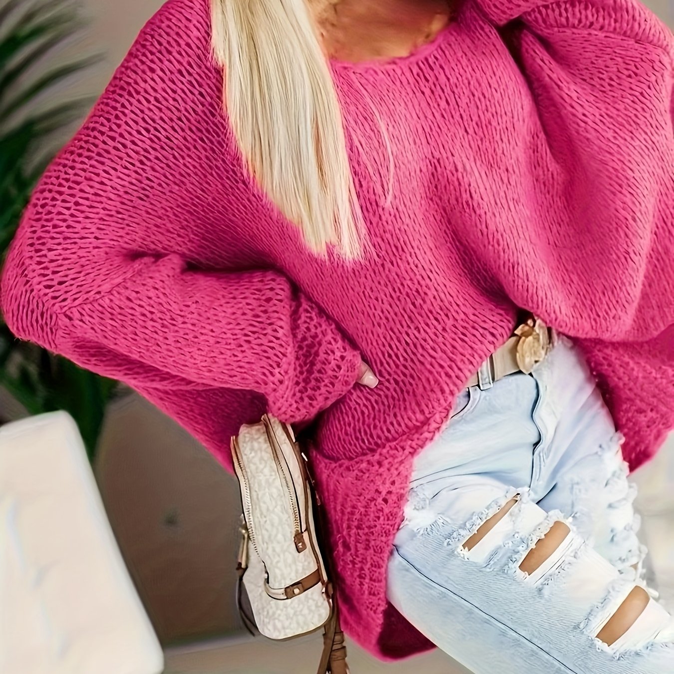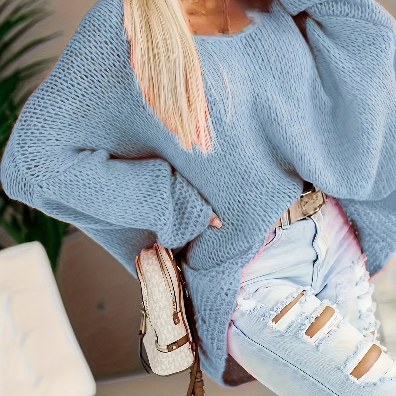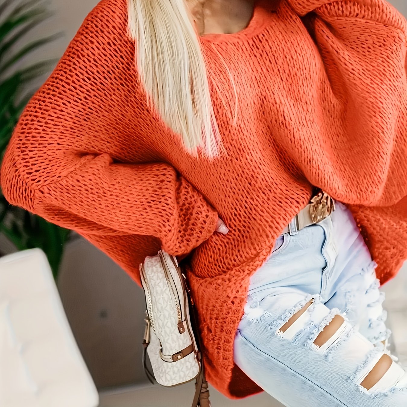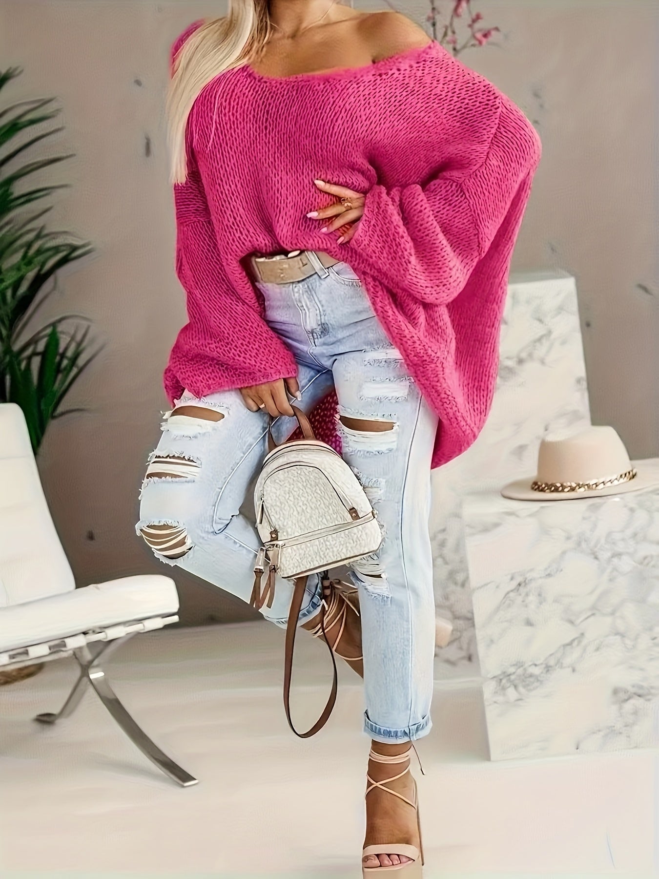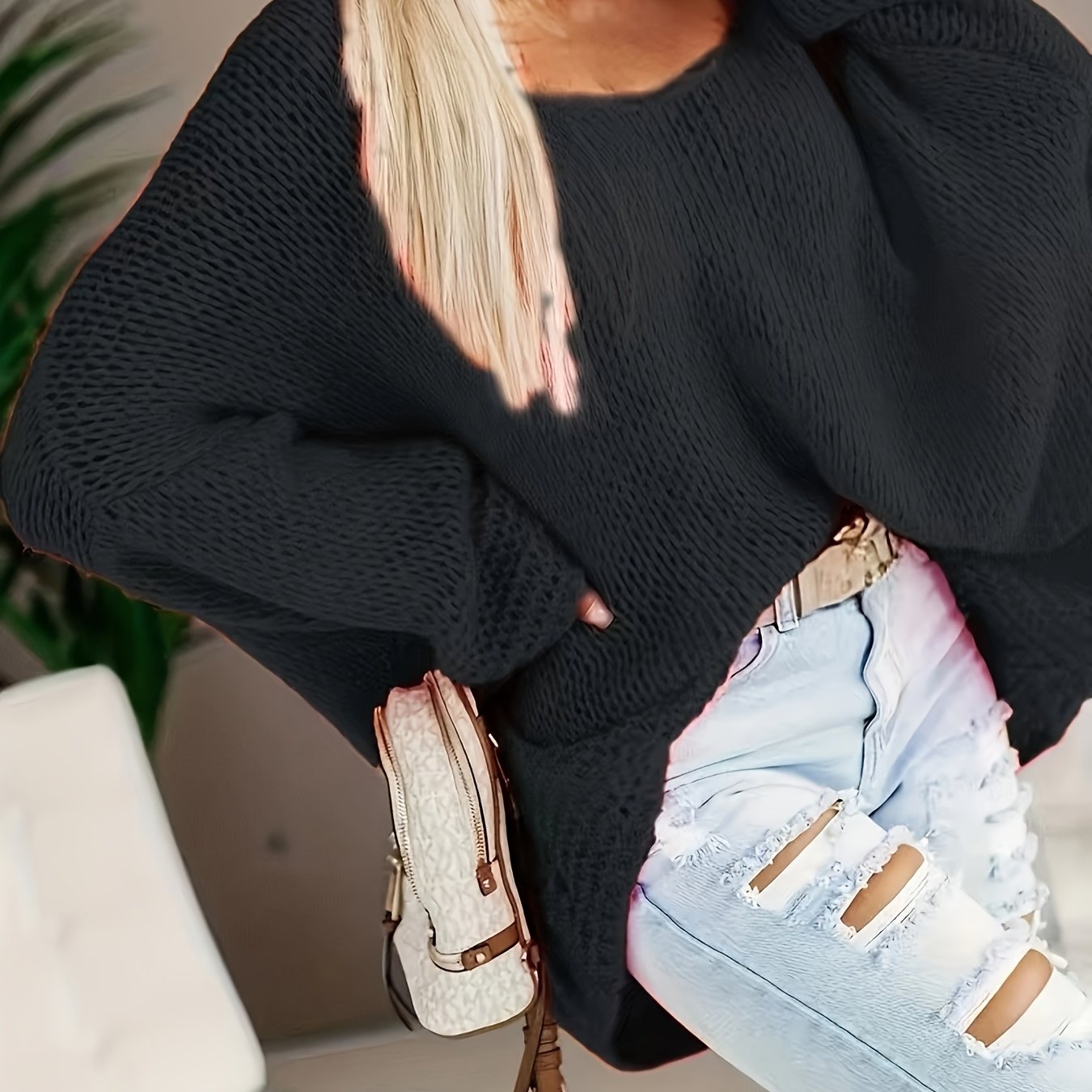 Женский свитер большого размера с V-образным вырезом и открытыми плечами, текстурированный пуловер для осени и зимы