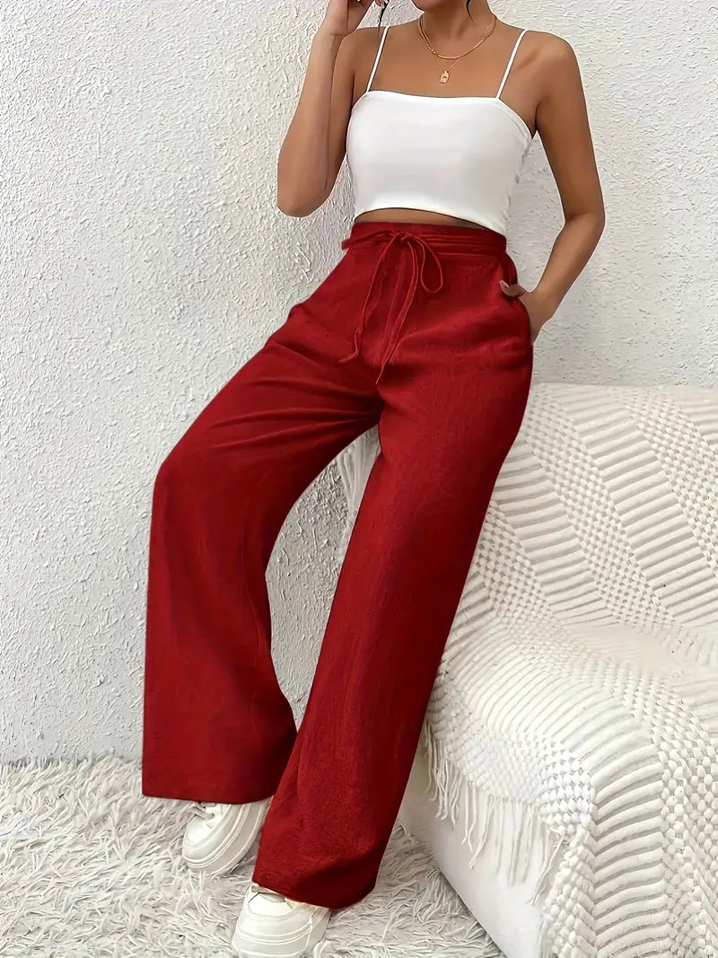 Plus Size Women Wide-Leg Pants Cotton Casual Solid Color Spring Summer Fall