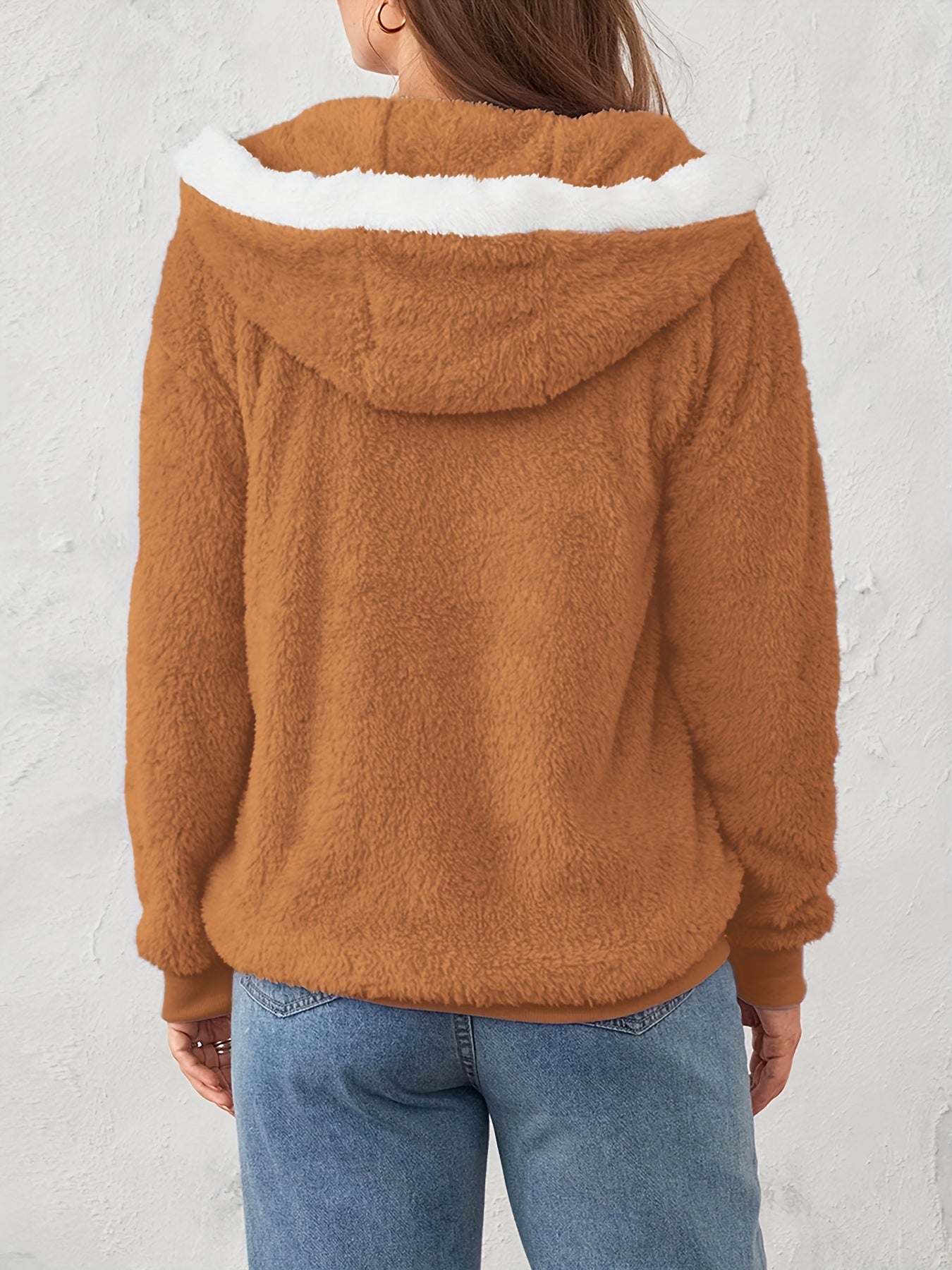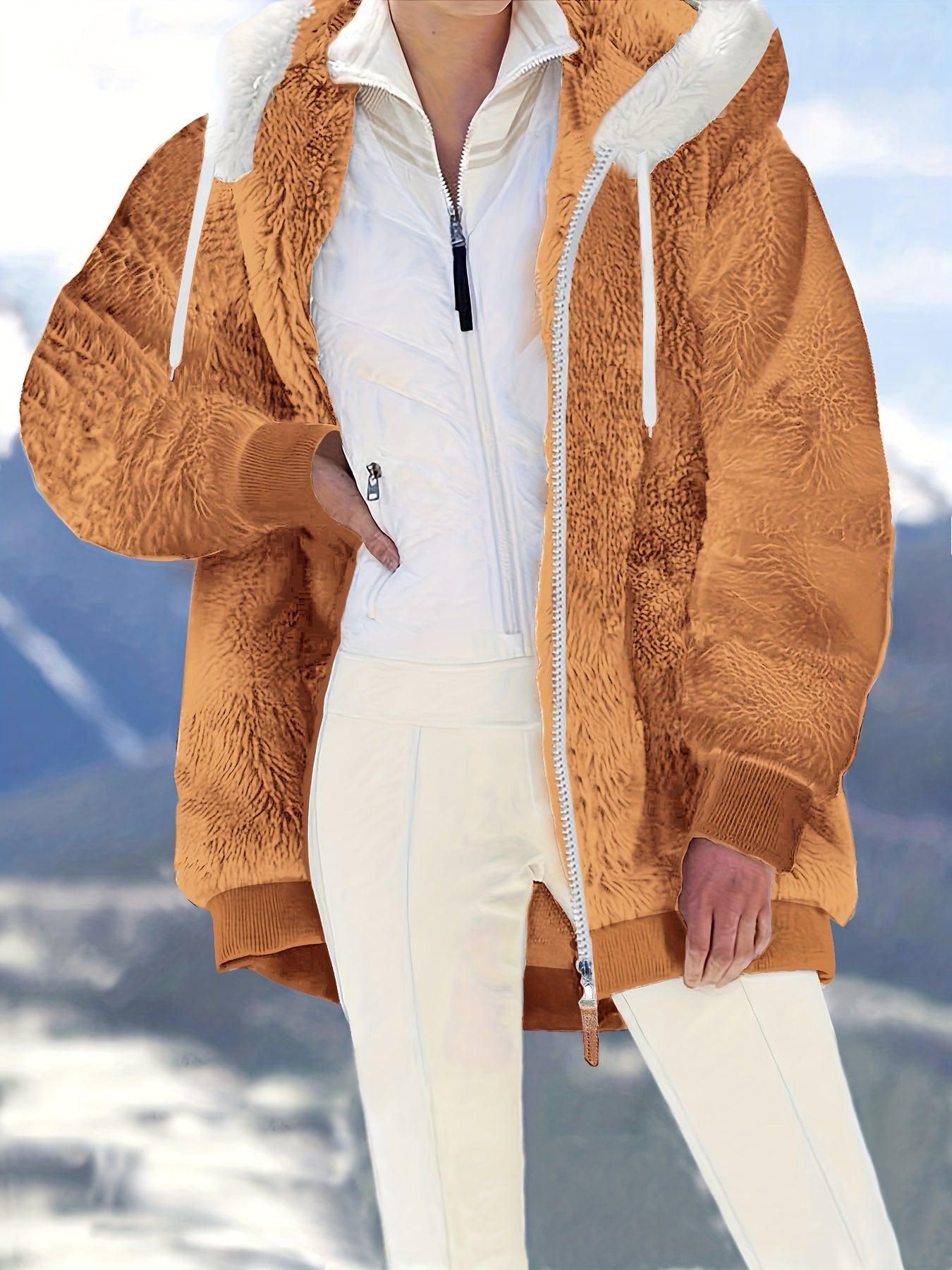 Плюс сайз женское пушистое пальто с застежкой-молнией и капюшоном для зимней одежды