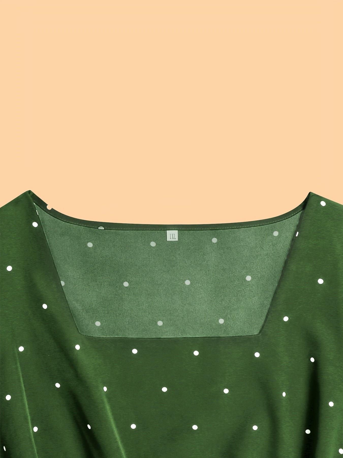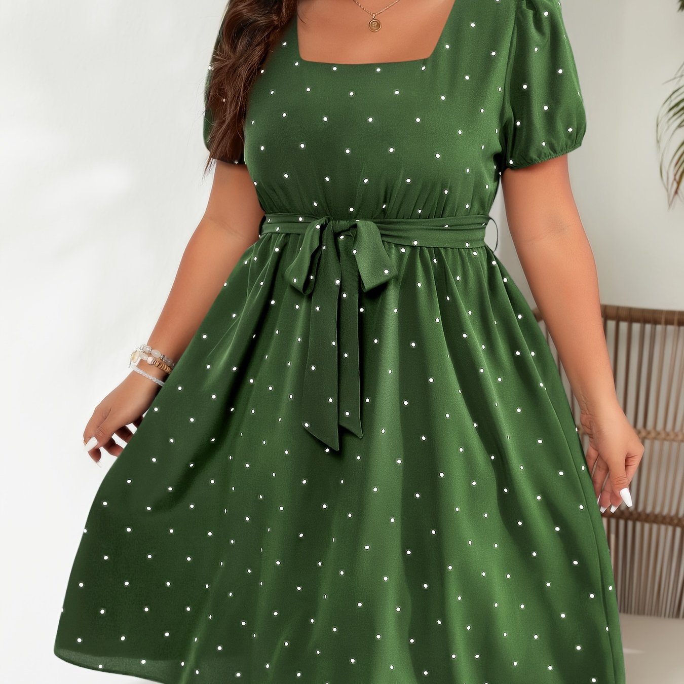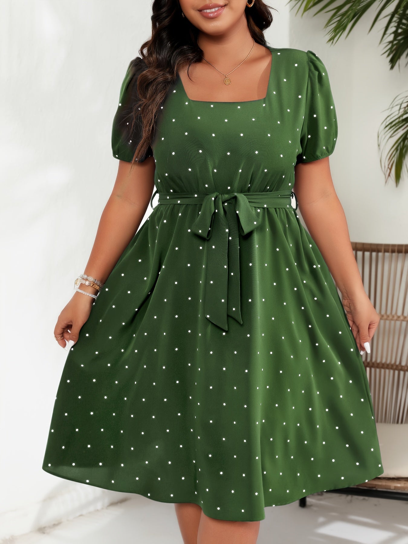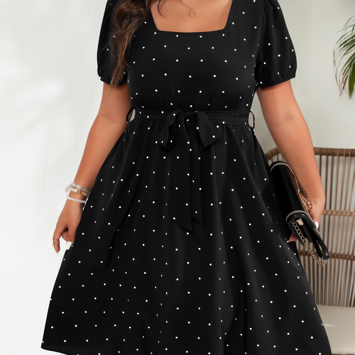 Платье большого размера в горошек с квадратным вырезом, коротким рукавом и поясом, летняя женская одежда