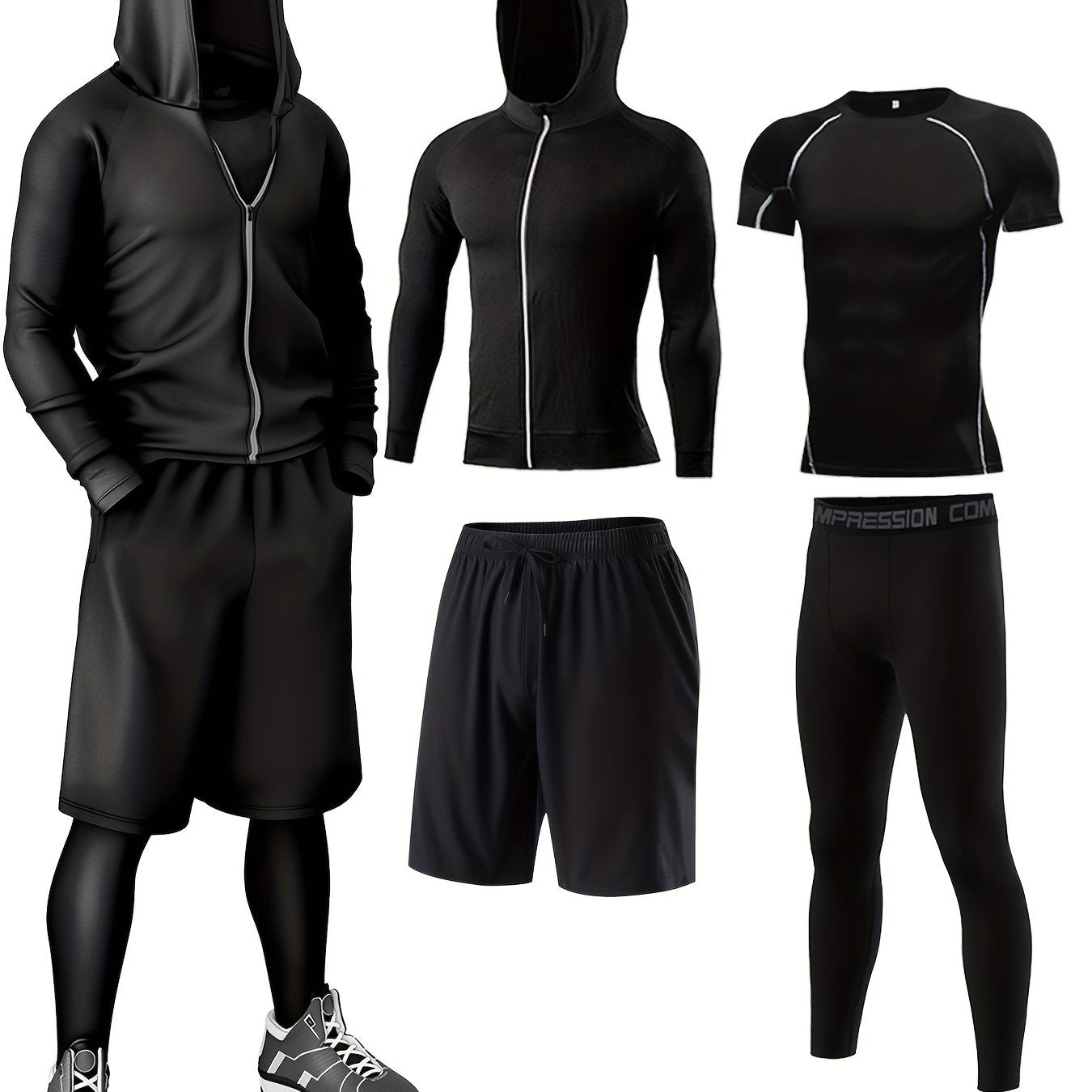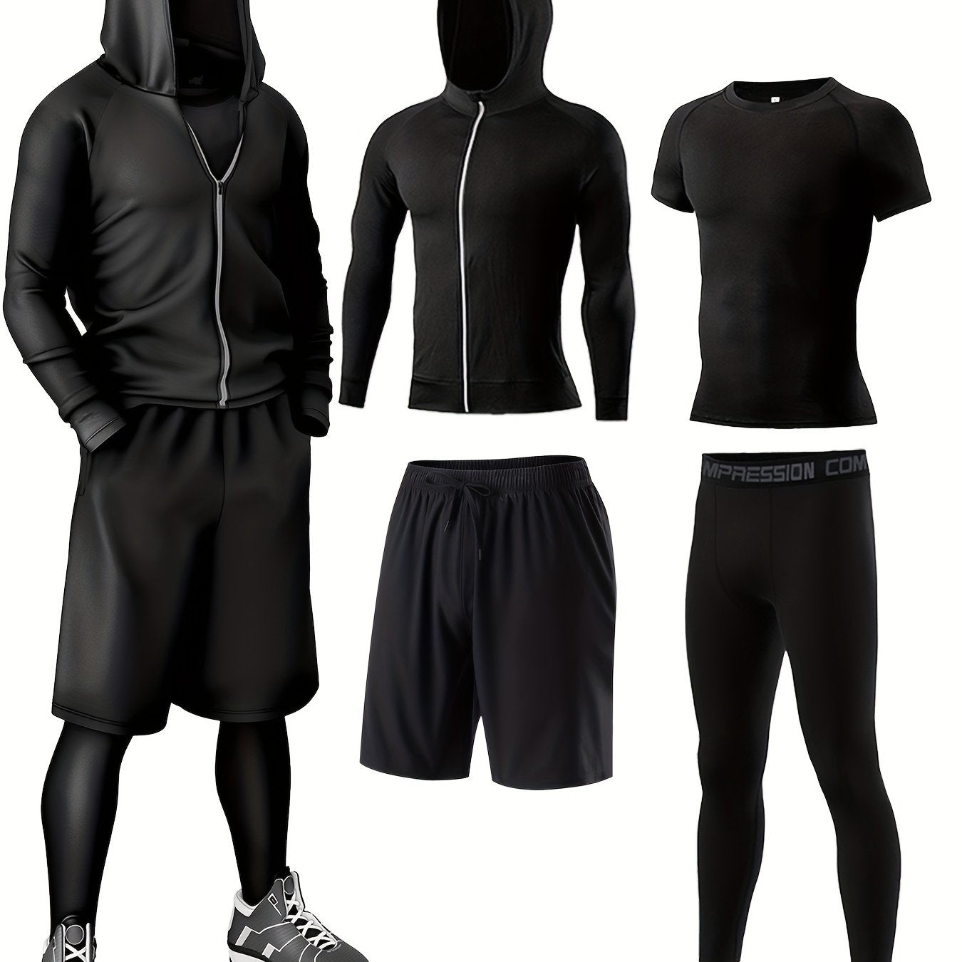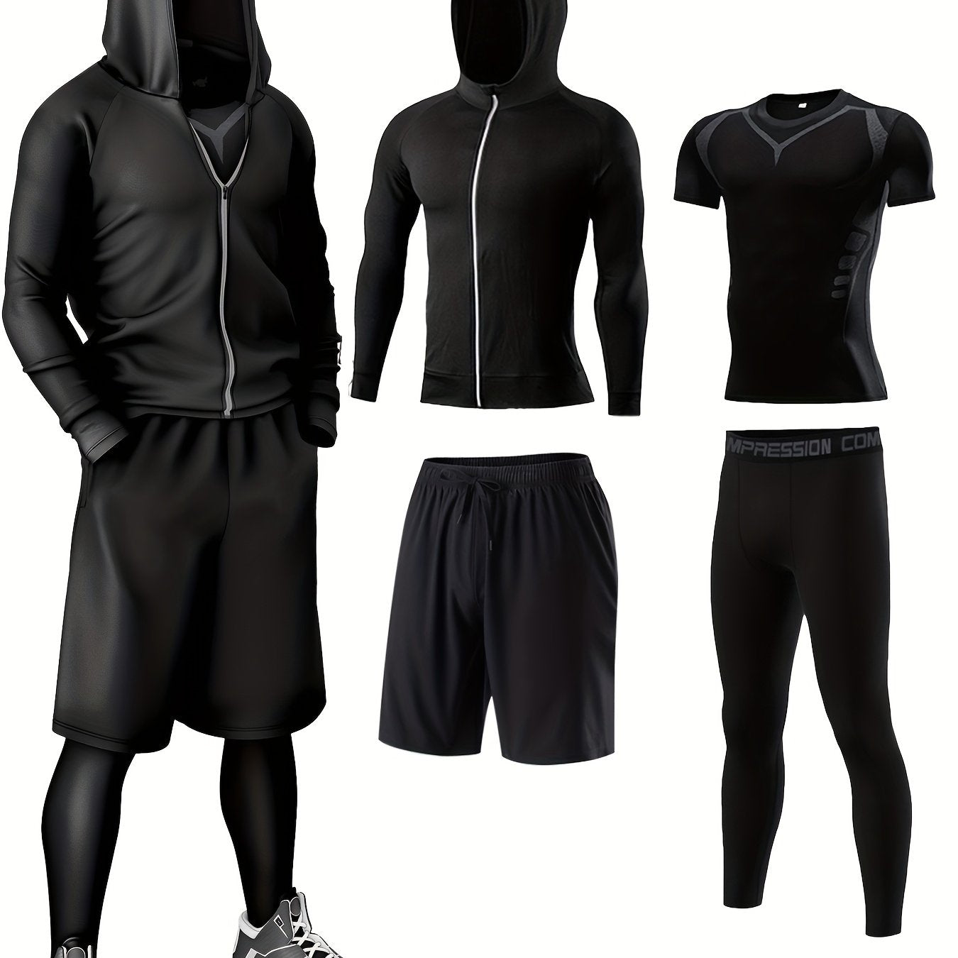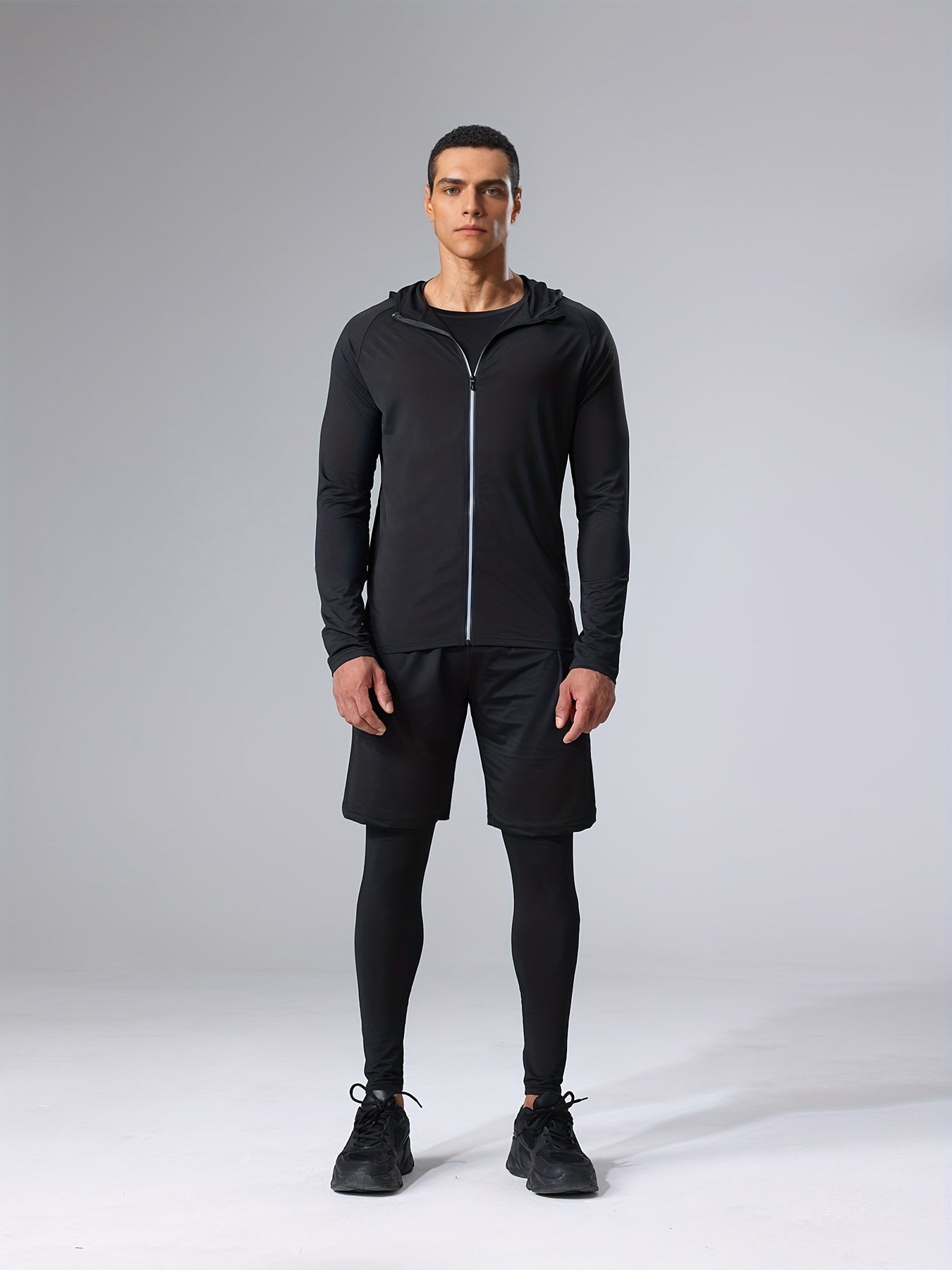 Комплект спортивной одежды из смеси полиэстера и эластана включает в себя худи с круглым вырезом и облегающие брюки для бега, фитнеса, велоспорта и активного отдыха.