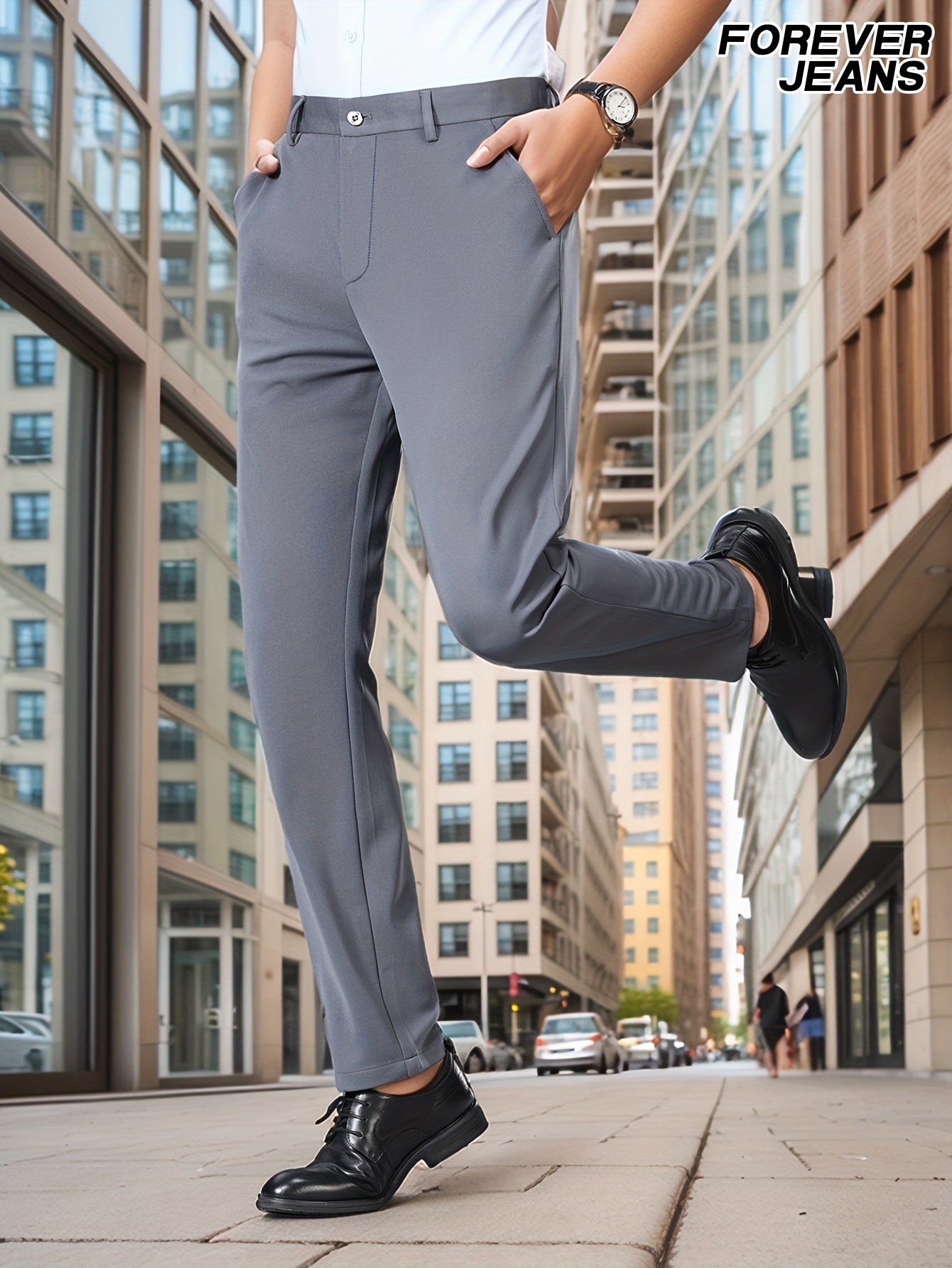 Мужские черные классические брюки из эластичного полиэстера и спандекса для офиса и работы