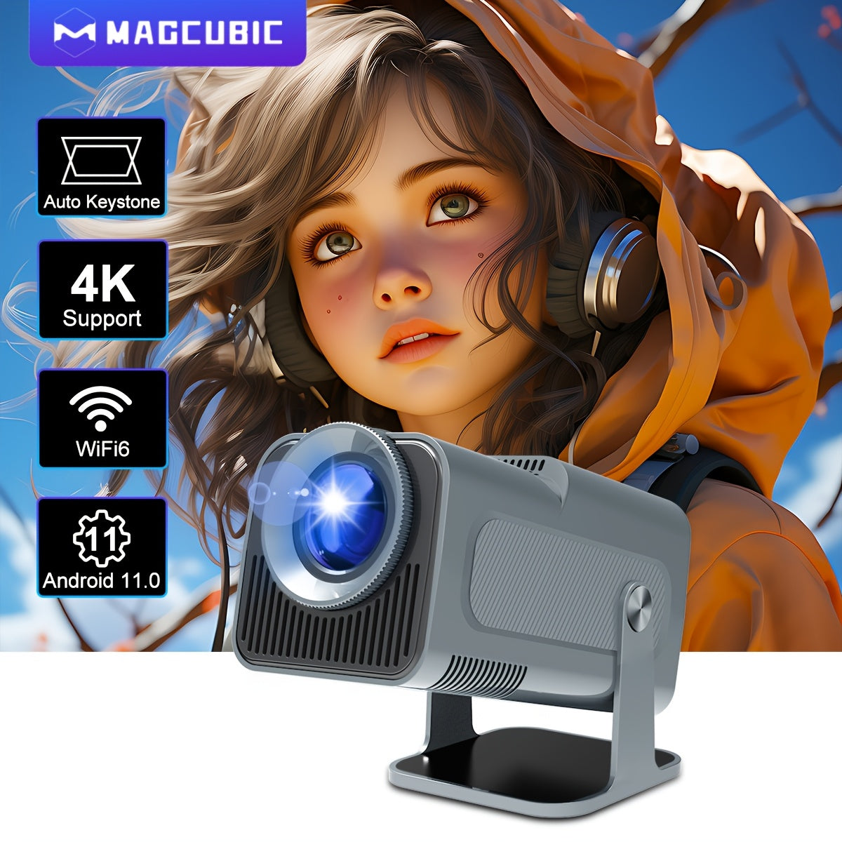 Для тех, кто ценит четкость проектора, этот Full HD проектор обязательно станет вашим лучшим выбором. С разрешением 1920*1080, яркостью 390Ansi и впечатляющим динамическим контрастным соотношением 10000:1, этот проектор обеспечивает более четкое, яркое и насыщенное изображение. Проектор оснащен функцией Wireless 5.0 и HiFi стереодинамиками. Двойные встроенные HiFi стереодинамики создают аутентичное качество звука, обеспечивая вам первоклассный опыт прослушивания даже без внешних колонок. Вы можете подключить наушники, колонки и другие аудиоустройства к проектору для наслаждения объемным звуком, похожим на домашний кинотеатр. Портативный проектор предлагает проекцию от 30 до 150 дюймов на экран с соотношением сторон 16:9 при расстоянии проекции от 1 до 4 метров. Передовая технология WiFi 6 с нулевой задержкой, обеспечивающая молниеносный двухдиапазонный WiFi 2.4G/5G. Наслаждайтесь беспрепятственной потоковой передачей и играми на проекторе с улучшенной скоростью и стабильностью. Легко зеркалируйте свой экран беспроводным способом с помощью Miracast и Airplay. Обратите внимание, что хотя наш проектор может декодировать 4K видео, максимальное разрешение вывода для видео — 1920*1080P.
