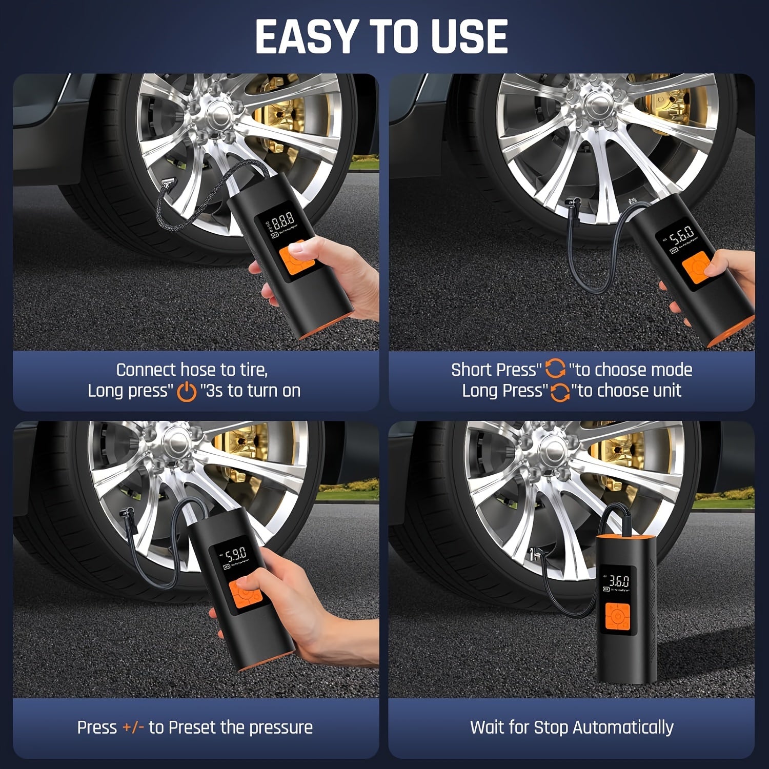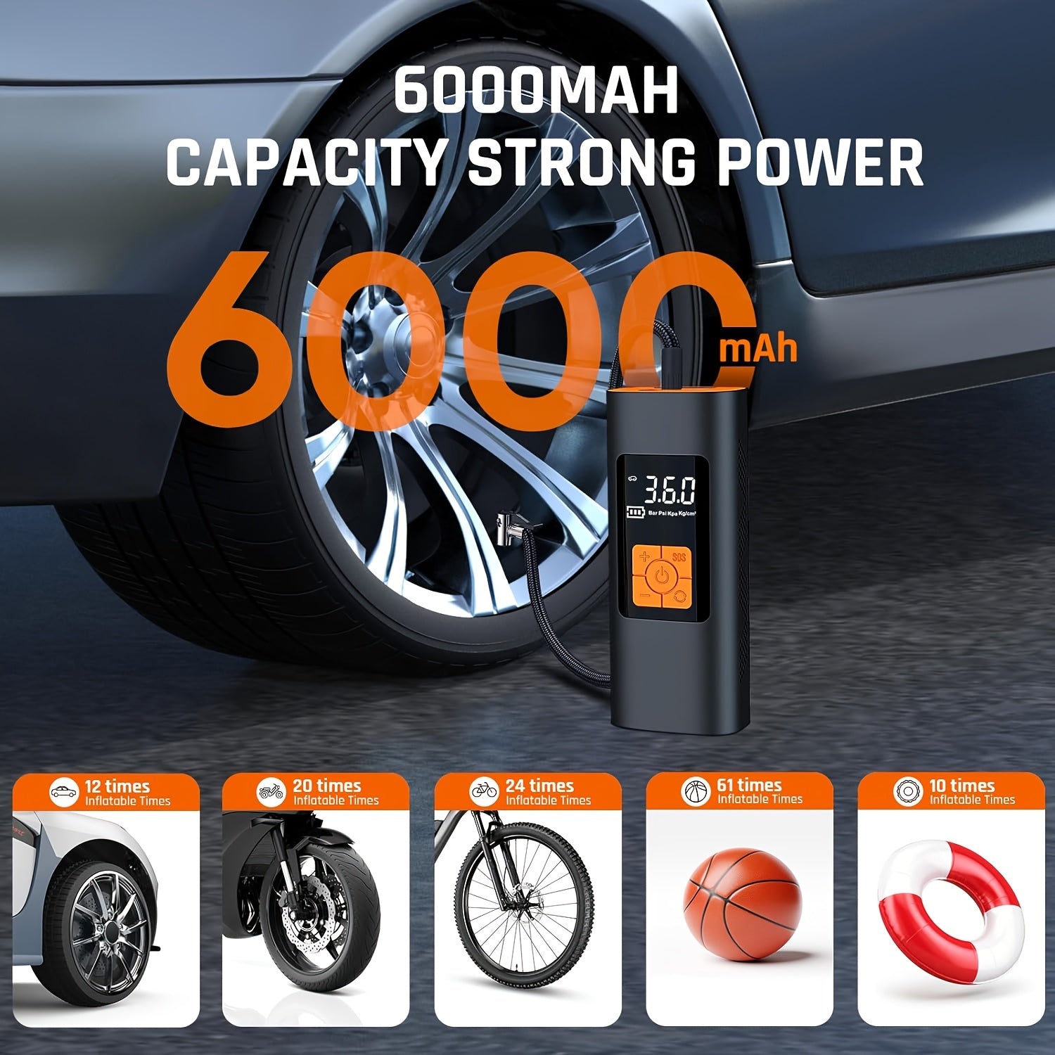 Портативный 6000мАч перезаряжаемый мини-компрессор для накачки шин для автомобиля и велосипеда