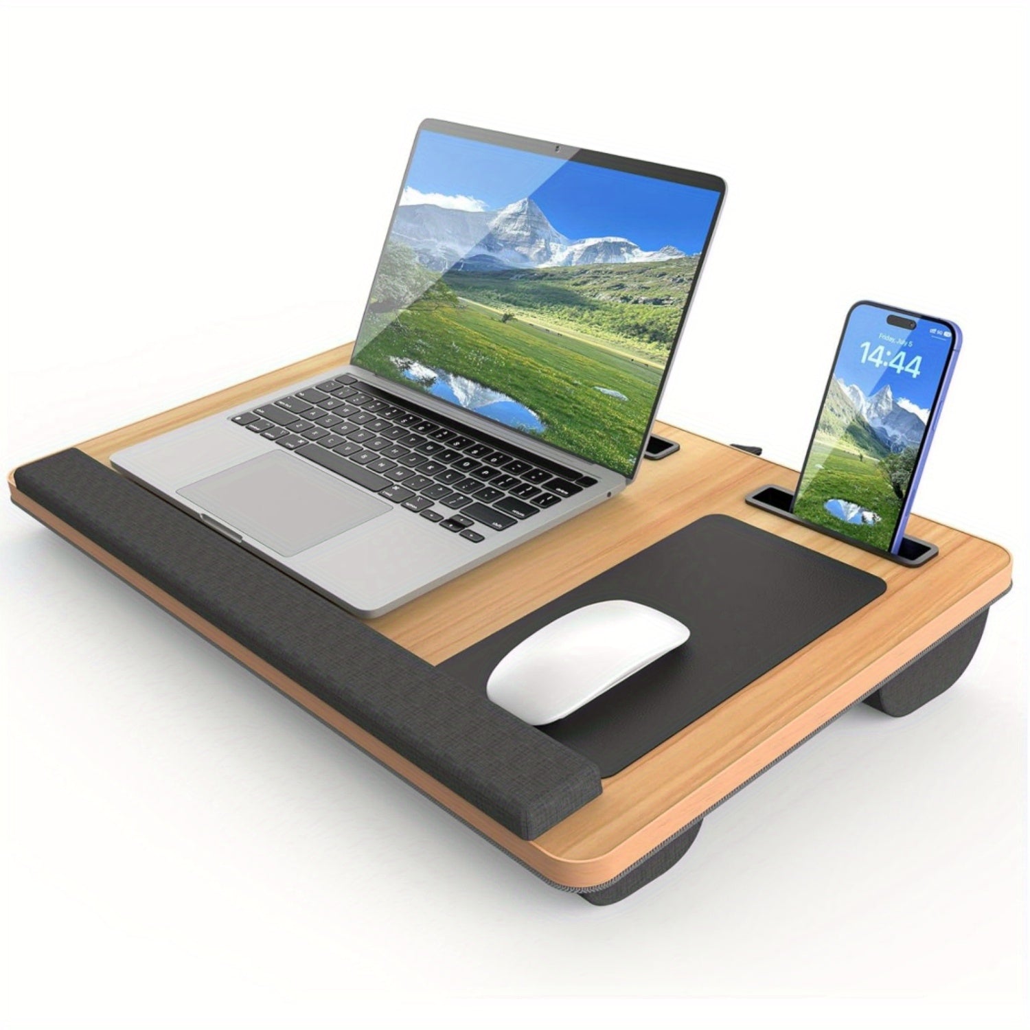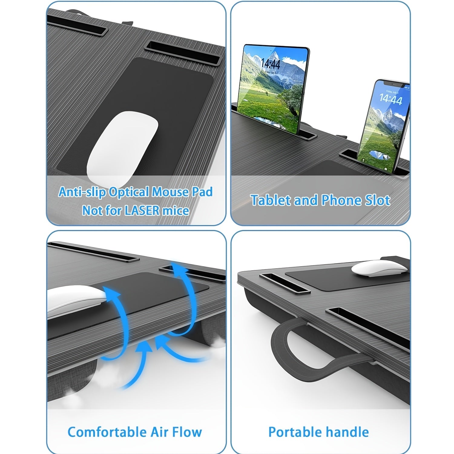 Большой портативный столик для ноутбука для взрослых с подставкой для запястья, ковриком для мыши, отсеком для телефона и ручкой, черный