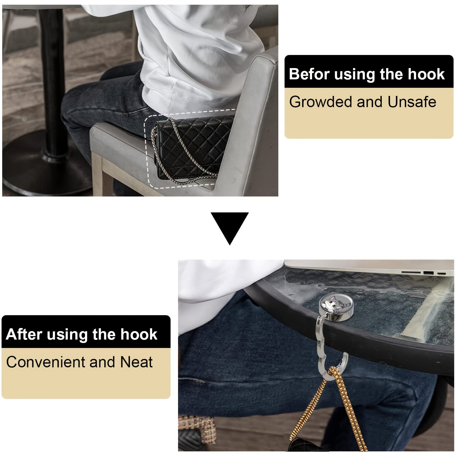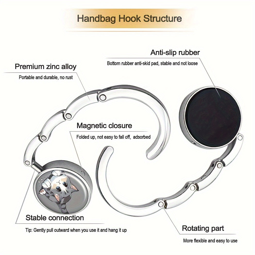 Портативные крючки для сумок из элегантного цинкового сплава, с милым дизайном кота и складным держателем для сумок. Идеально подходит для путешествий, Хэллоуина, Рождества и как уникальная идея для подарка.