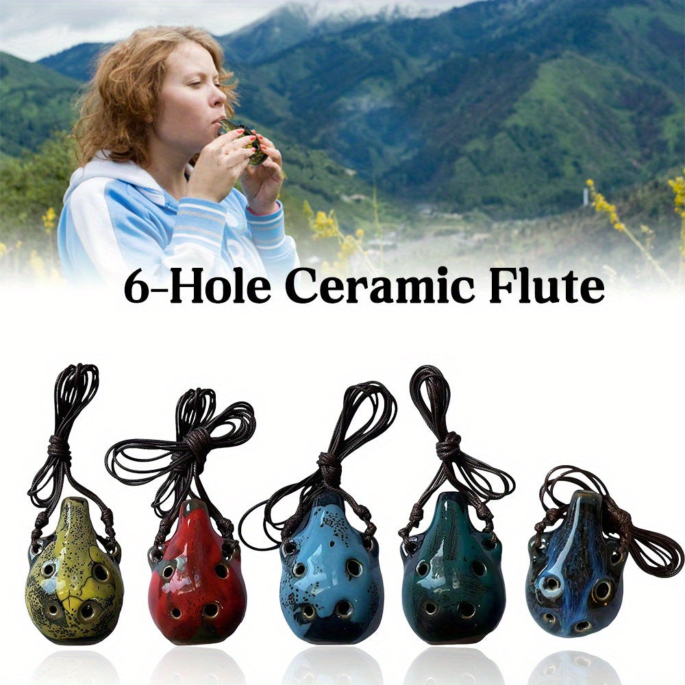 Керамическая окарина-флейта с 6 отверстиями, регулируемый кулон для начинающих, красная, желтая, синяя, зеленая