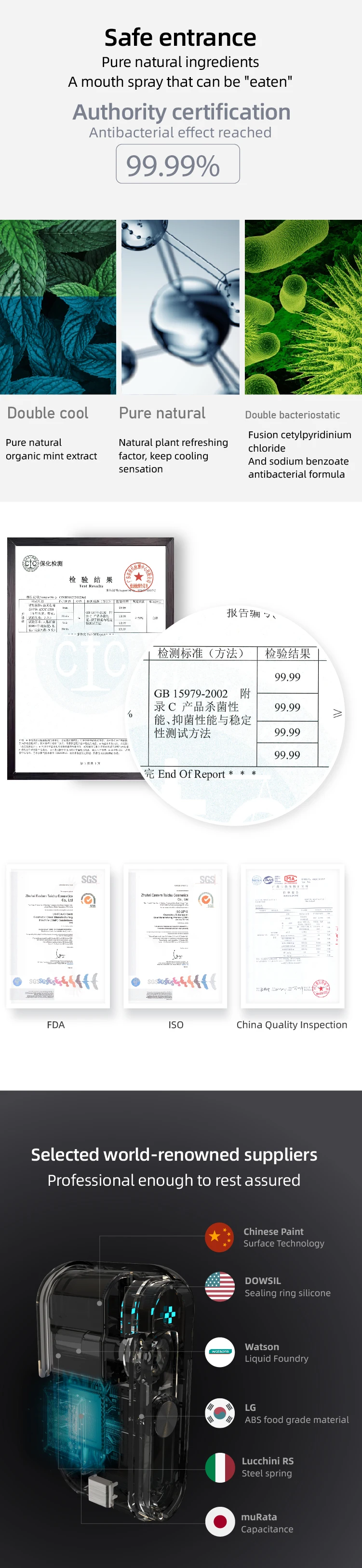 Испытайте свежий дыхание мгновенно с нашим портативным электрическим спреем для полости рта, устраняющим неприятный запах и глубоко очищающим для уверенного, свежего ощущения в любое время.
