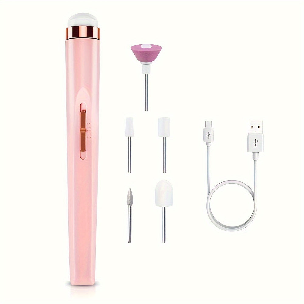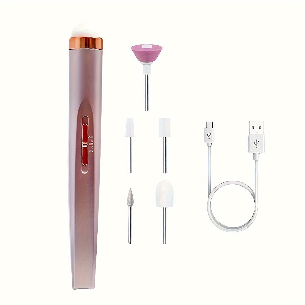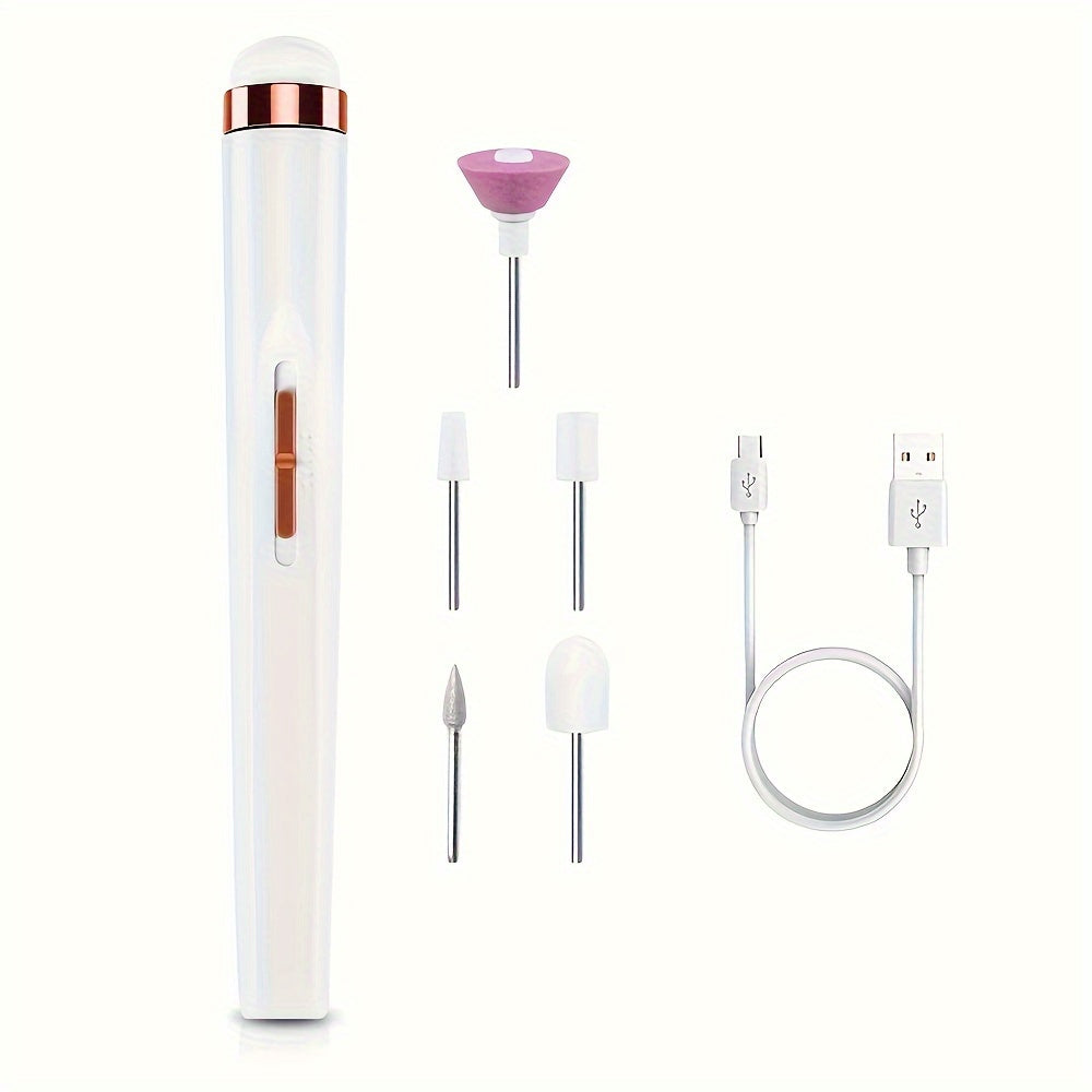 Портативная электрическая дрель для ногтей с 5 насадками, светодиодным освещением, регулируемой скоростью, USB-зарядкой