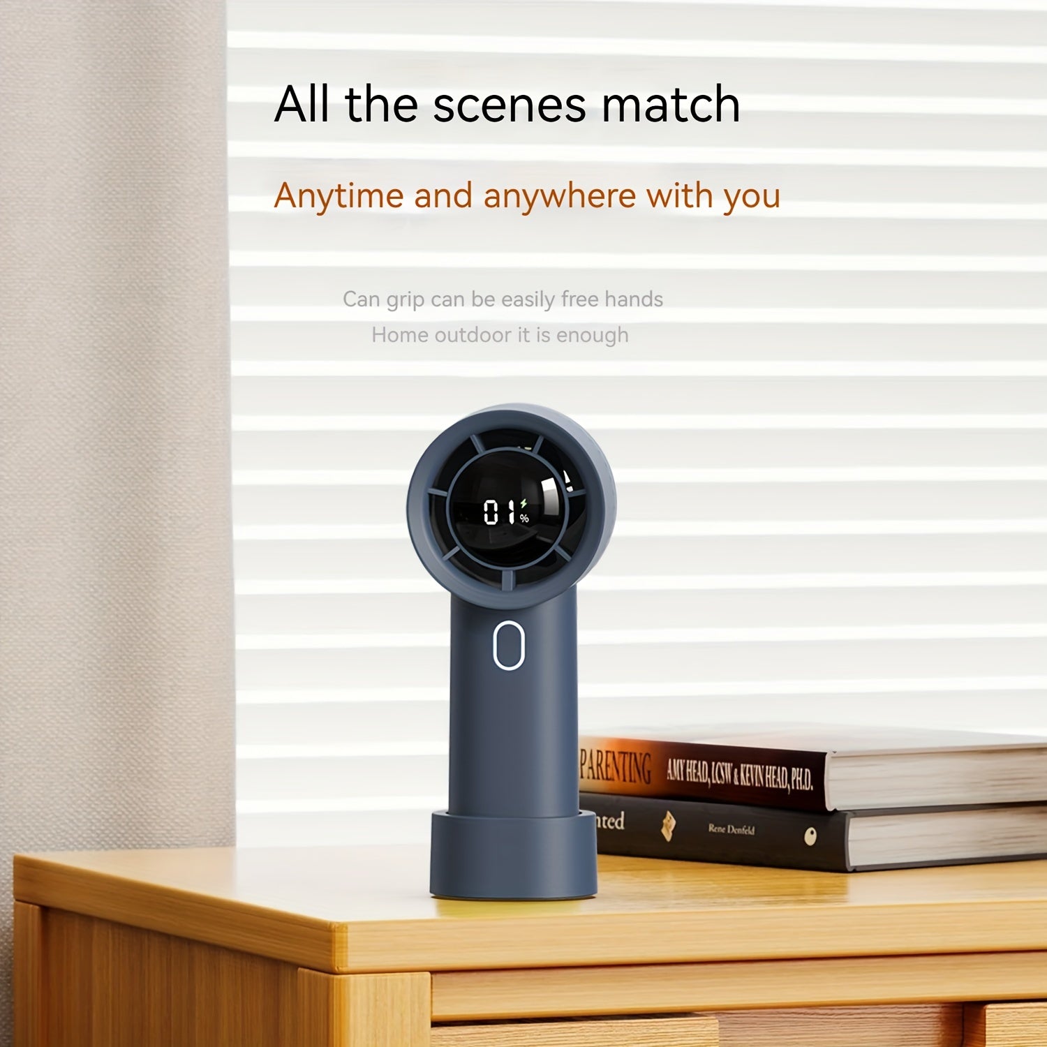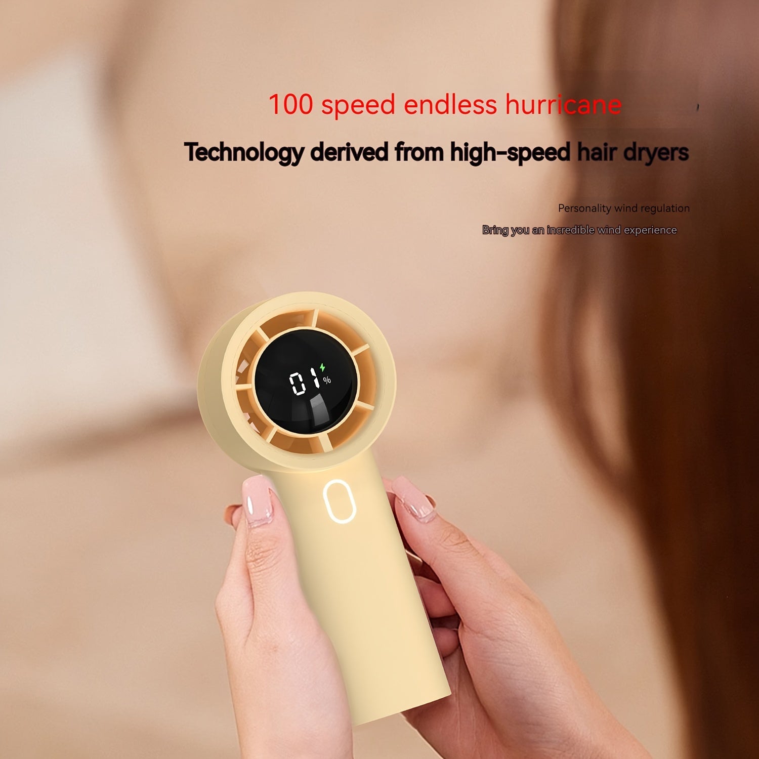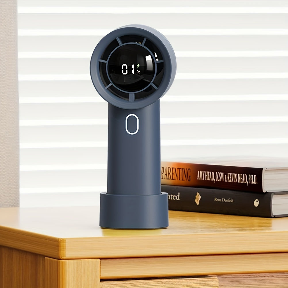 Портативный ручной вентилятор с цифровым дисплеем, турбо-режим высокой скорости, длительным временем работы от батареи
