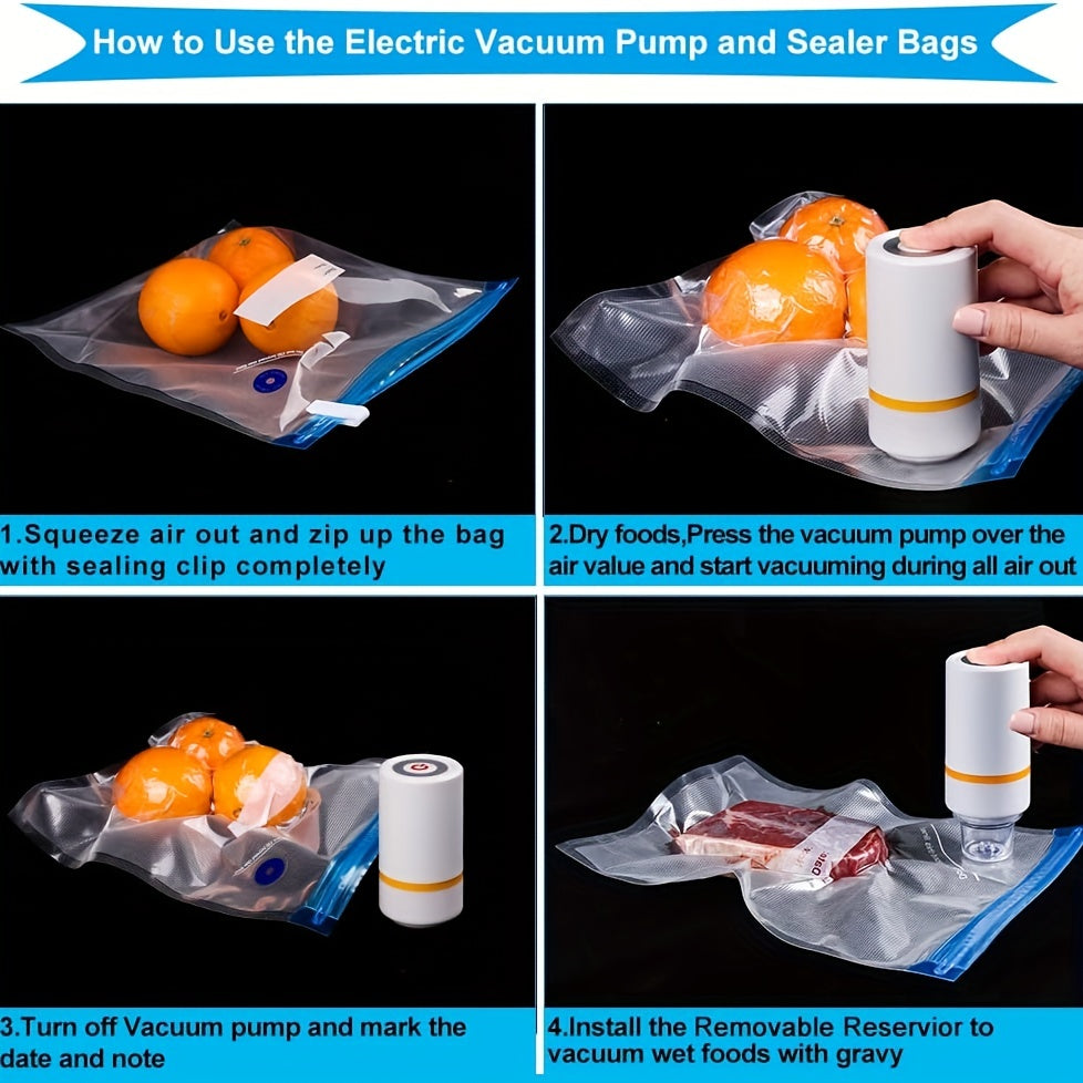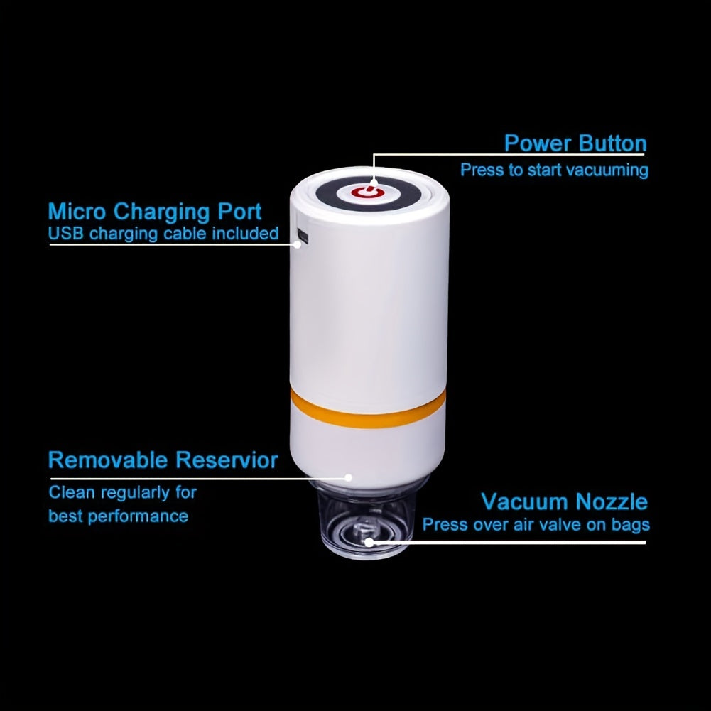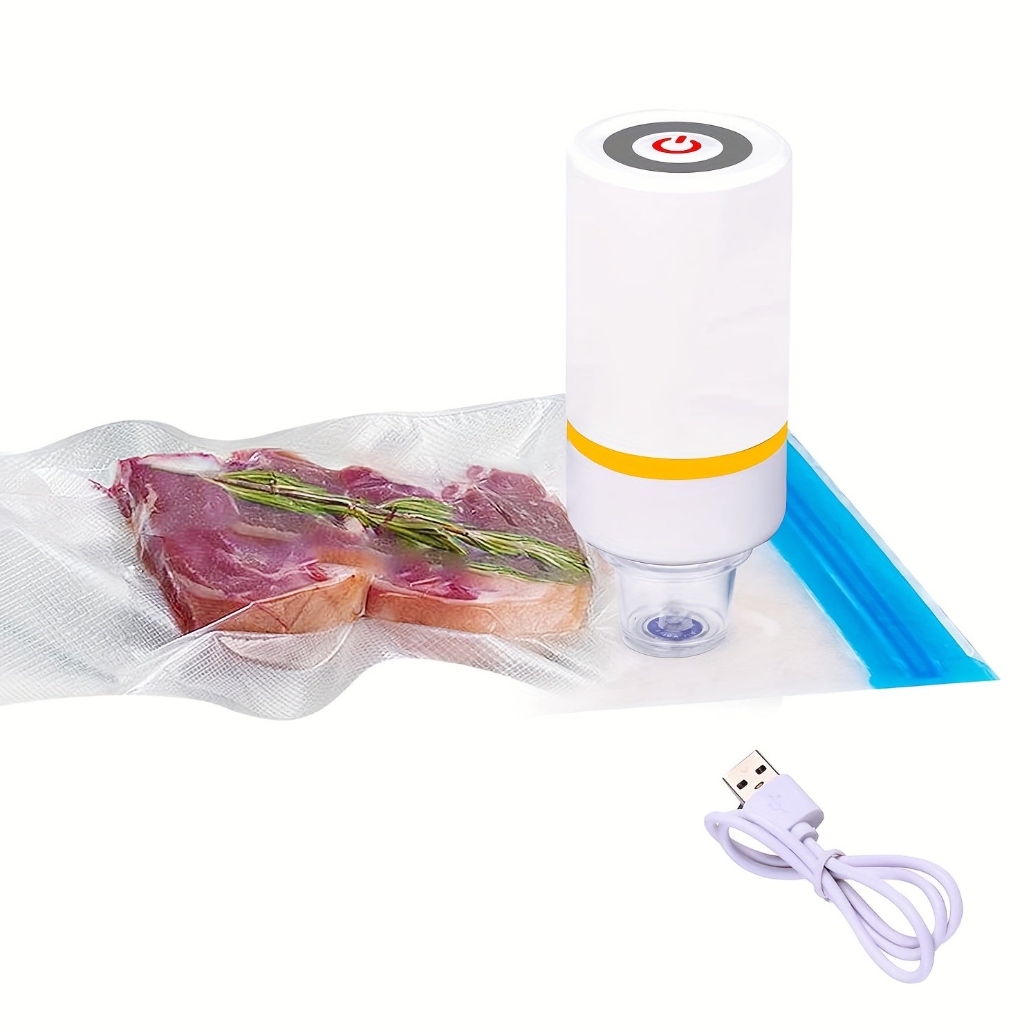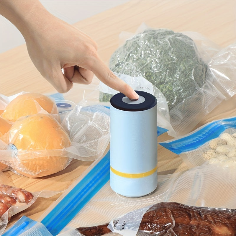 Портативный ручной вакуумный упаковщик с функцией перезарядки через USB и технологией воздушного клапана для сохранения фруктов и овощей. Идеально подходит для хранения в домашней кухне благодаря компактному дизайну. Прочный