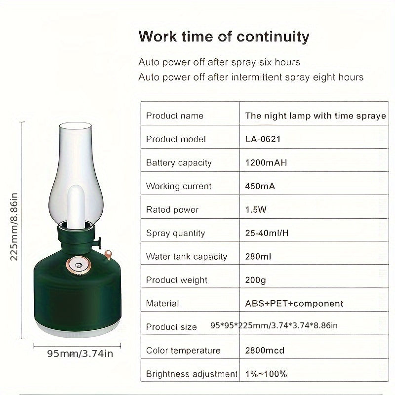 Портативный увлажнитель с LED-подсветкой, питание от USB, ультразвуковой, резервуар 1 л