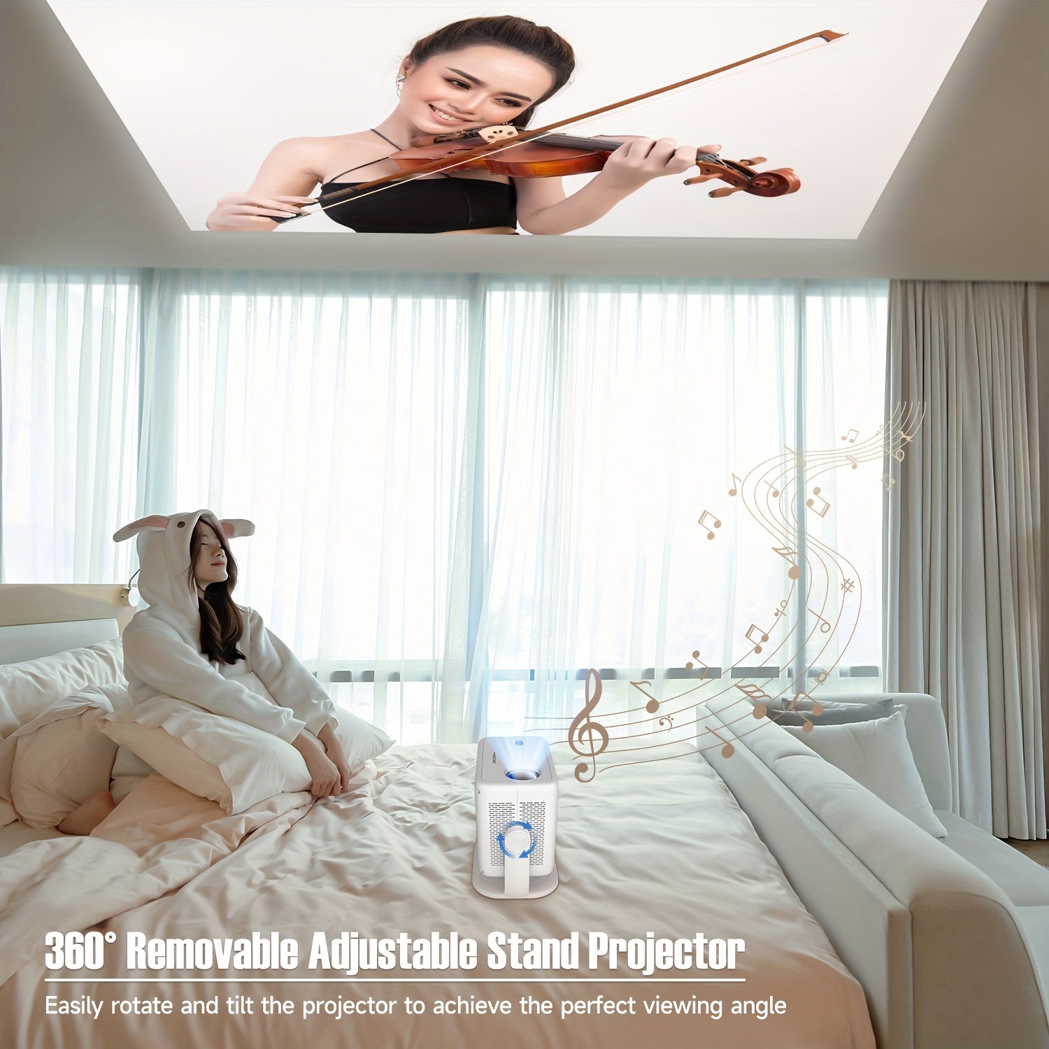 Голосовое дистанционное управление: Освободите руки с помощью интеллектуального голосового пульта, говорите, что хотите! 1.2:1 коэффициент броска и гигантский экран 150 дюймов: портативный проектор обеспечивает изображение размером 80-150 дюймов при расстоянии проекции 2-3,5 м, с коэффициентом броска 1.2:1, создавая ощущение кинотеатра, которое трудно воспроизвести с помощью традиционного телевизора.