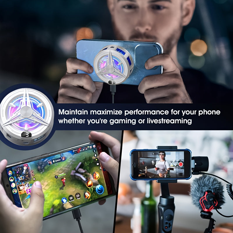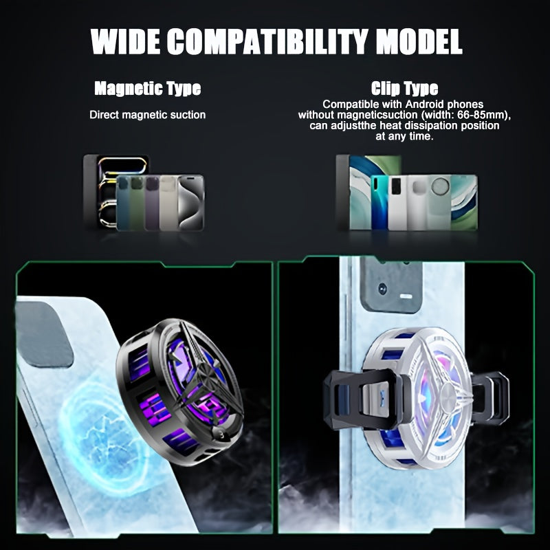 Портативный магнитный охладитель с цифровым дисплеем, тихий вентилятор для мобильных игр и прямых трансляций, питается от USB, совместим со всеми телефонами и ноутбуками, пластиковая конструкция.