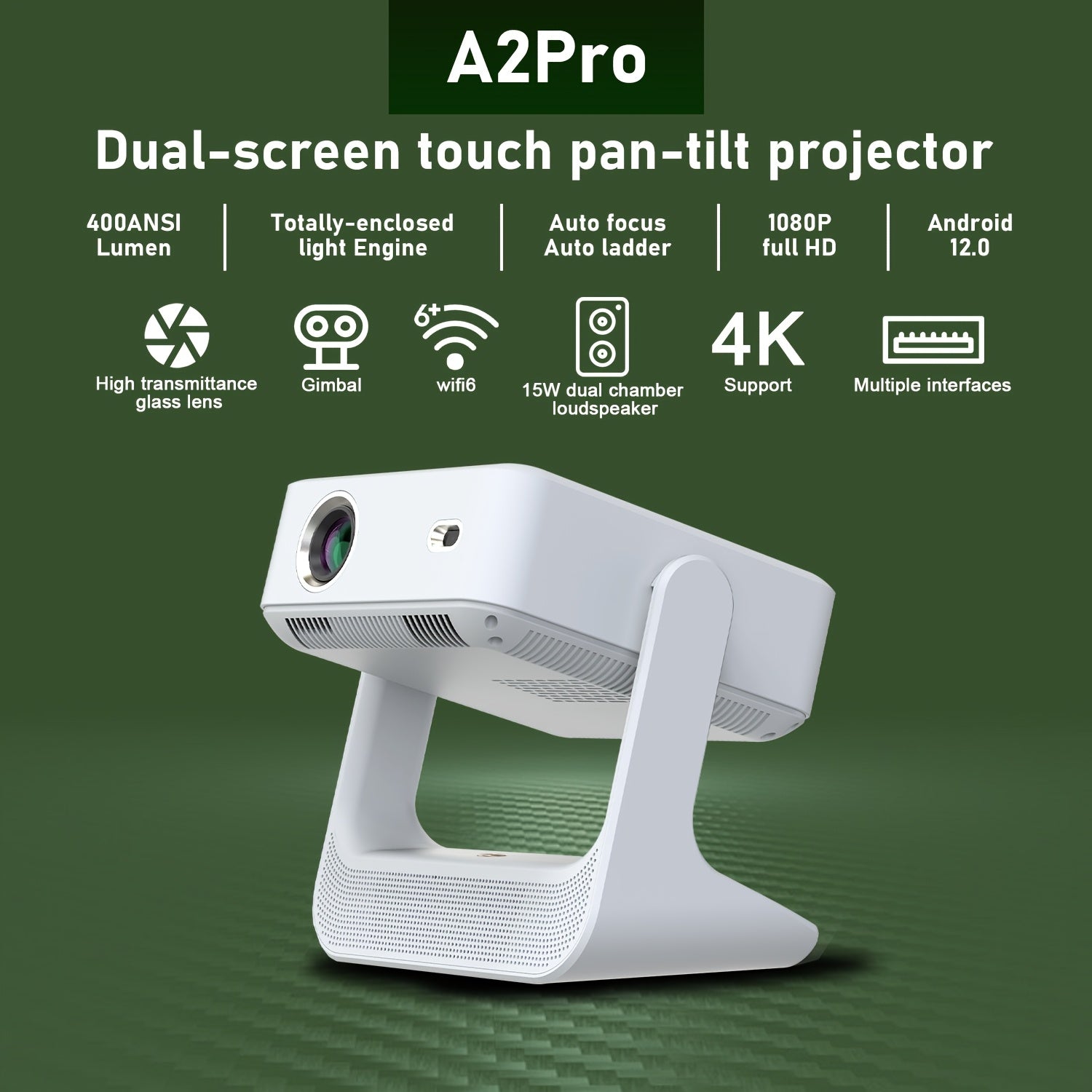 Портативный мини-проектор 1080P Full HD с поддержкой 4K, беспроводной сенсорный экран