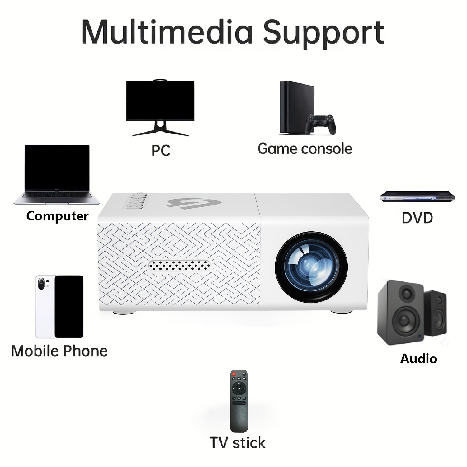 Портативный мини-проектор для фильмов, ТВ, ноутбука, смартфона с пультом дистанционного управления